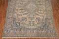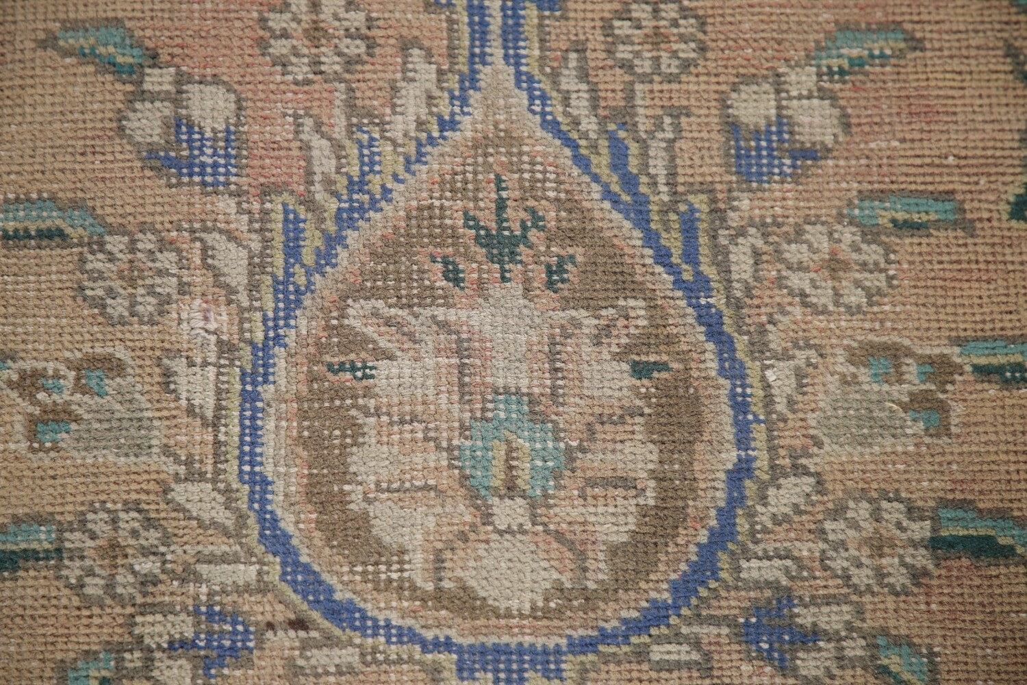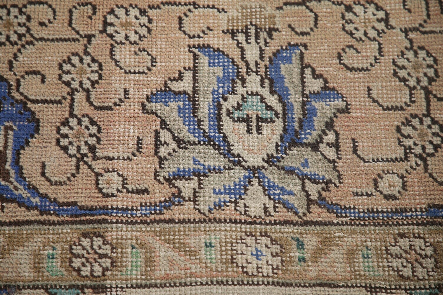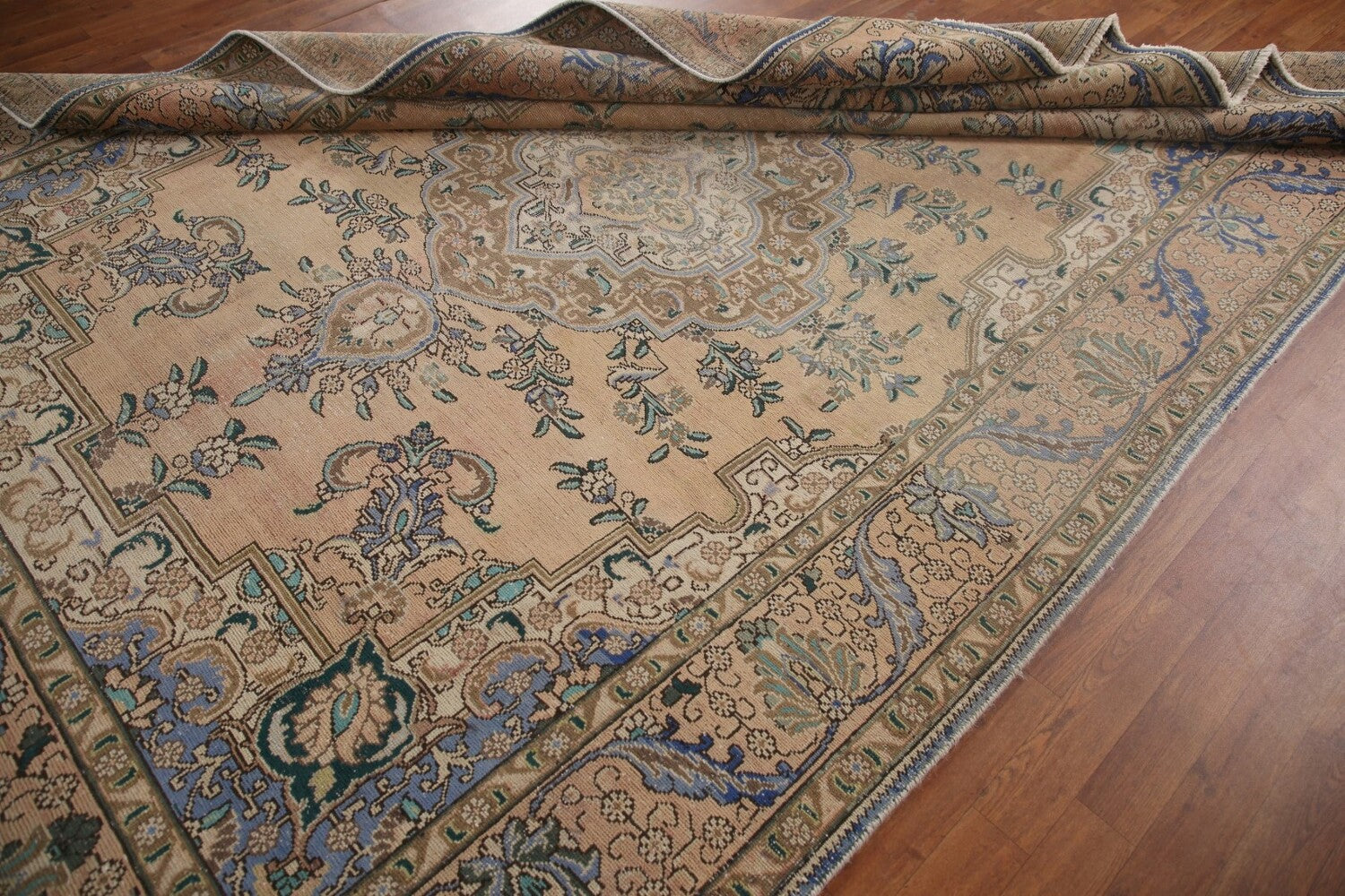 A Beautiful Genuine Persia ( Persia ) Tabriz rug is Hand Knotted by skillful weavers in Persia ( Persia ) with 100% Wool Material. This rug is in Very Good (Low Pile-Abrash) condition. dimensions are 11' 4'' X 8' 0'' in foot and 345 X 244 in centimeter. the primary color is Peach.