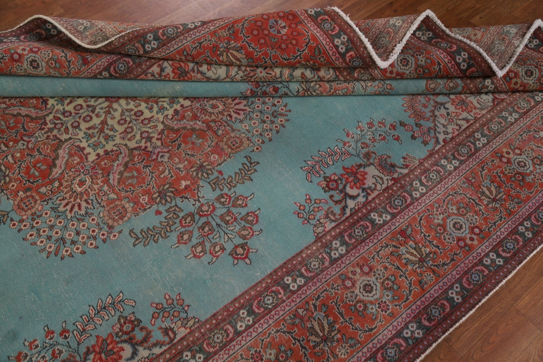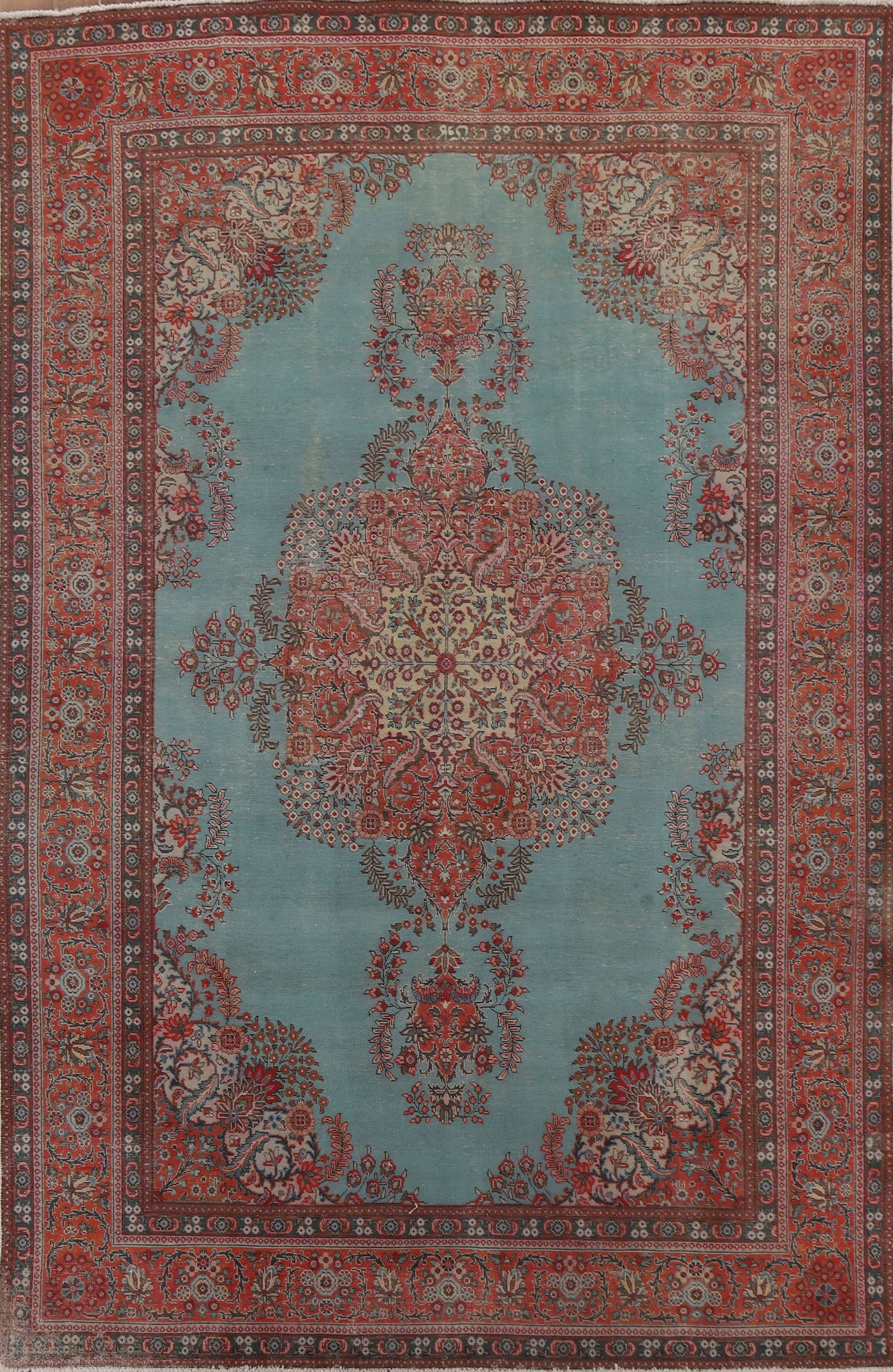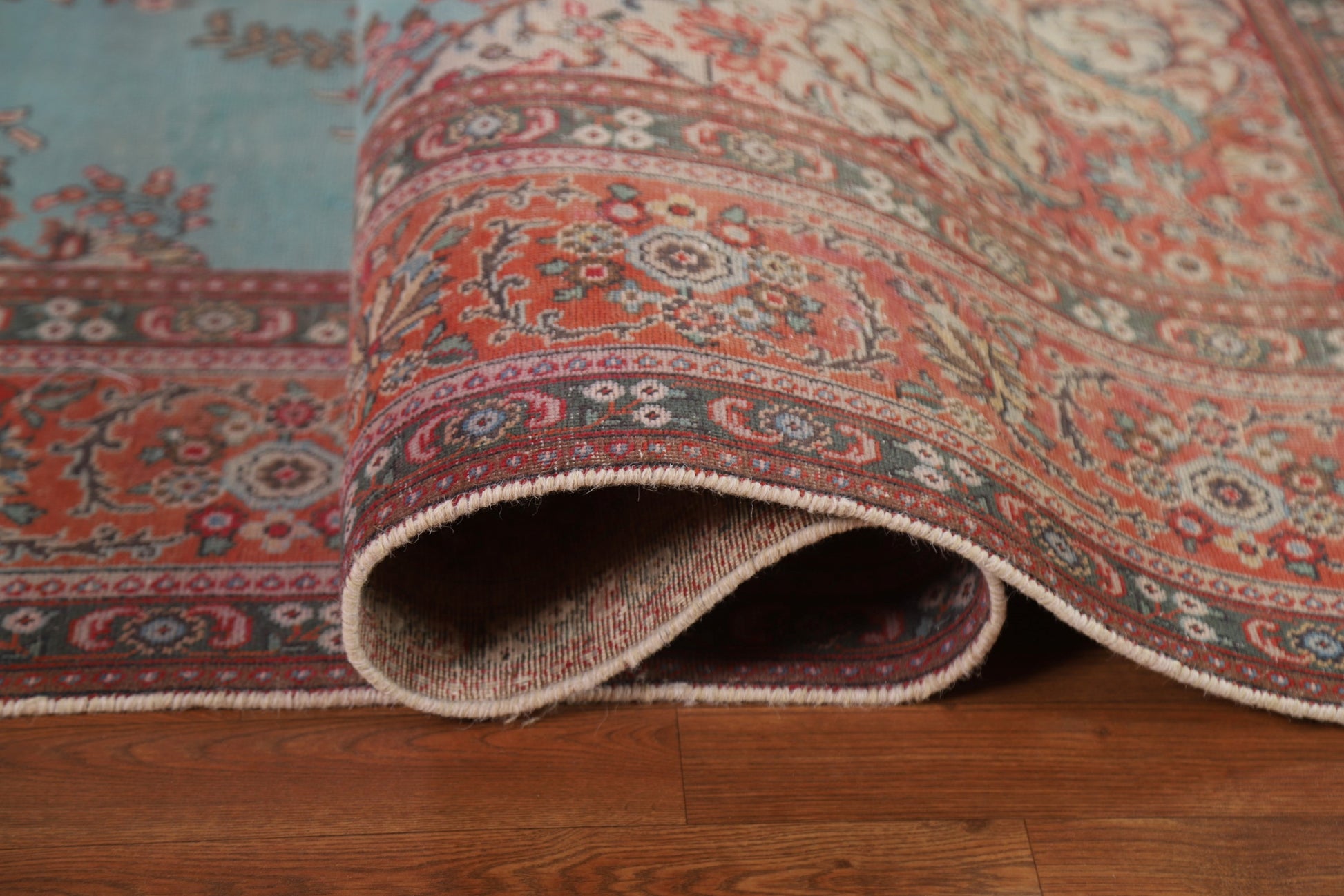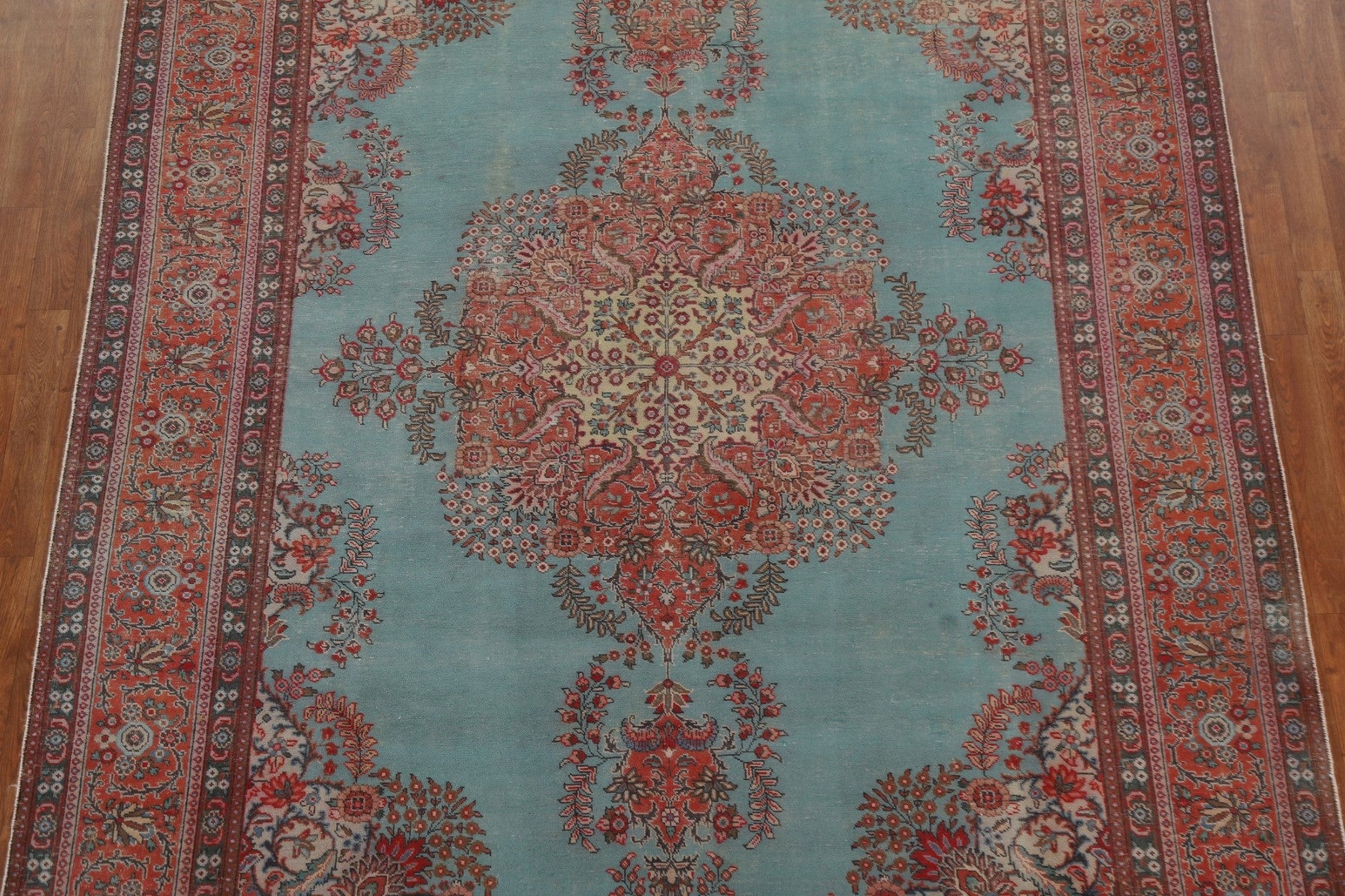 A Beautiful Genuine Persia ( Persia ) Tabriz rug is Hand Knotted by skillful weavers in Persia ( Persia ) with 100% Wool Material. This rug is in Very Good (Evenly Low Pile) condition. dimensions are 10' 11'' X 7' 9'' in foot and 333 X 236 in centimeter. the primary color is Navy Blue & Blues.