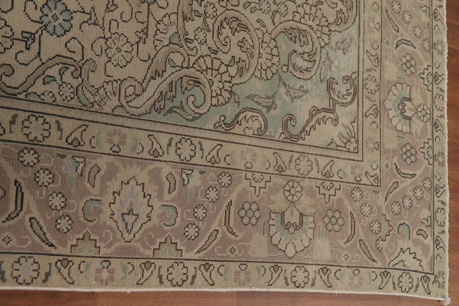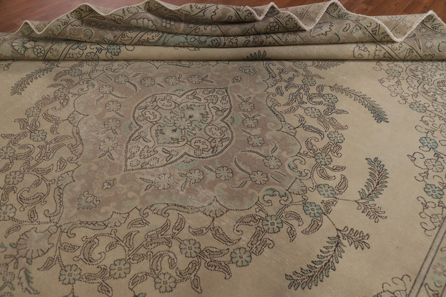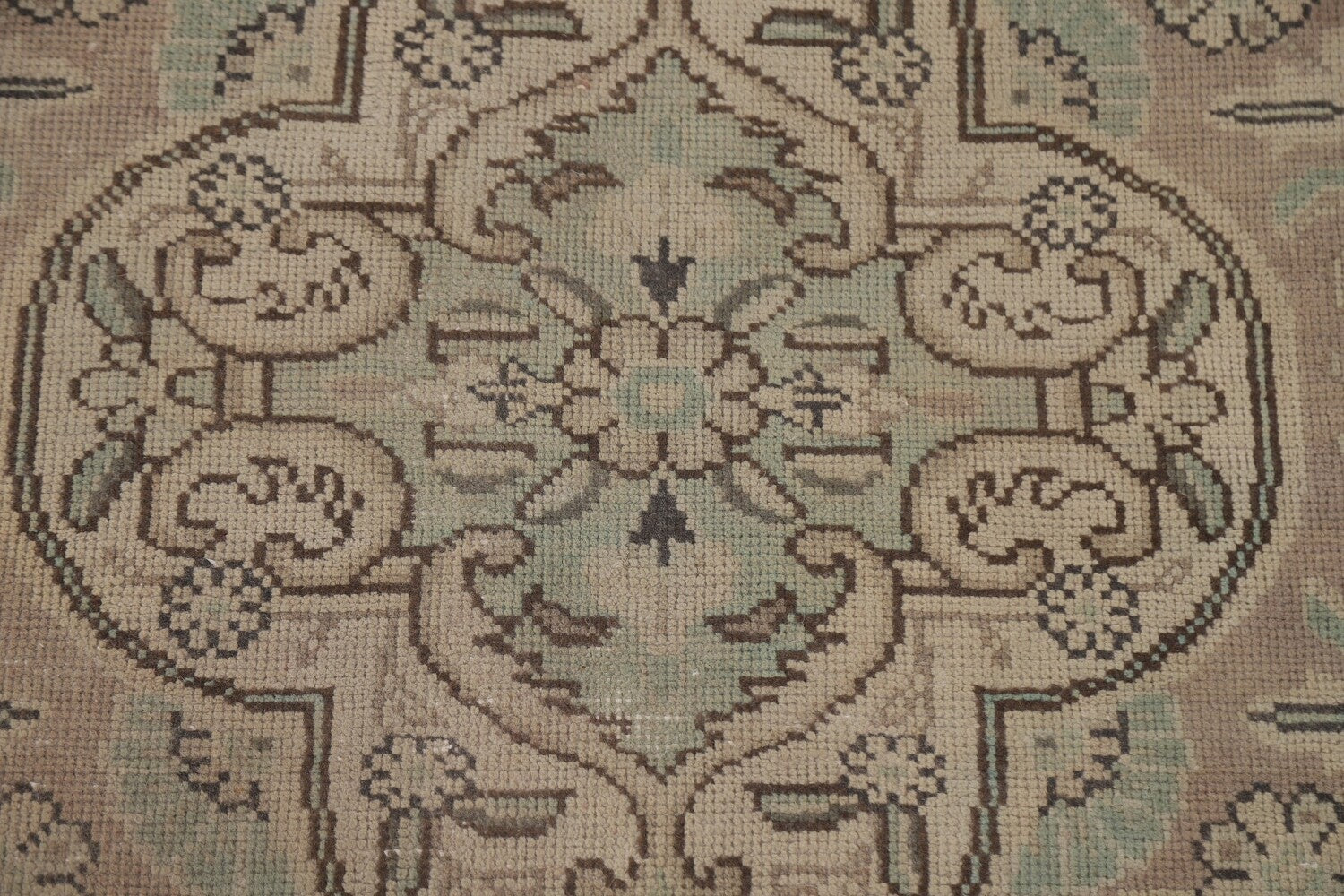 A Beautiful Genuine Persia ( Persia ) Tabriz rug is Hand Knotted by skillful weavers in Persia ( Persia ) with 100% Wool Material. This rug is in Very Good (Evenly Low Pile) condition. dimensions are 11' 10'' X 9' 5'' in foot and 361 X 287 in centimeter. the primary color is Beige & Ivories.