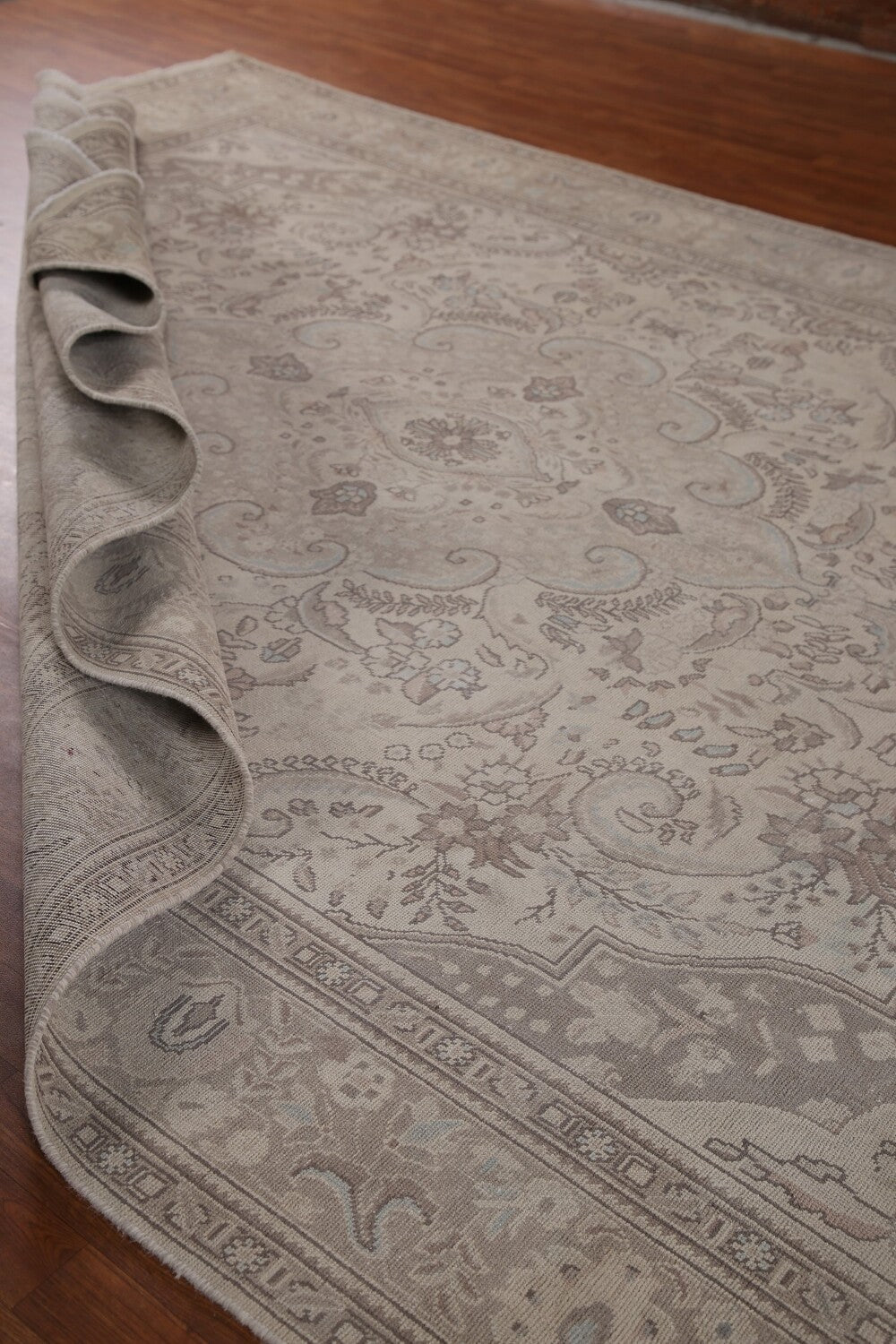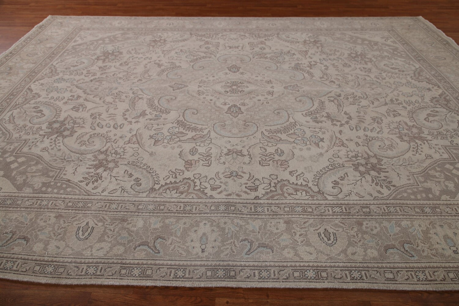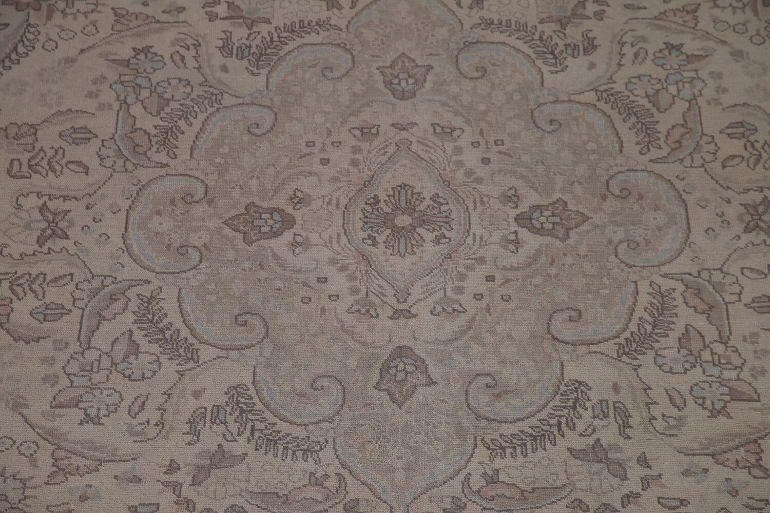 A Beautiful Genuine Persia ( Persia ) Tabriz rug is Hand Knotted by skillful weavers in Persia ( Persia ) with 100% Wool Material. This rug is in Very Good (Evenly Low Pile) condition. dimensions are 12' 7'' X 9' 5'' in foot and 384 X 287 in centimeter. the primary color is Beige & Ivories.
