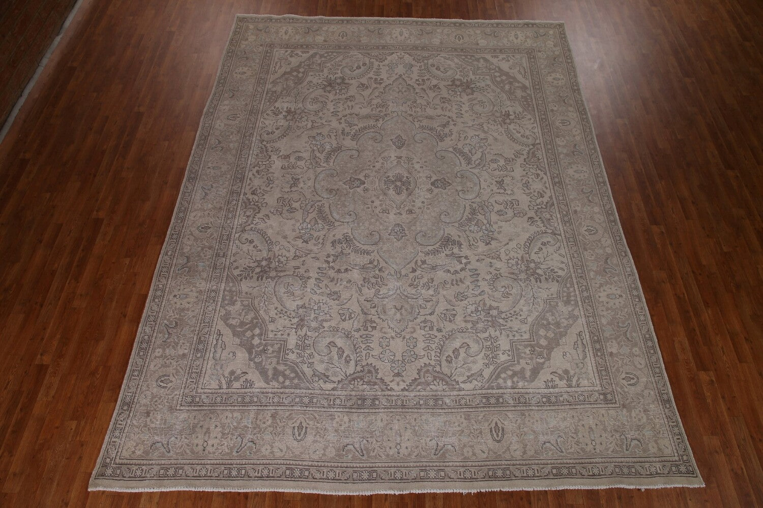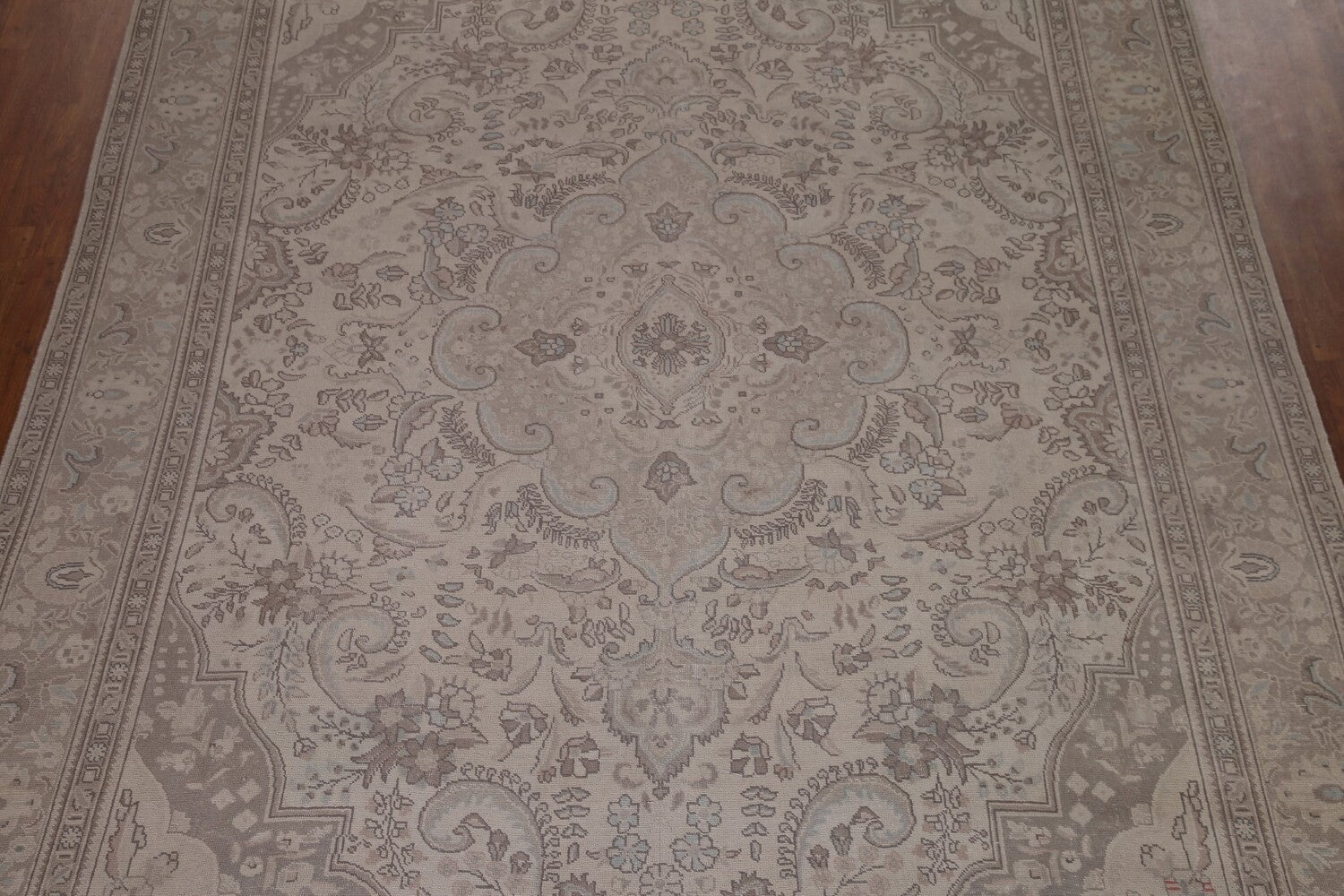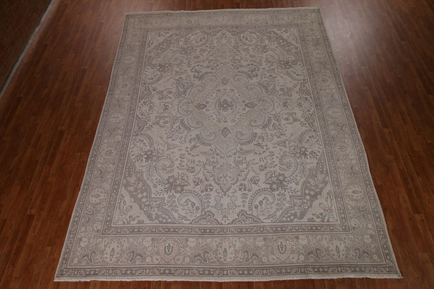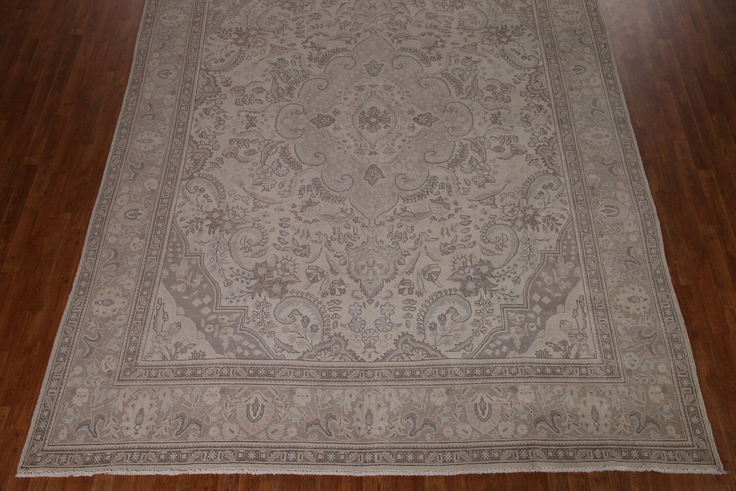 A Beautiful Genuine Persia ( Persia ) Tabriz rug is Hand Knotted by skillful weavers in Persia ( Persia ) with 100% Wool Material. This rug is in Very Good (Evenly Low Pile) condition. dimensions are 12' 7'' X 9' 5'' in foot and 384 X 287 in centimeter. the primary color is Beige & Ivories.