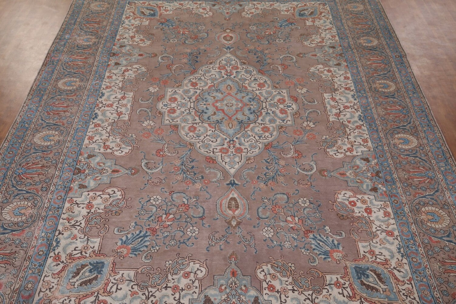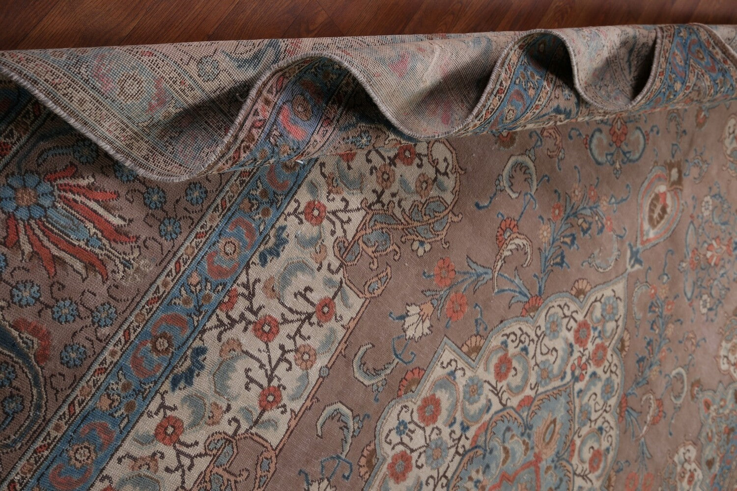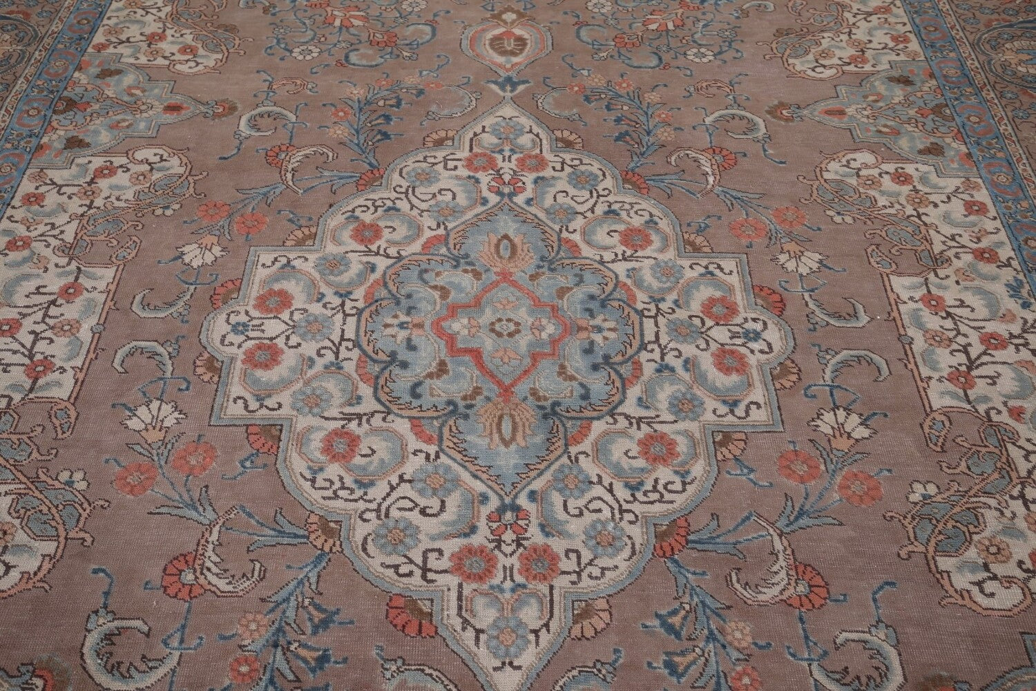 A Beautiful Genuine Persia ( Persia ) Tabriz rug is Hand Knotted by skillful weavers in Persia ( Persia ) with 100% Wool Material. This rug is in Very Good (Evenly Low Pile-Repair) condition. dimensions are 12' 8'' X 9' 3'' in foot and 386 X 282 in centimeter. the primary color is Greys & Charcoal.