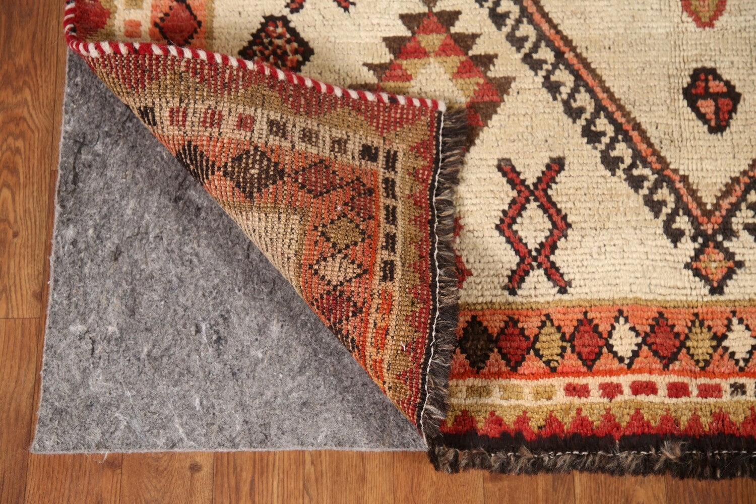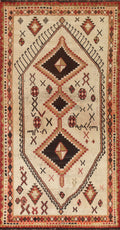 A Beautiful Genuine Persia ( Persia ) Gabbeh rug is Hand Knotted by skillful weavers in Persia ( Persia ) with 100% Wool Material. This rug is in Very Good(Evenly Low Pile) condition. dimensions are 7' 11'' X 4' 2'' in foot and 241 X 127 in centimeter. the primary color is Beige & Ivories.