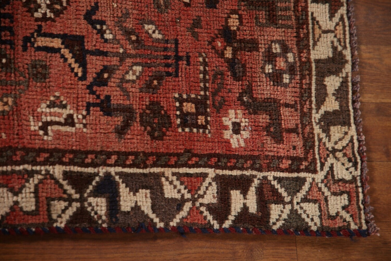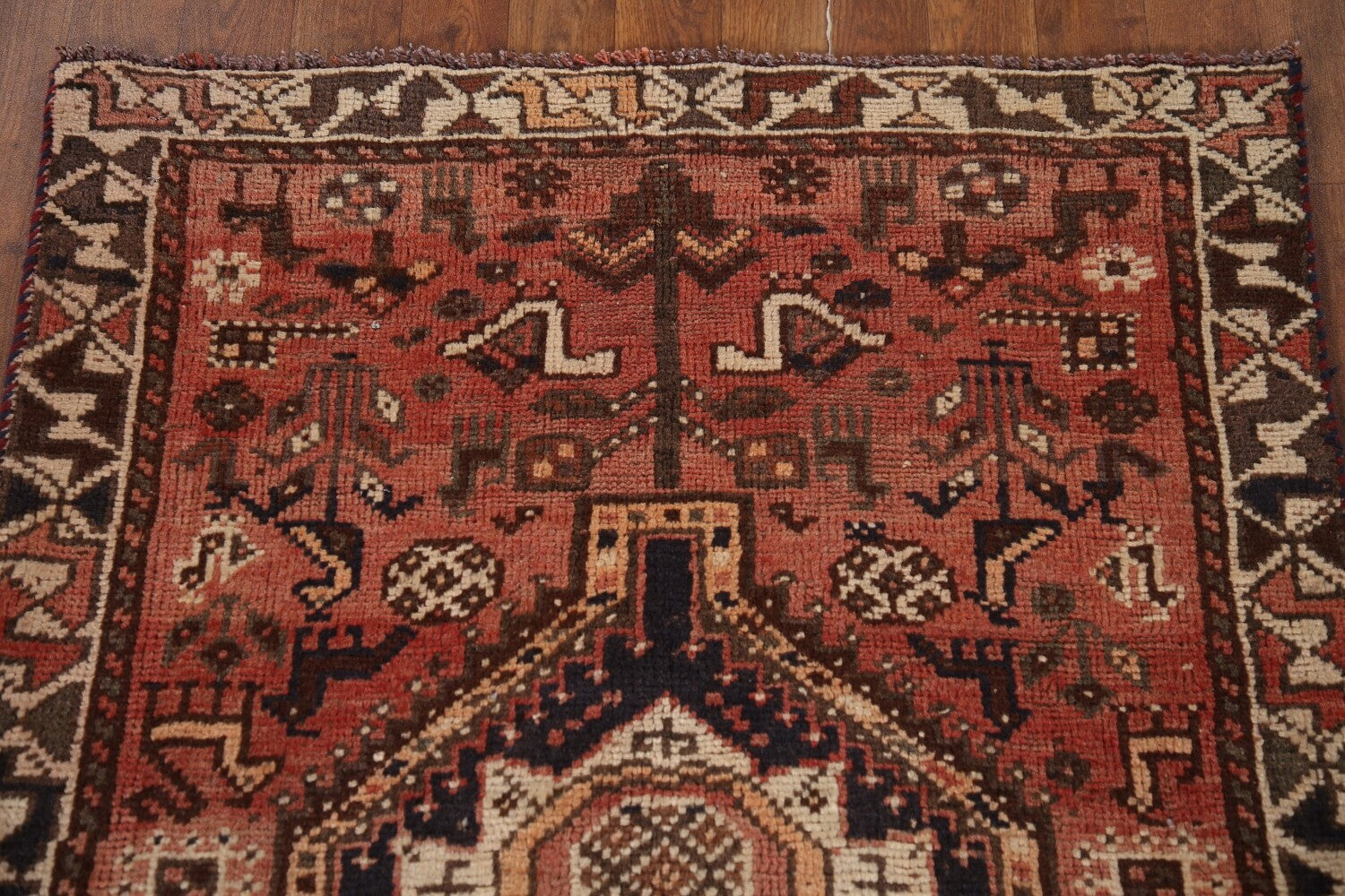 A Beautiful Genuine Persia ( Persia ) Qashqai rug is Hand Knotted by skillful weavers in Persia ( Persia ) with 100% Wool Material. This rug is in Very Good (Evenly Low Pile) condition. dimensions are 4' 7'' X 2' 11'' in foot and 140 X 89 in centimeter. the primary color is Pink.