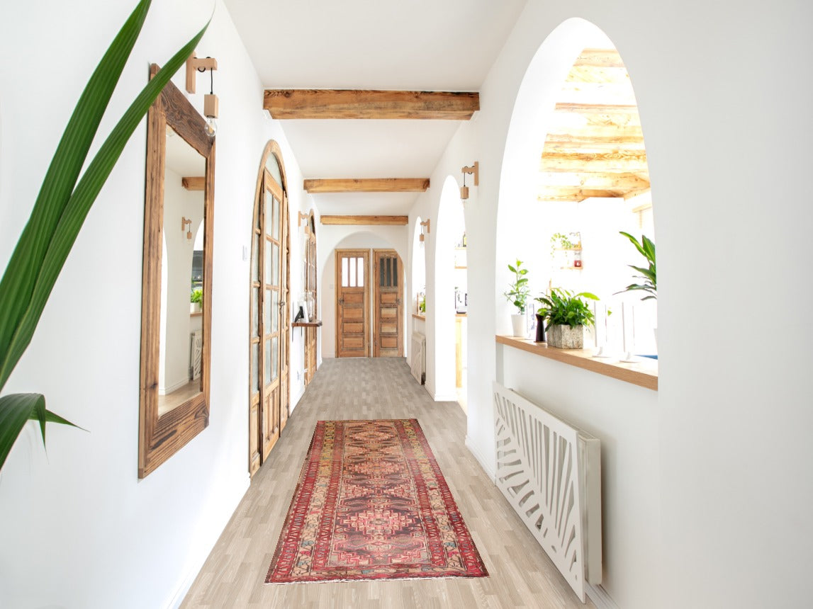 Vintage Wool Ardebil Persian Runner Rug 2x10