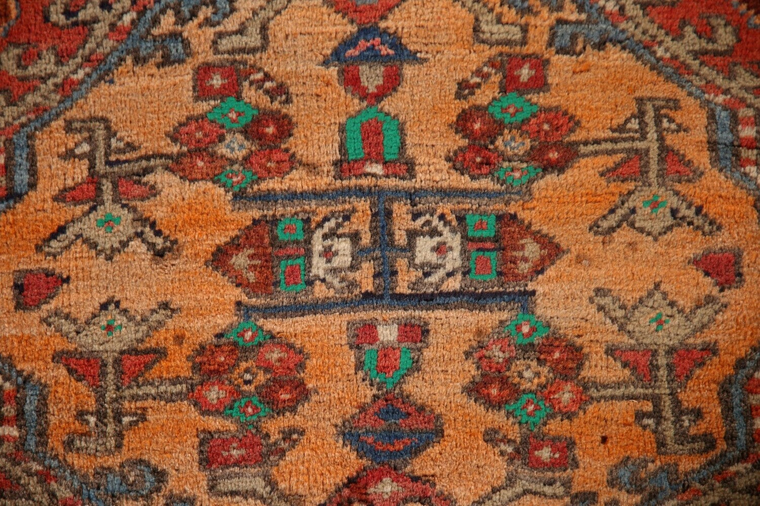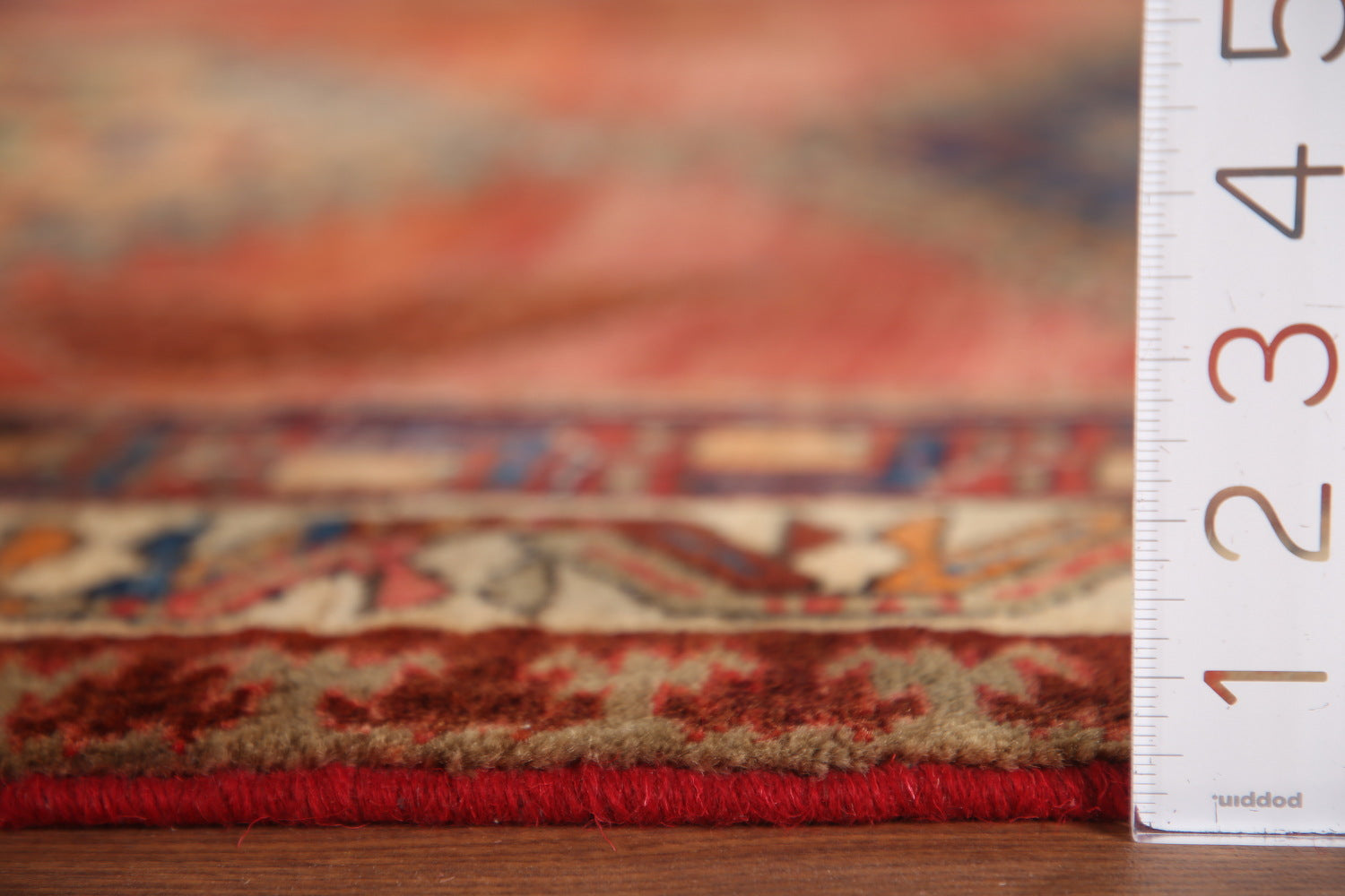 A Beautiful Genuine Persia ( Persia ) Ardebil rug is Hand Knotted by skillful weavers in Persia ( Persia ) with 100% Wool Material. This rug is in Very Good (Low Pile-Abrash) condition. dimensions are 10' 7'' X 3' 6'' in foot and 323 X 107 in centimeter. the primary color is Red.