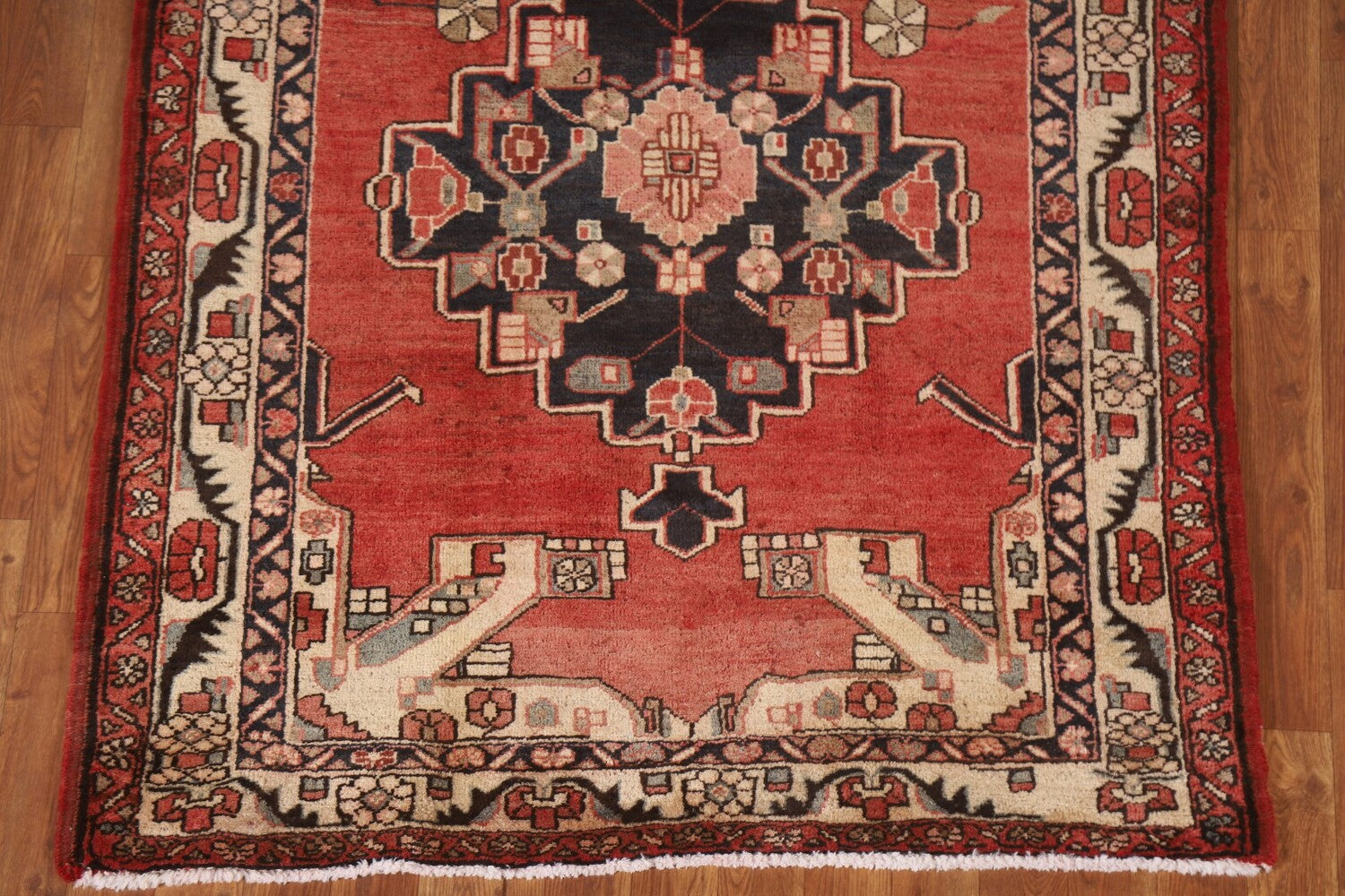 A Beautiful Genuine Persia ( Persia ) Ardebil rug is Hand Knotted by skillful weavers in Persia ( Persia ) with 100% Wool Material. This rug is in Very Good (Abrash-Low Pile) condition. dimensions are 11' 4'' X 3' 10'' in foot and 345 X 117 in centimeter. the primary color is Red.