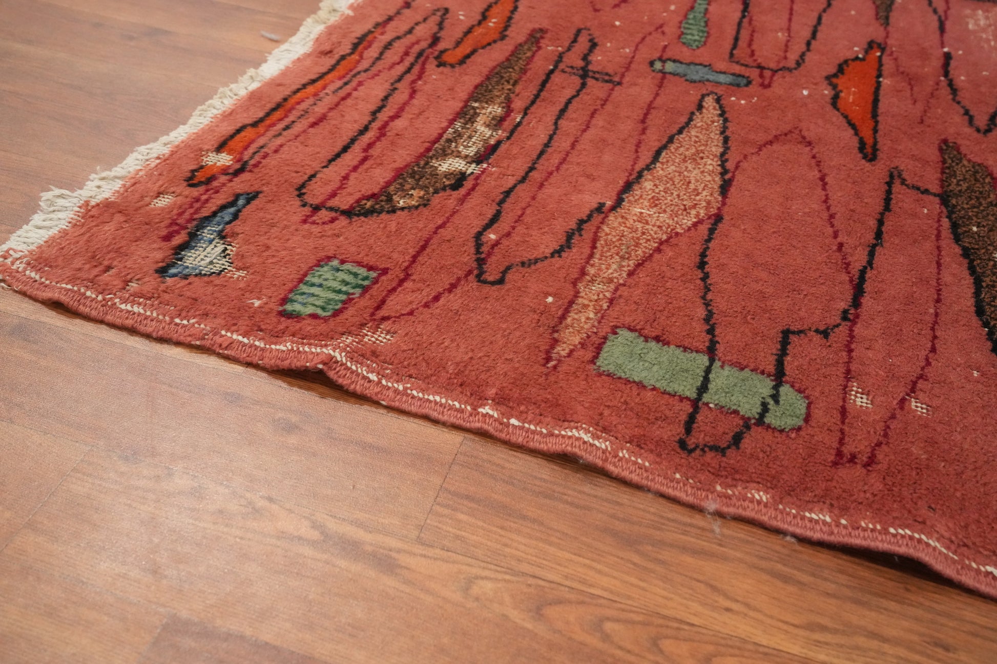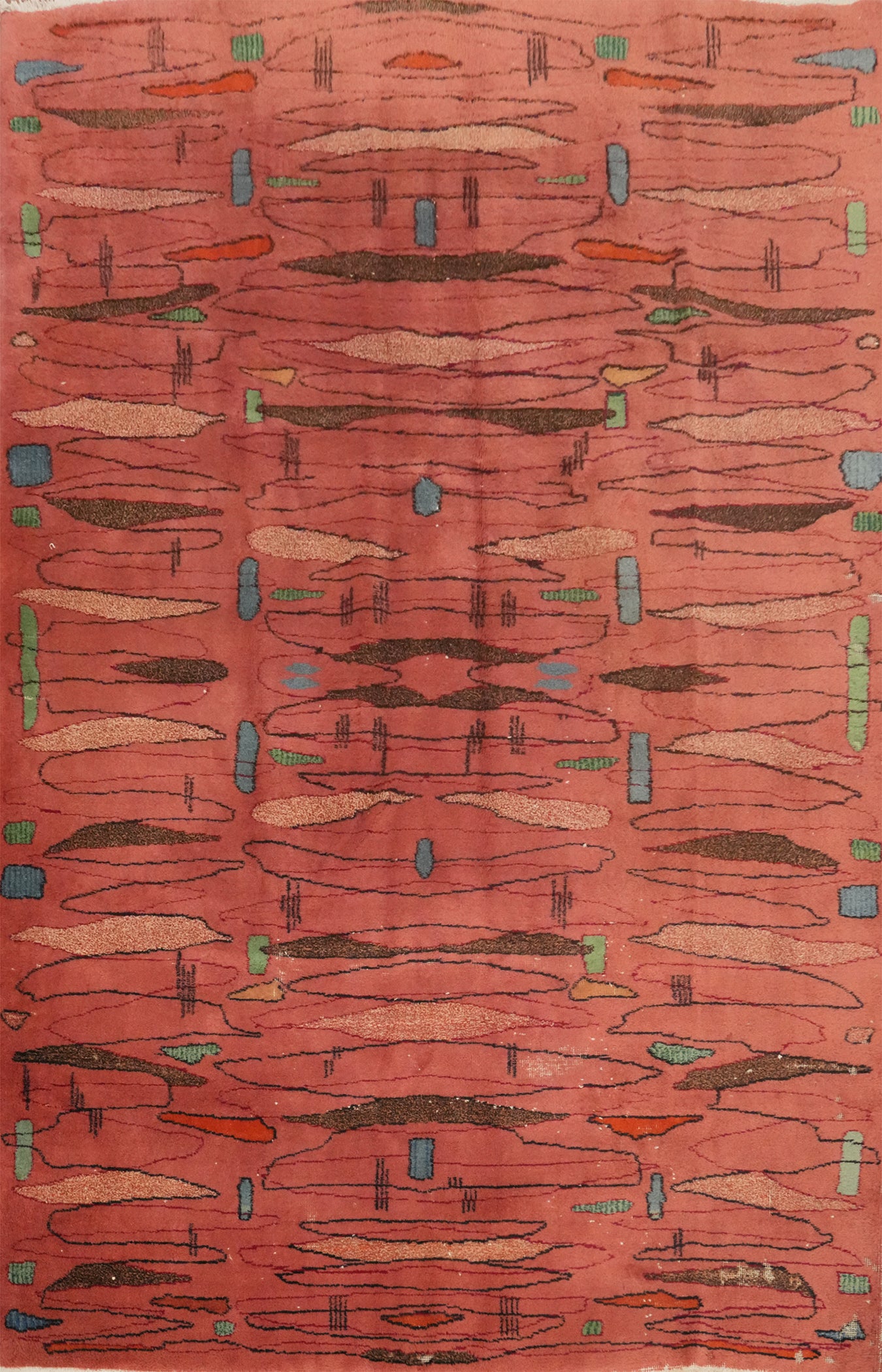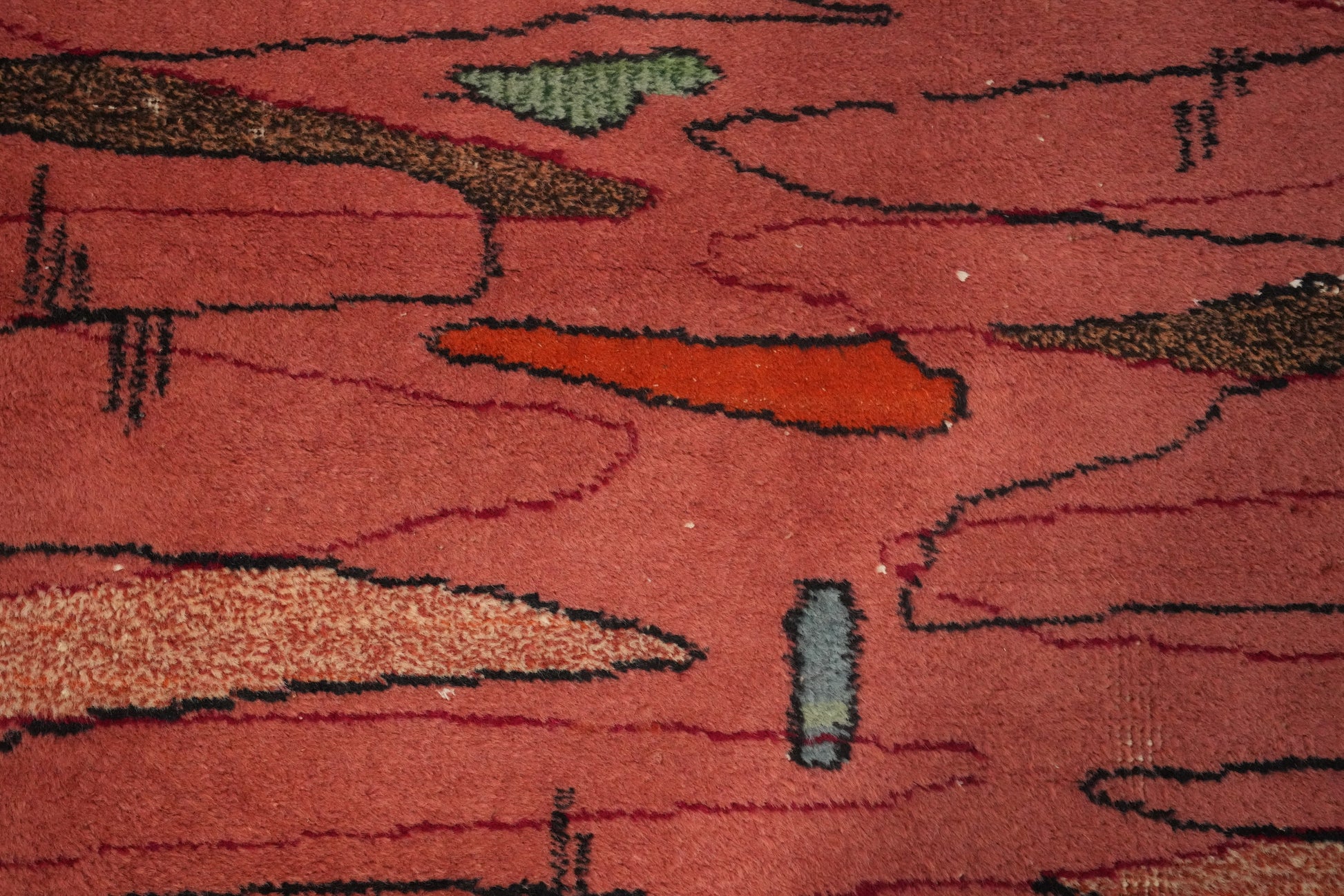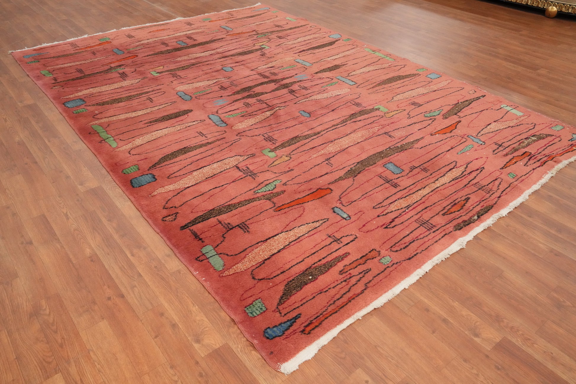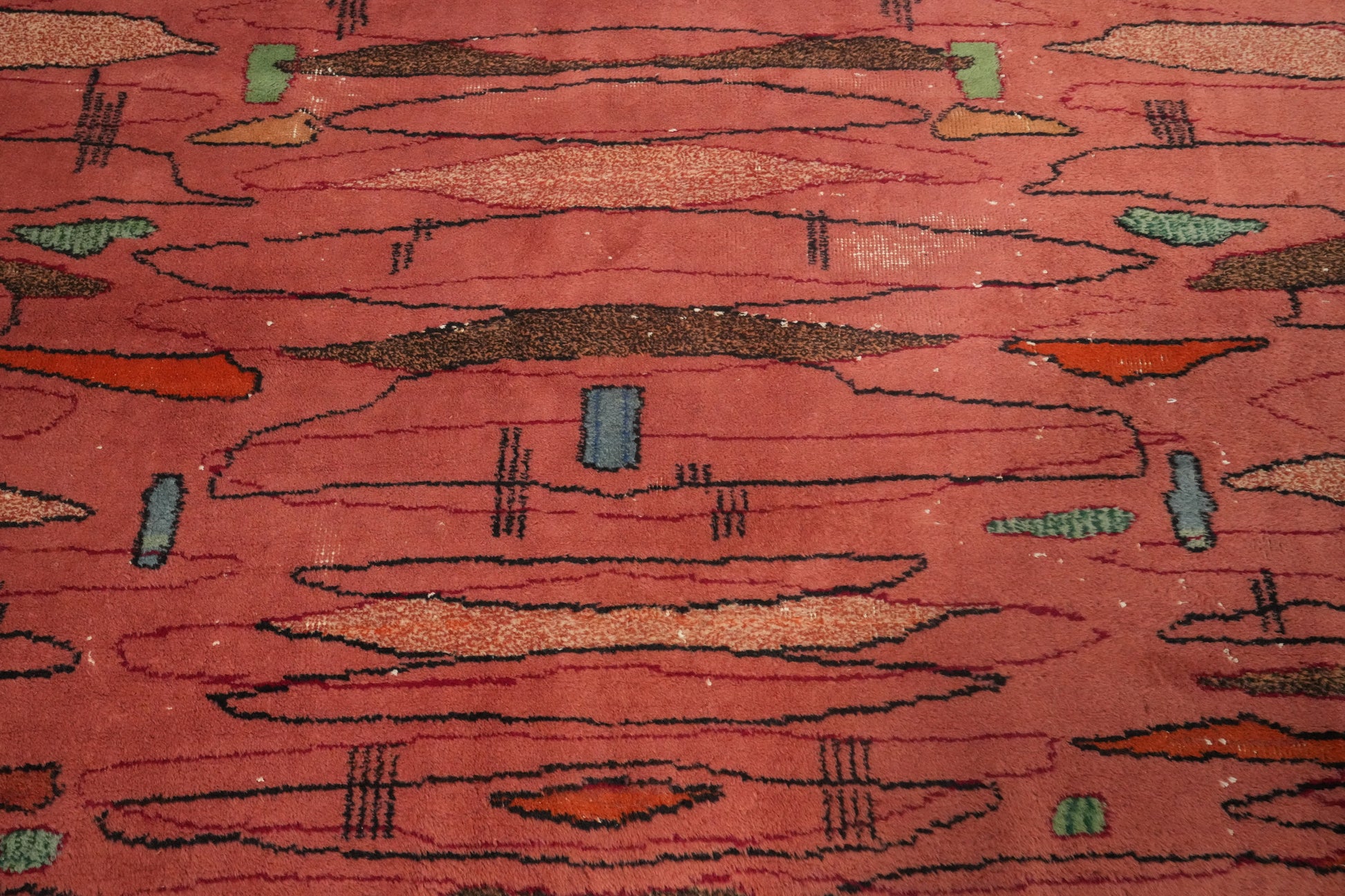 A Beautiful Genuine China Art Deco rug is Hand Knotted by skillful weavers in China with 100% Wool Material. This rug is in Very Good ( Low Pile ) condition. dimensions are 10' 1'' X 7' 0'' in foot and 307 X 213 in centimeter. the primary color is Coral.