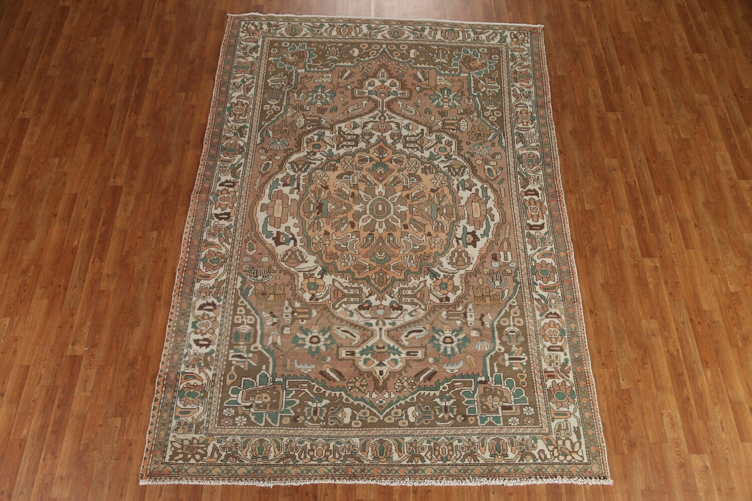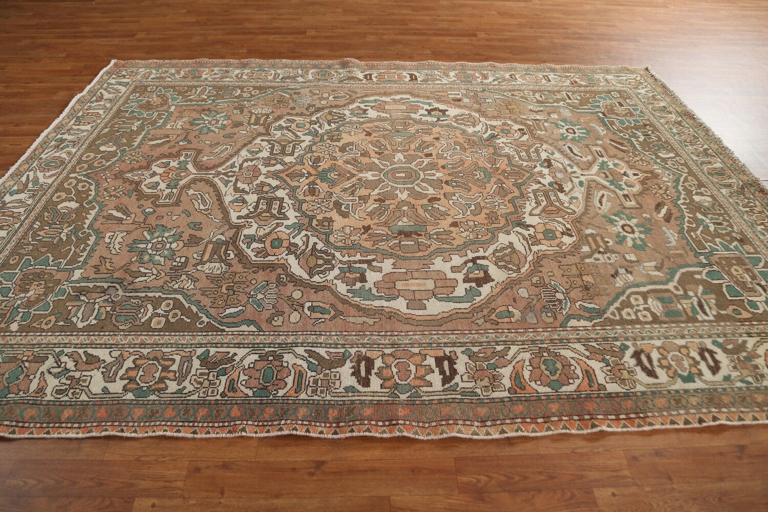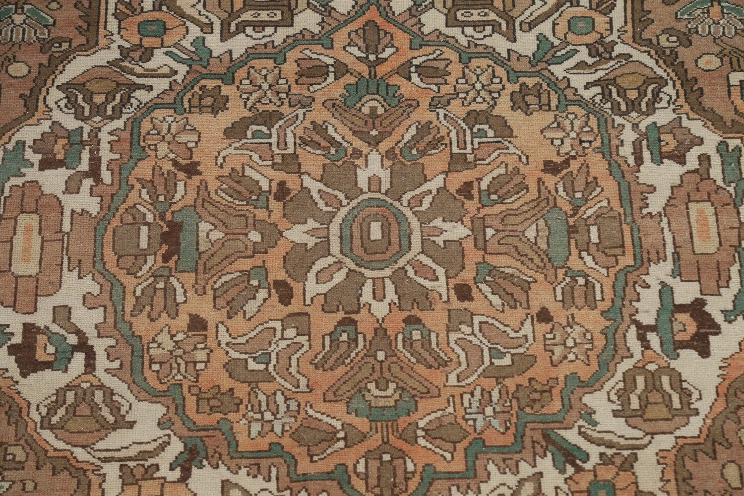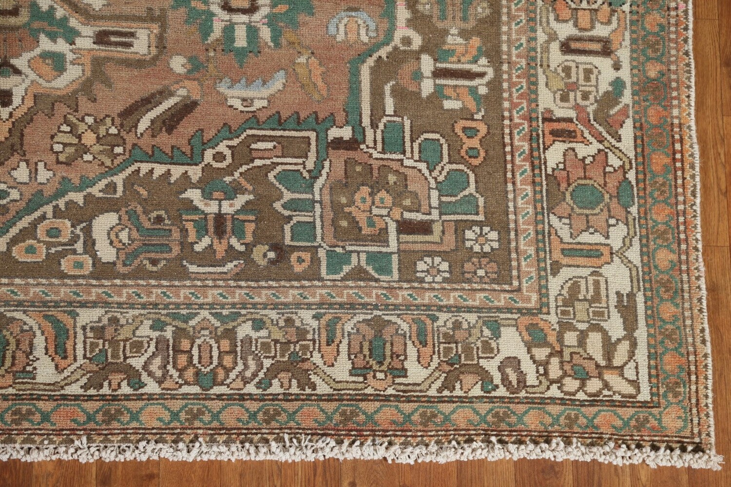 A Beautiful Genuine Persia ( Persia ) Bakhtiari rug is Hand Knotted by skillful weavers in Persia ( Persia ) with 100% Wool Material. This rug is in Very Good (Low Pile-Repair-Stain) condition. dimensions are 9' 8'' X 6' 9'' in foot and 295 X 206 in centimeter. the primary color is Brown.