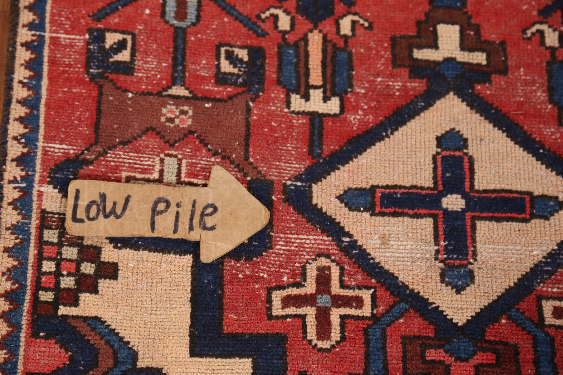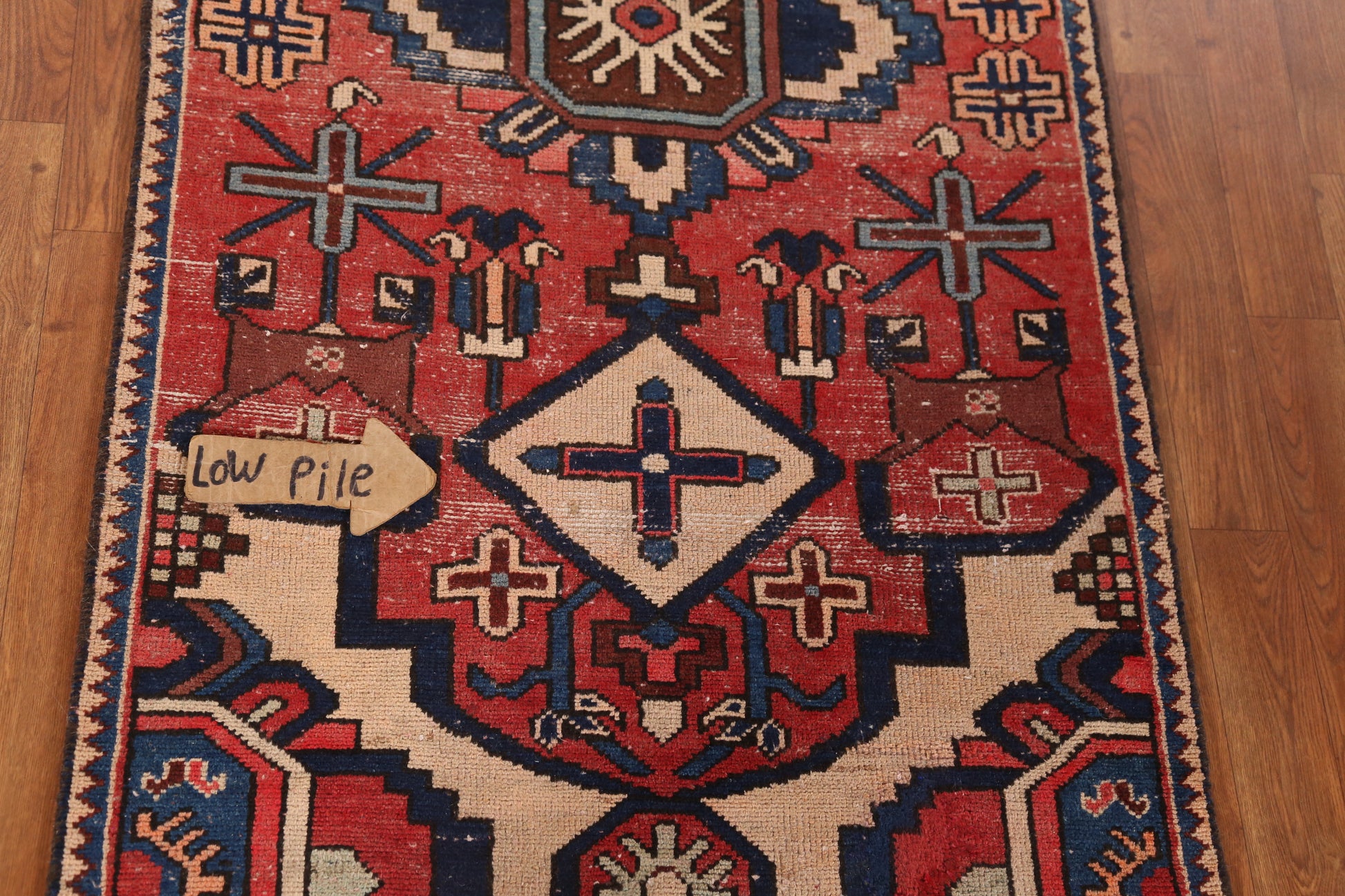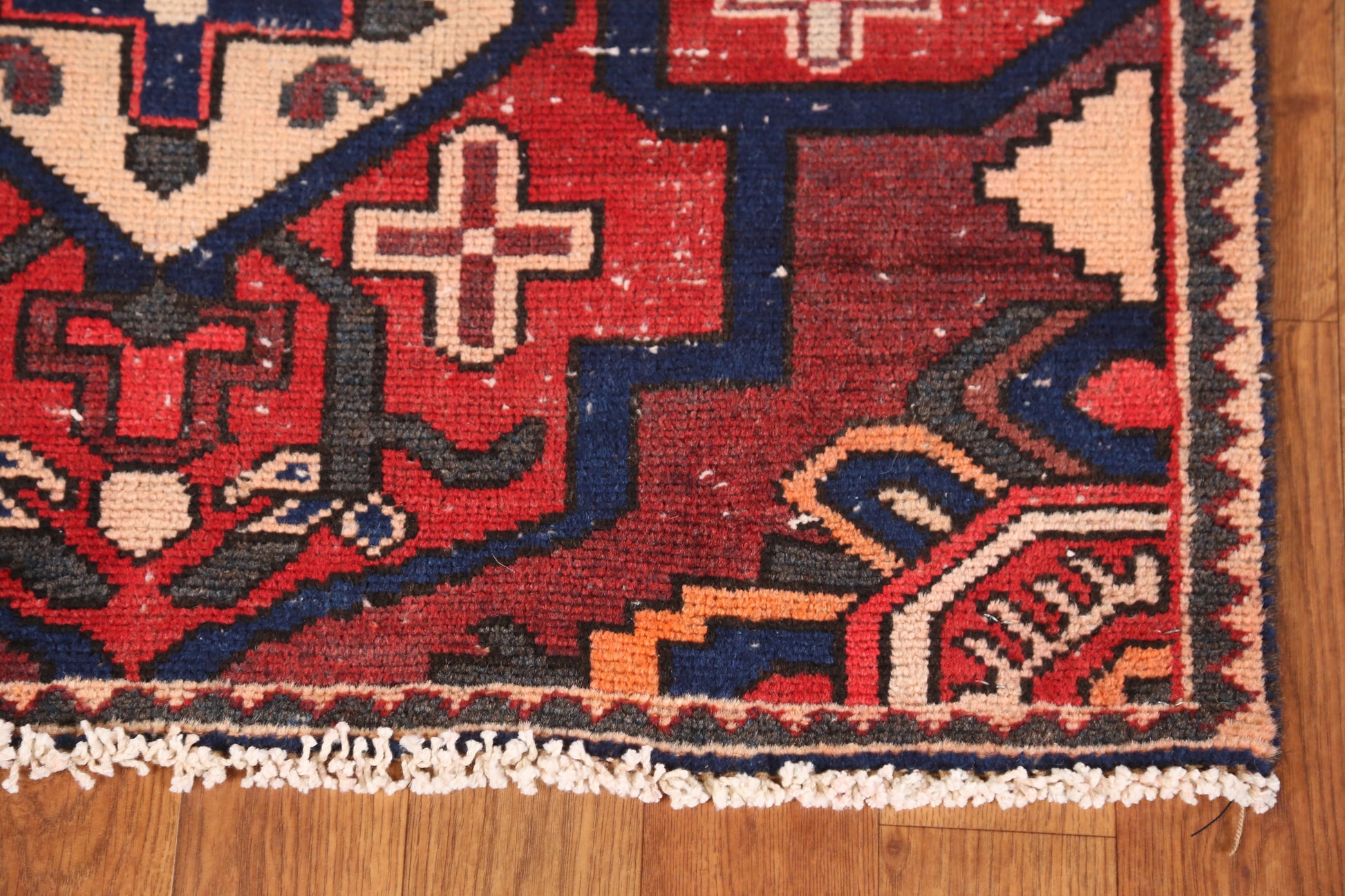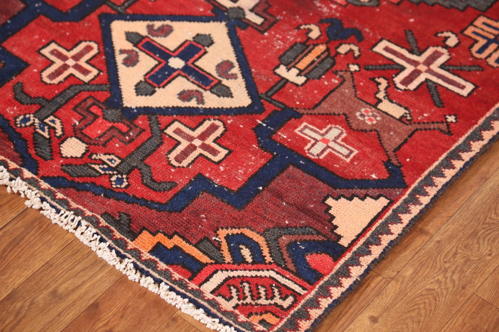 A Beautiful Genuine Persia ( Persia ) Bakhtiari rug is Hand Knotted by skillful weavers in Persia ( Persia ) with 100% Wool Material. This rug is in Very Good ( Low Pile- Repair) condition. dimensions are 9' 6'' X 2' 9'' in foot and 290 X 84 in centimeter. the primary color is Red.