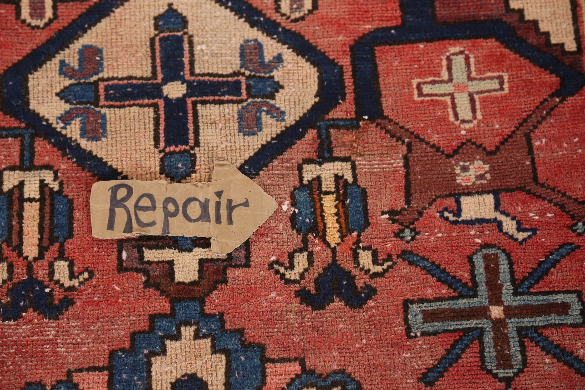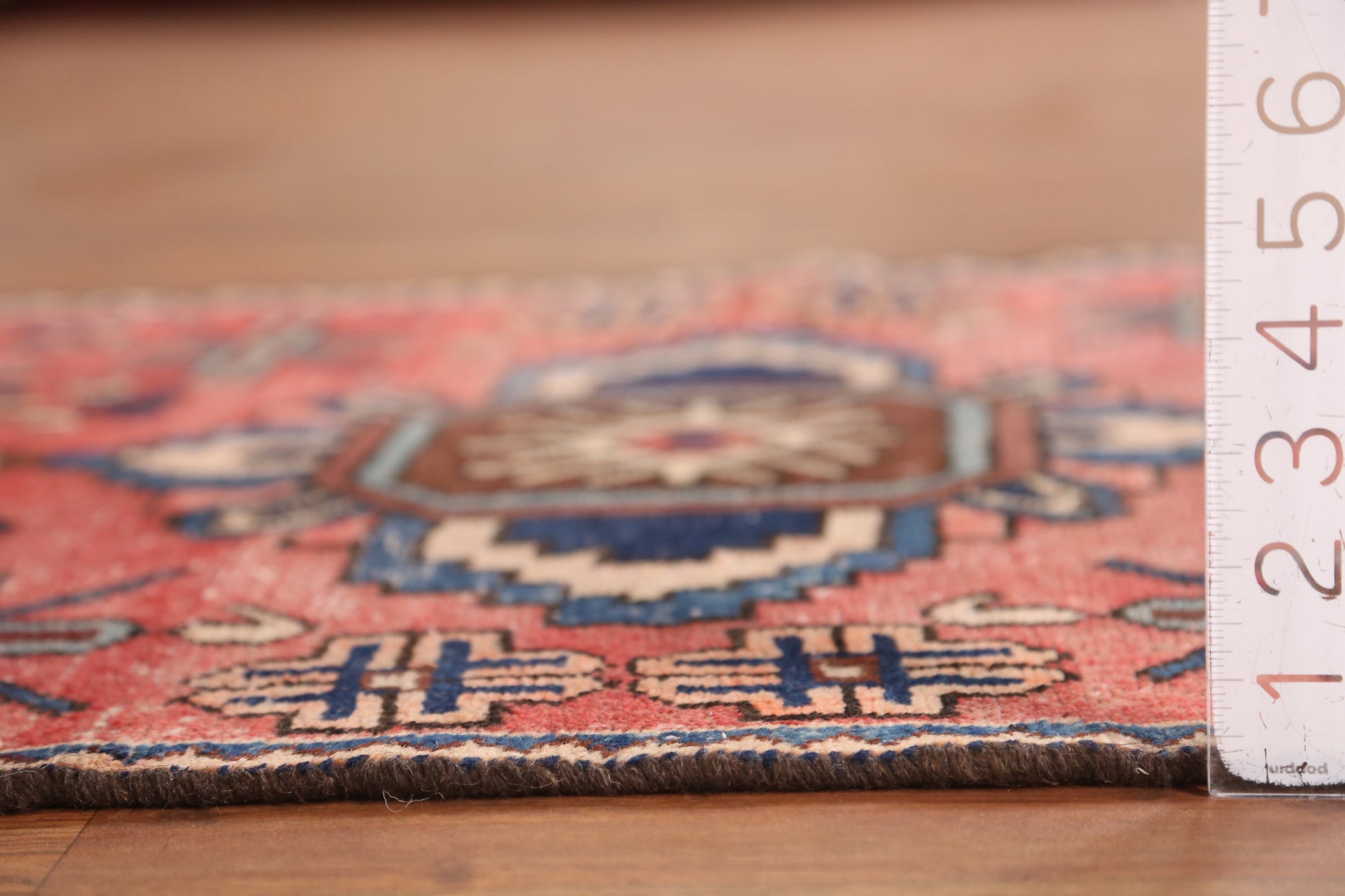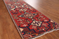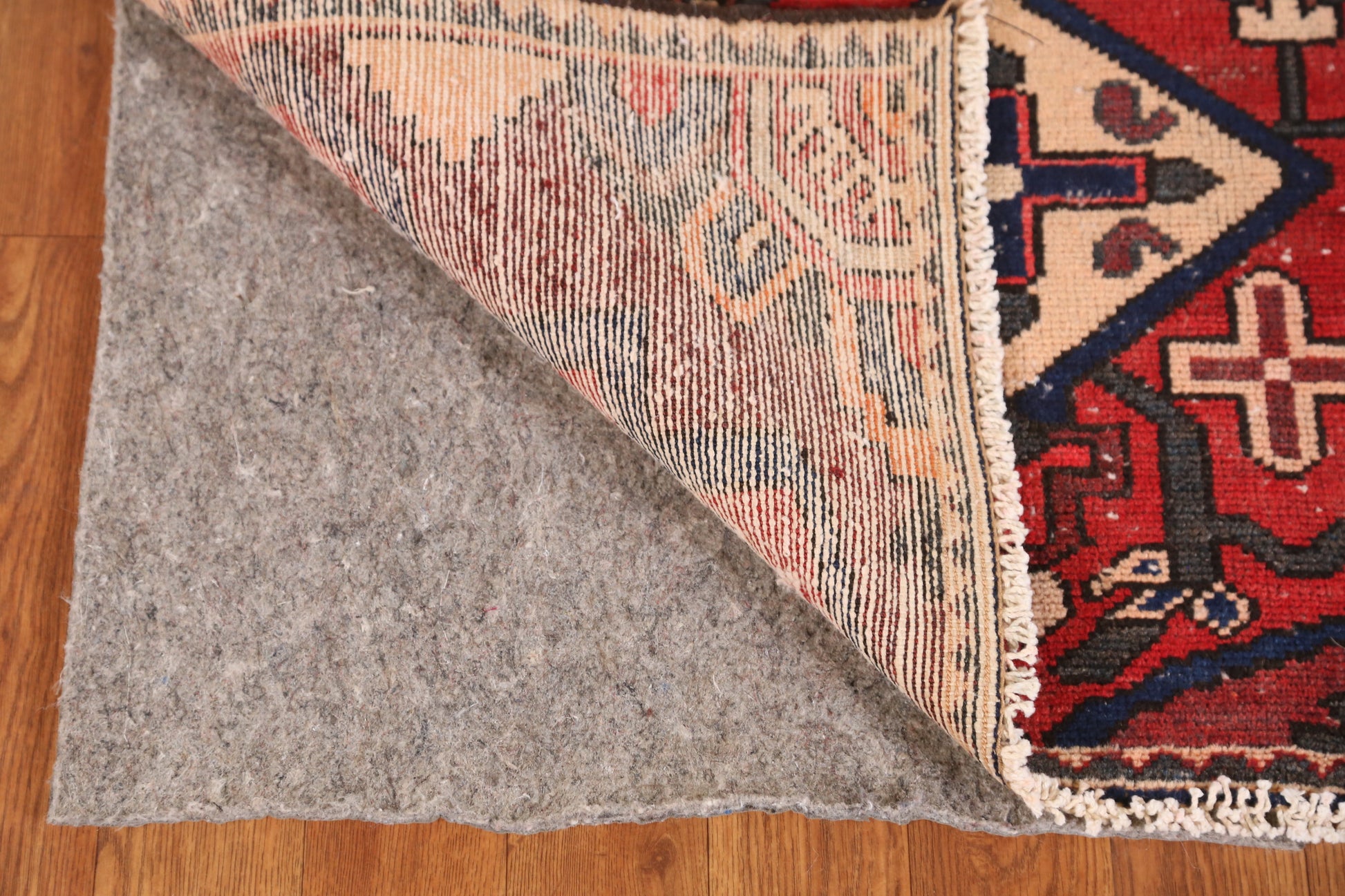 A Beautiful Genuine Persia ( Persia ) Bakhtiari rug is Hand Knotted by skillful weavers in Persia ( Persia ) with 100% Wool Material. This rug is in Very Good ( Low Pile- Repair) condition. dimensions are 9' 6'' X 2' 9'' in foot and 290 X 84 in centimeter. the primary color is Red.