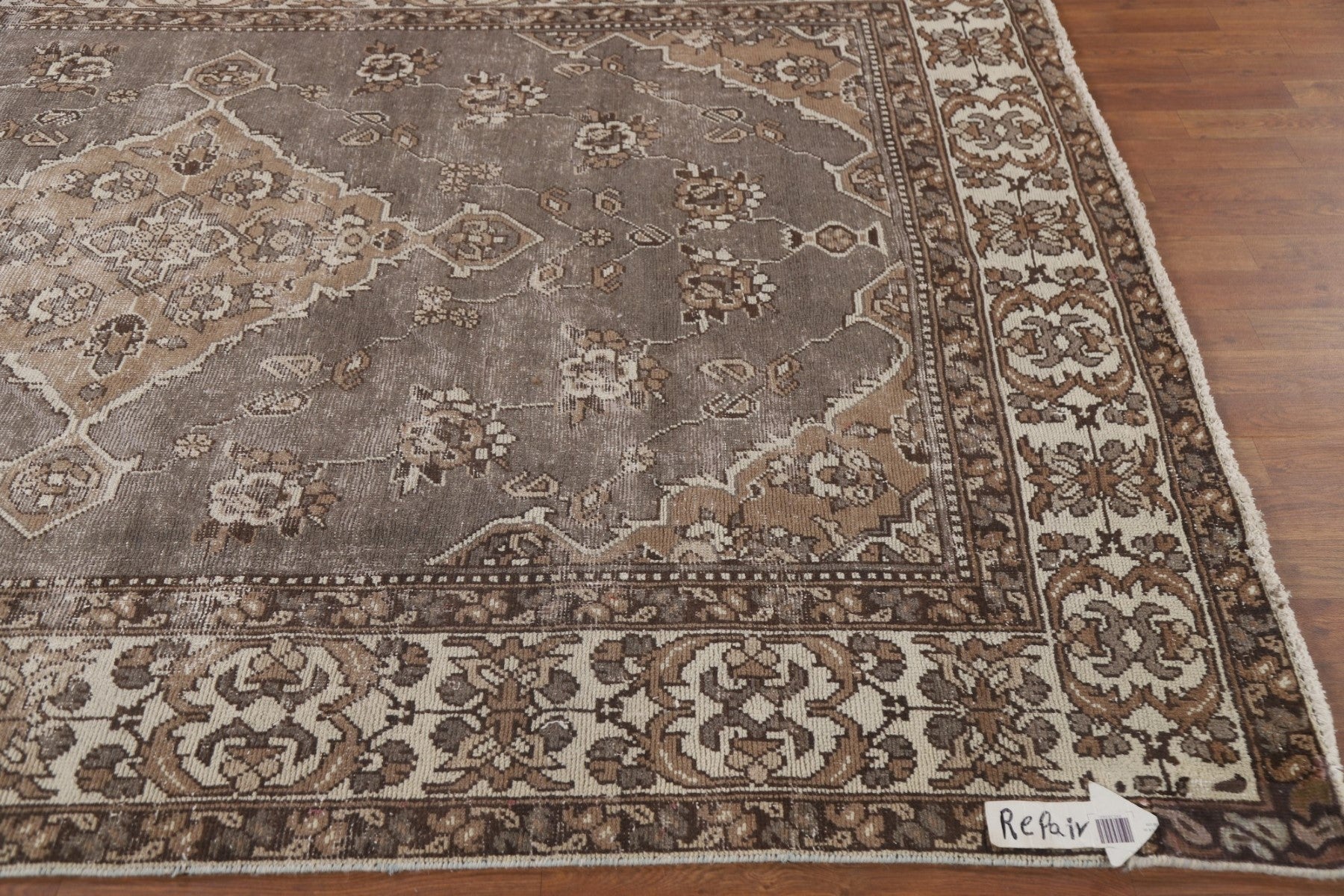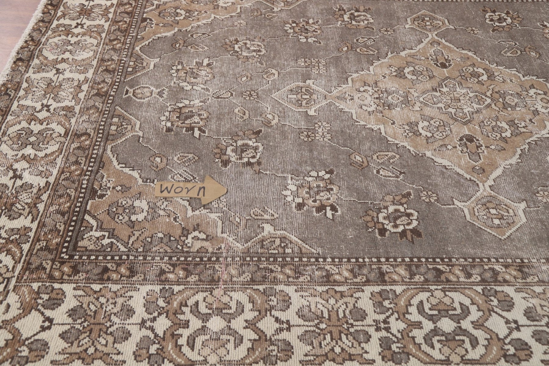 A Beautiful Genuine Persia ( Persia ) Ferdos rug is Hand Knotted by skillful weavers in Persia ( Persia ) with 100% Wool Material. This rug is in Good (Worn-Repair) condition. dimensions are 9' 5'' X 6' 3'' in foot and 287 X 191 in centimeter. the primary color is Greys & Charcoal.
