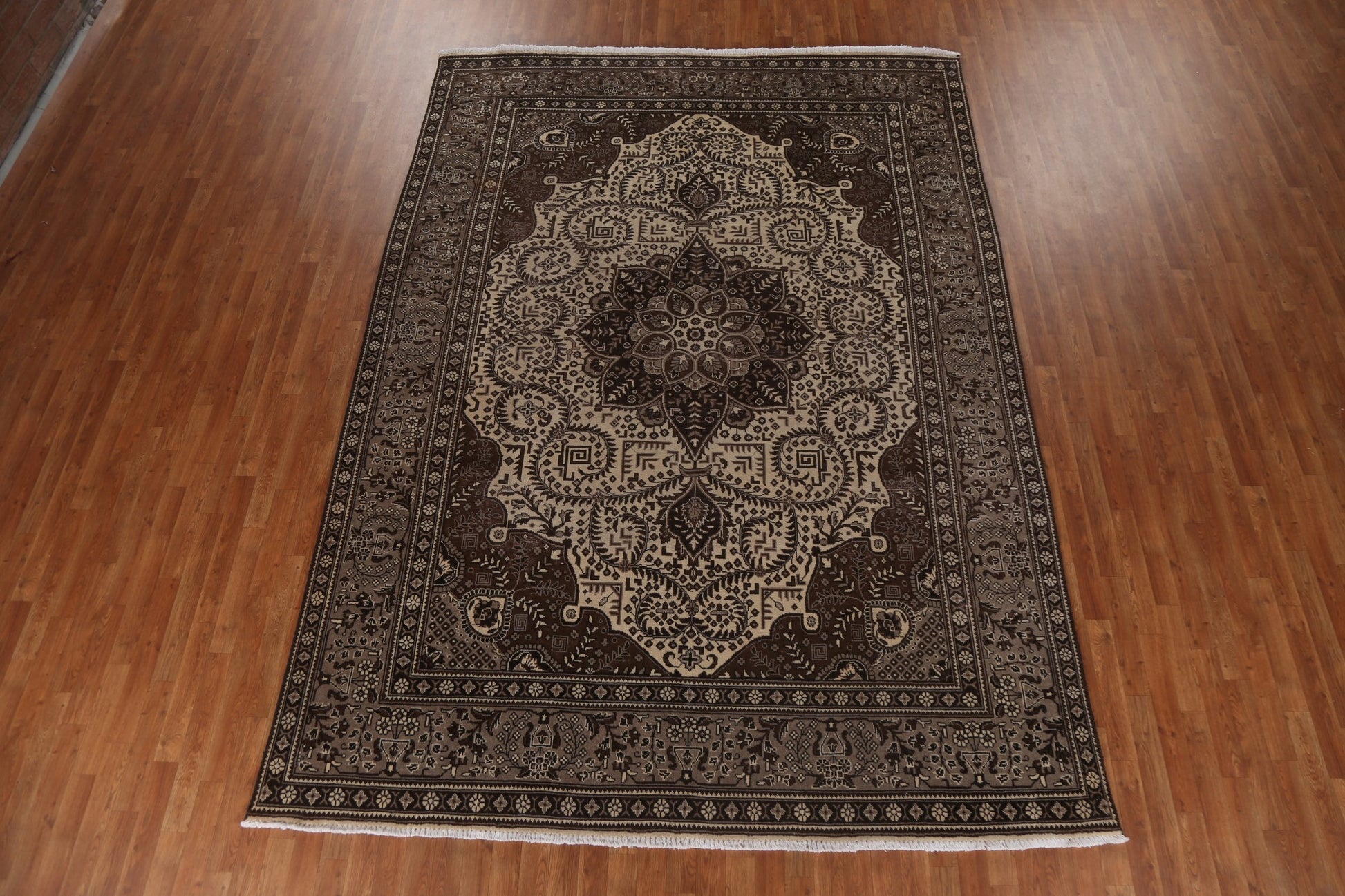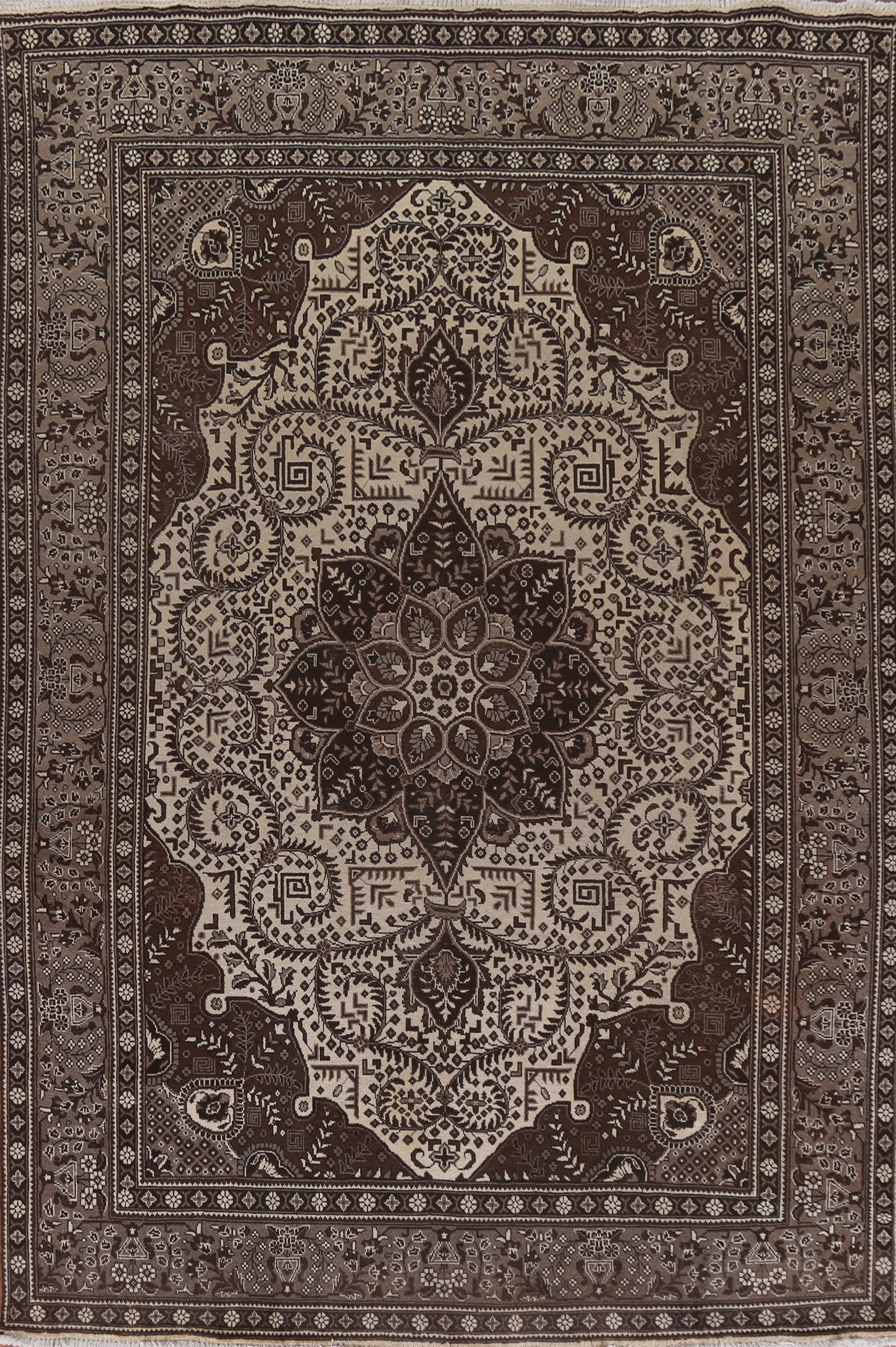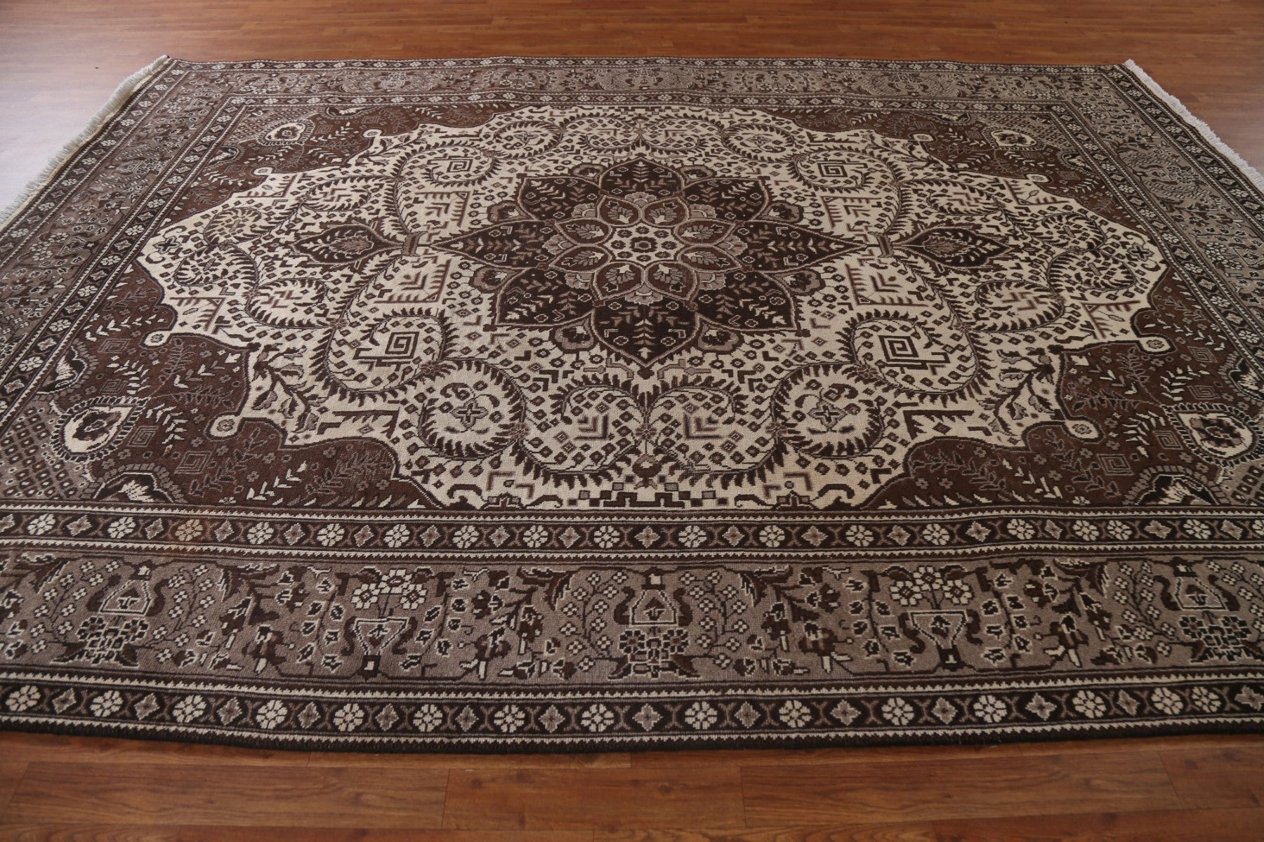 A Beautiful Genuine Persia ( Persia ) Ferdos rug is Hand Knotted by skillful weavers in Persia ( Persia ) with 100% Wool Material. This rug is in Very Good (Evenly Low Pile) condition. dimensions are 11' 5'' X 8' 3'' in foot and 348 X 251 in centimeter. the primary color is Beige & Ivories.