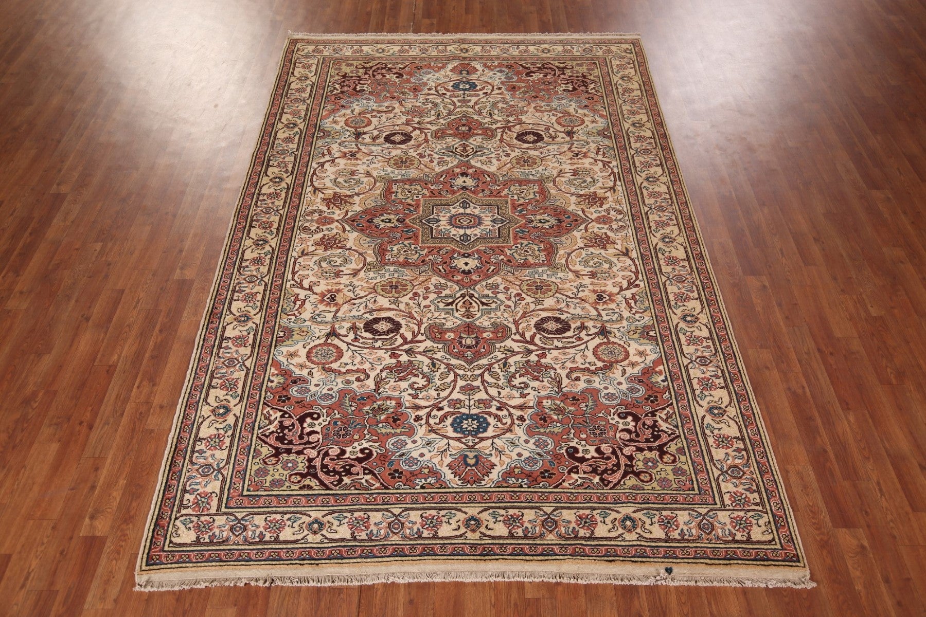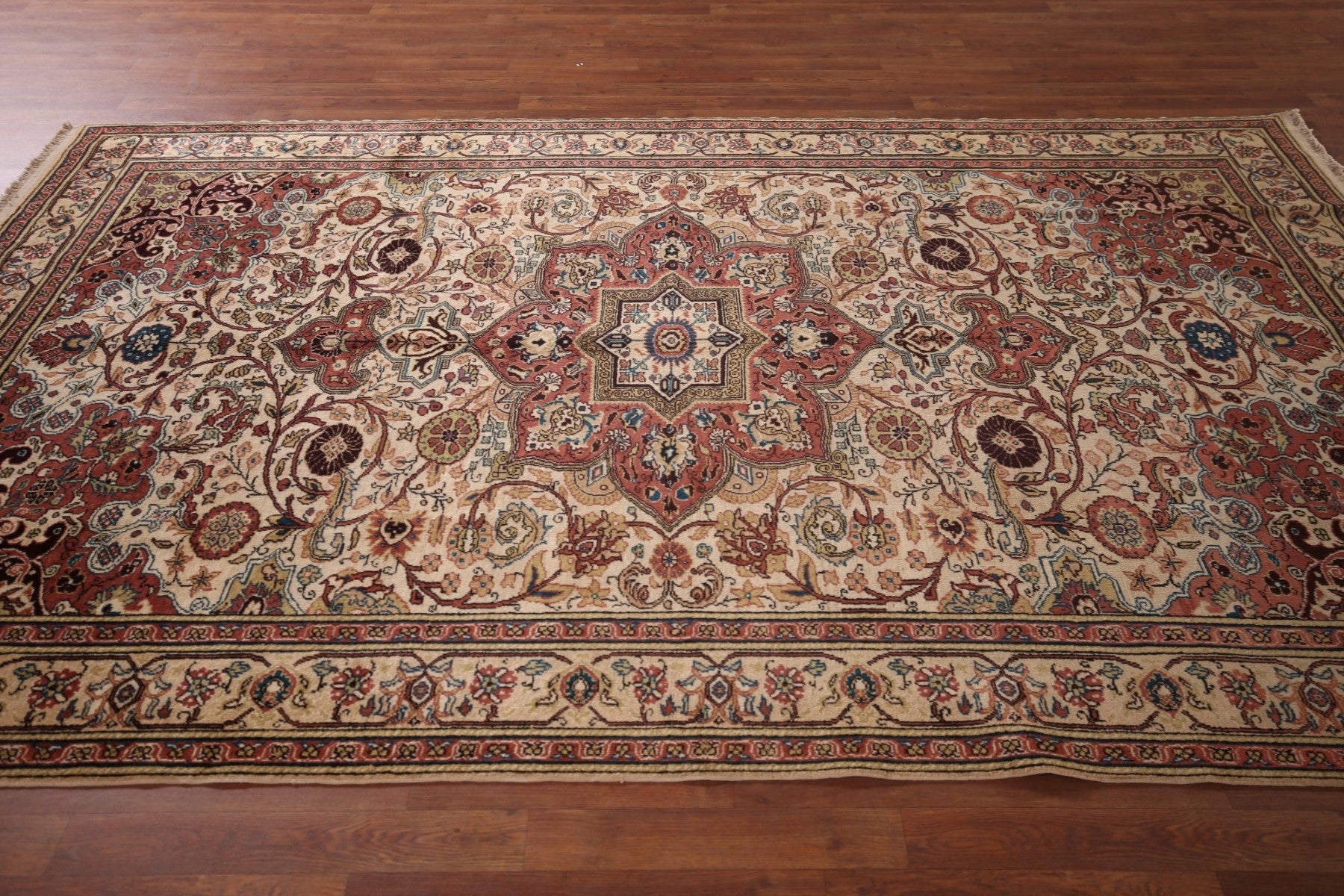 A Beautiful Genuine Turkey Anatolian rug is Hand Knotted by skillful weavers in Turkey with 100% Wool Material. This rug is in Excellent condition. dimensions are 9' 7'' X 6' 5'' in foot and 292 X 196 in centimeter. the primary color is Beige & Ivories.