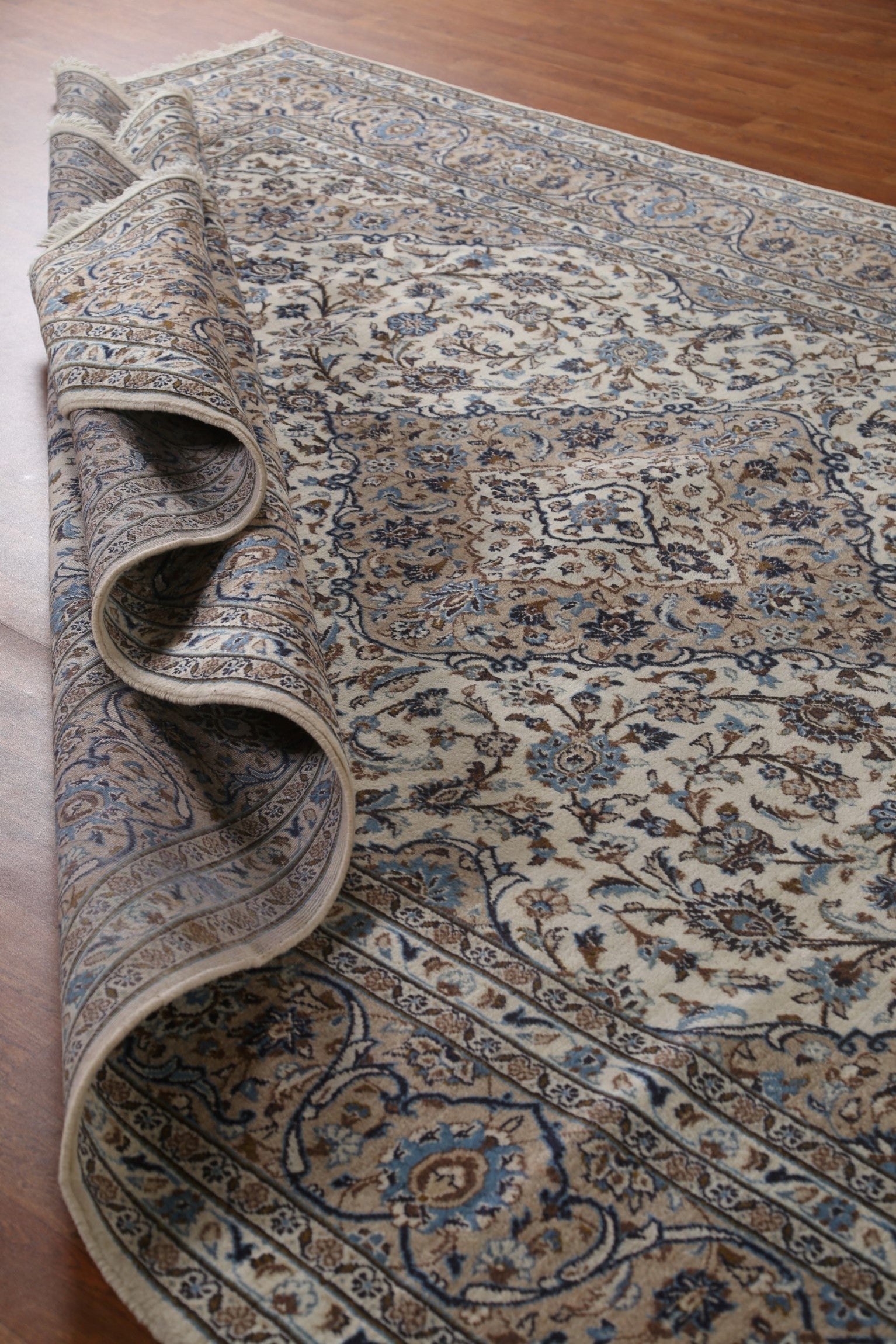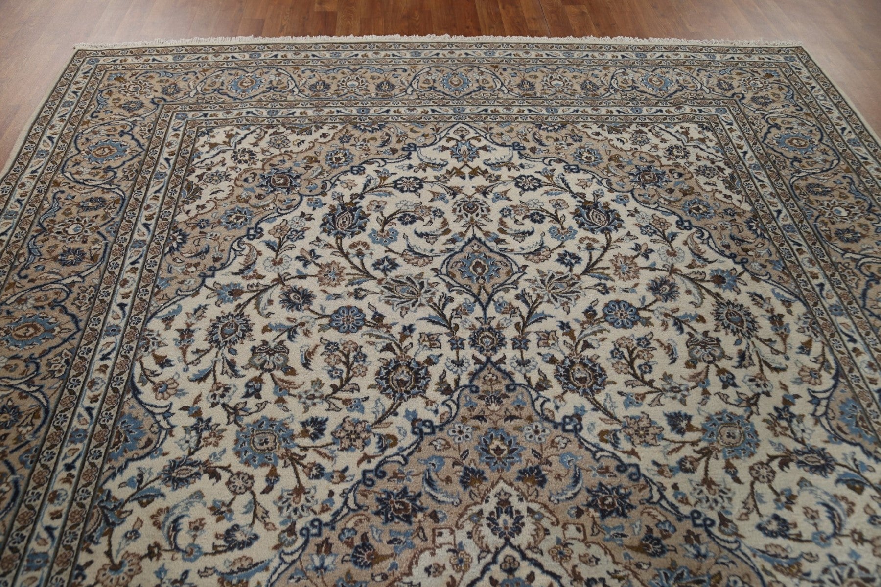 A Beautiful Genuine Persia ( Persia ) Kashan rug is Hand Knotted by skillful weavers in Persia ( Persia ) with 100% Wool Material. This rug is in Very Good (Faded Color) condition. dimensions are 11' 8'' X 8' 2'' in foot and 356 X 249 in centimeter. the primary color is Beige & Ivories.