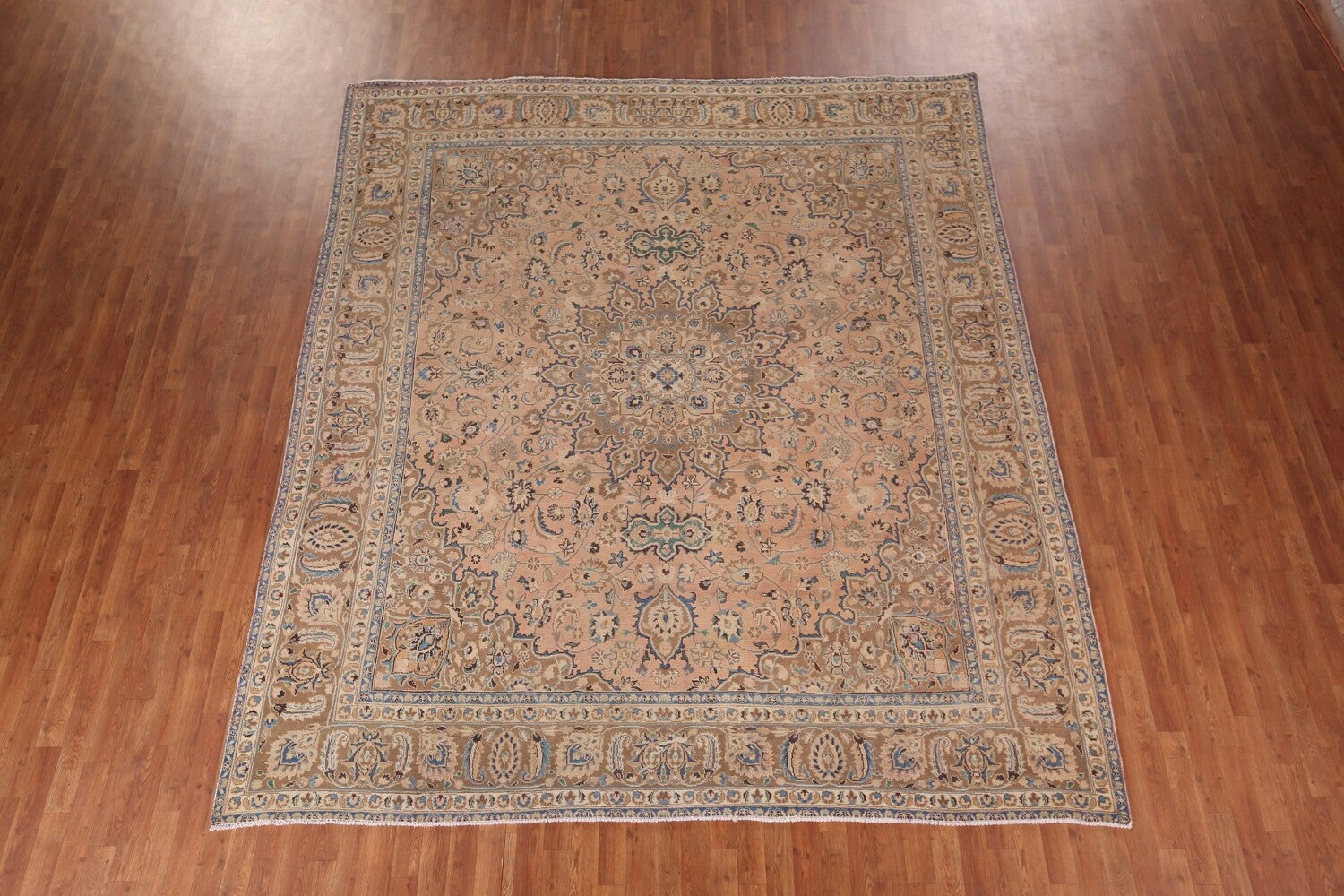 Vintage Wool Floral Mashad Persian Area Rug 9x11