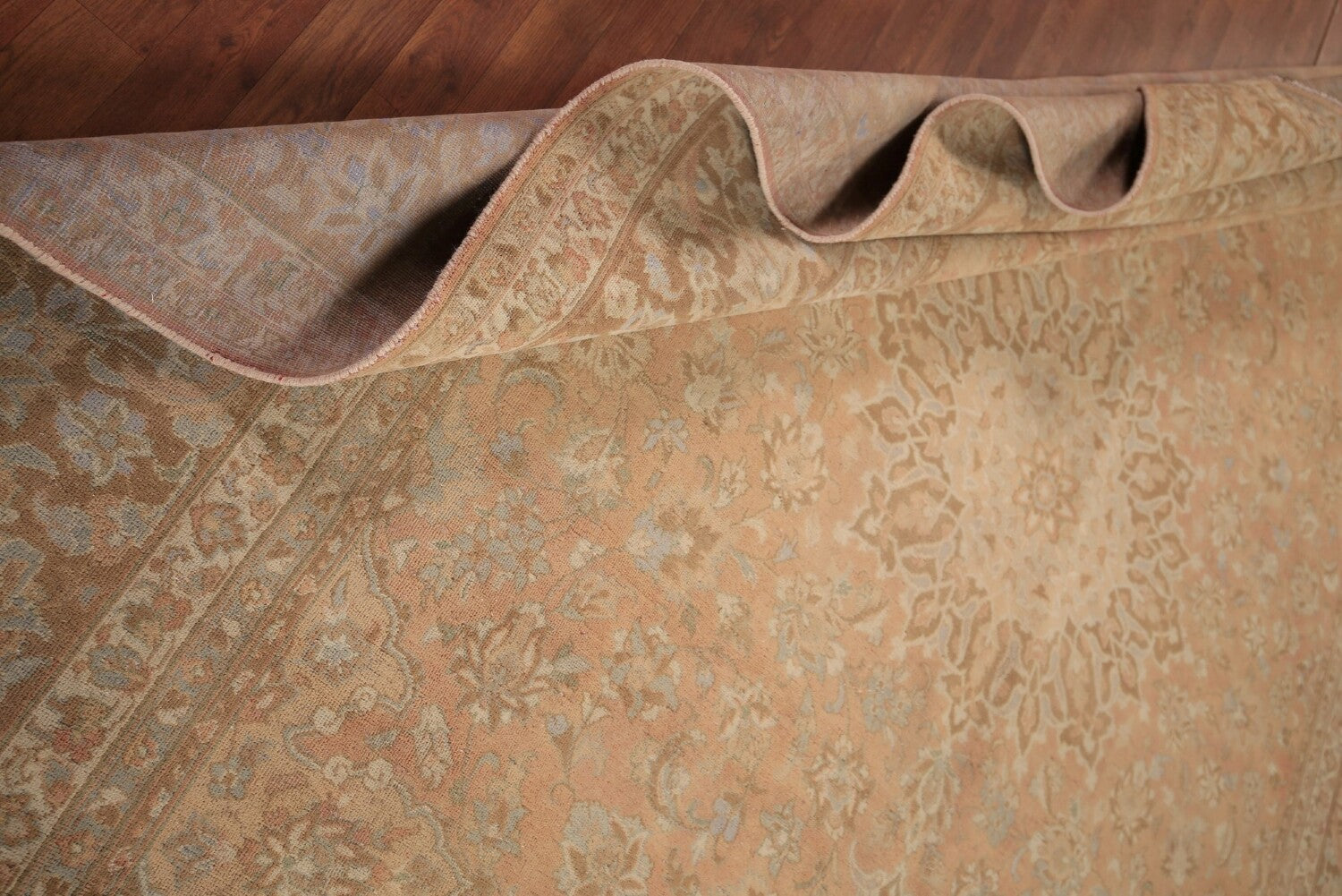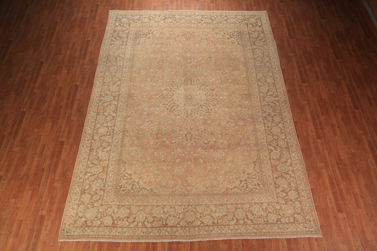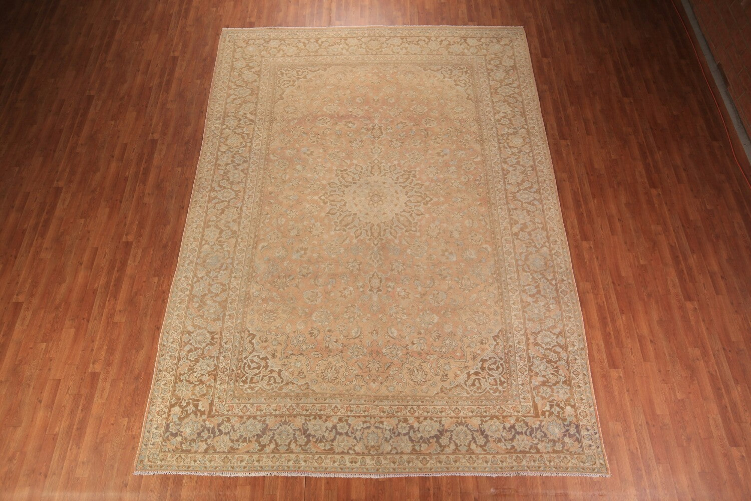 A Beautiful Genuine Persia ( Persia ) Najafabad rug is Hand Knotted by skillful weavers in Persia ( Persia ) with 100% Wool Material. This rug is in Very Good (Evenly Low Pile-Abrash) condition. dimensions are 13' 5'' X 9' 9'' in foot and 409 X 297 in centimeter. the primary color is Peach.