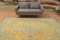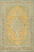 A Beautiful Genuine Persia ( Persia ) Tabriz rug is Hand Knotted by skillful weavers in Persia ( Persia ) with 100% Wool Material. This rug is in Very Good ( Evenly Low Pile-Repair) condition. dimensions are 9' 6'' X 6' 7'' in foot and 290 X 201 in centimeter. the primary color is Yellow & Gold.