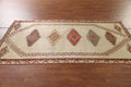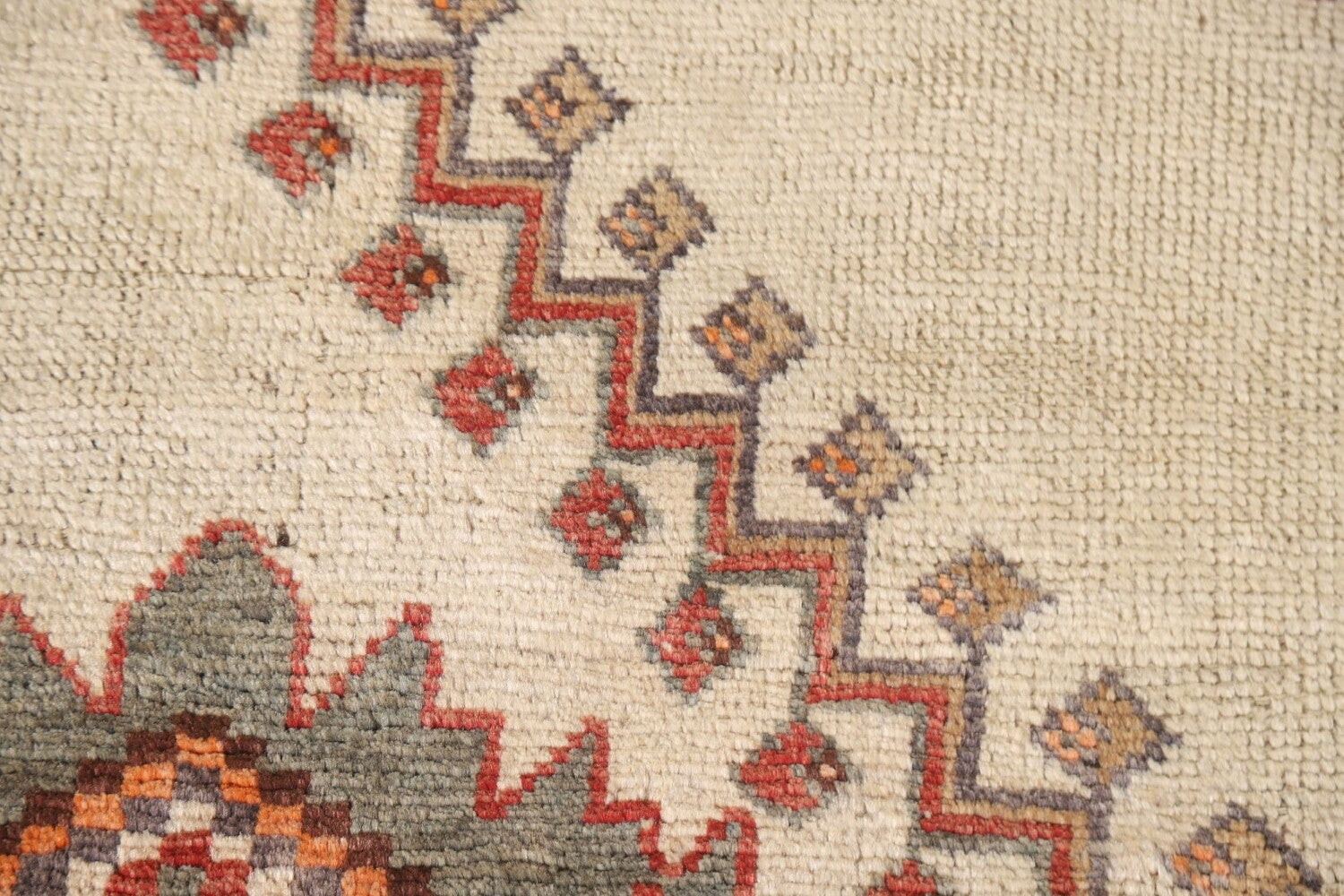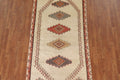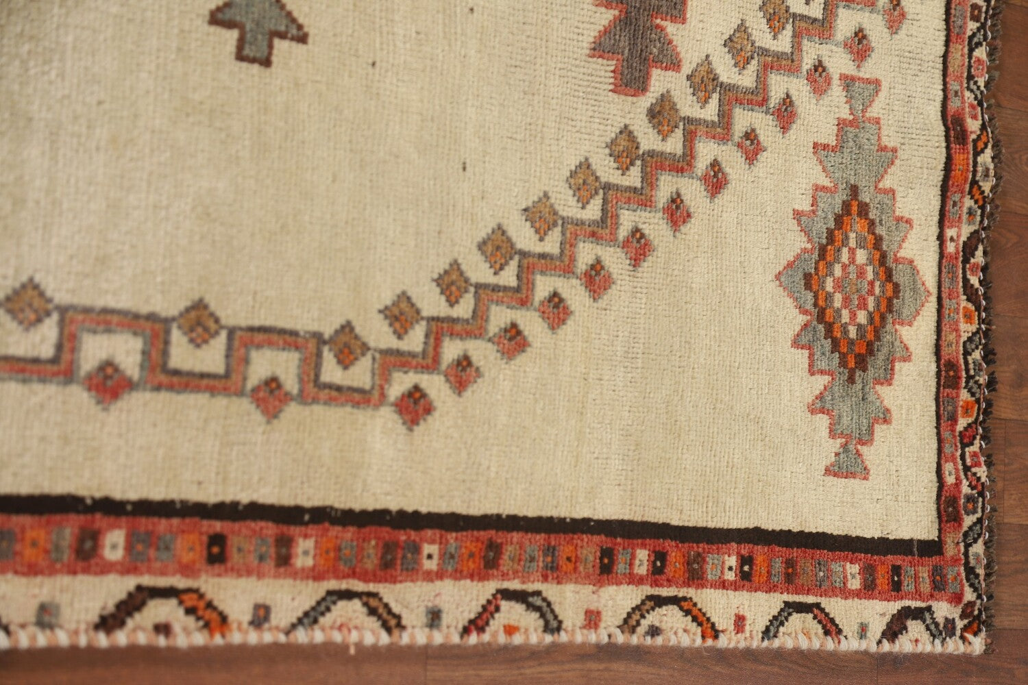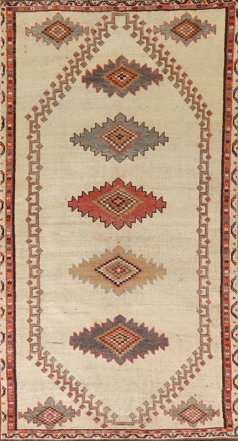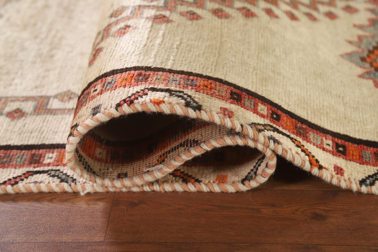 A Beautiful Genuine Persia ( Persia ) Gabbeh rug is Hand Knotted by skillful weavers in Persia ( Persia ) with 100% Wool Material. This rug is in Very Good (Evenly Low Pile-Bleeding) condition. dimensions are 7' 7'' X 3' 11'' in foot and 231 X 119 in centimeter. the primary color is Beige & Ivories.