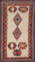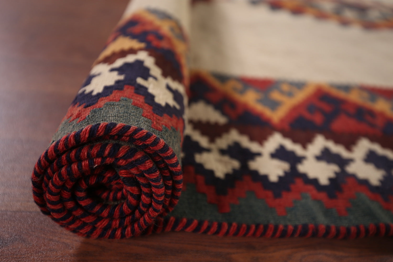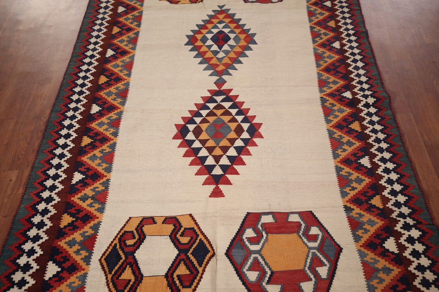 Vintage Wool Geometric Kilim Qashqai Persian Rug 4x8