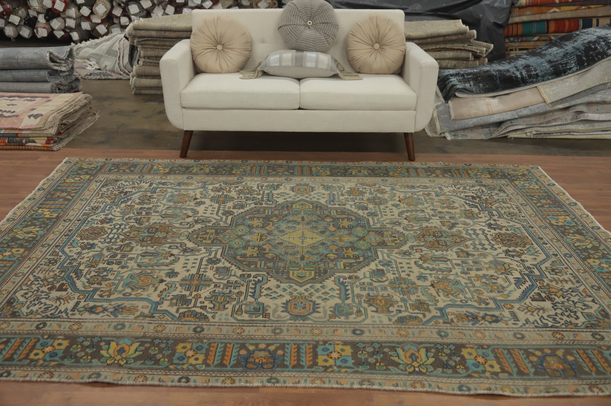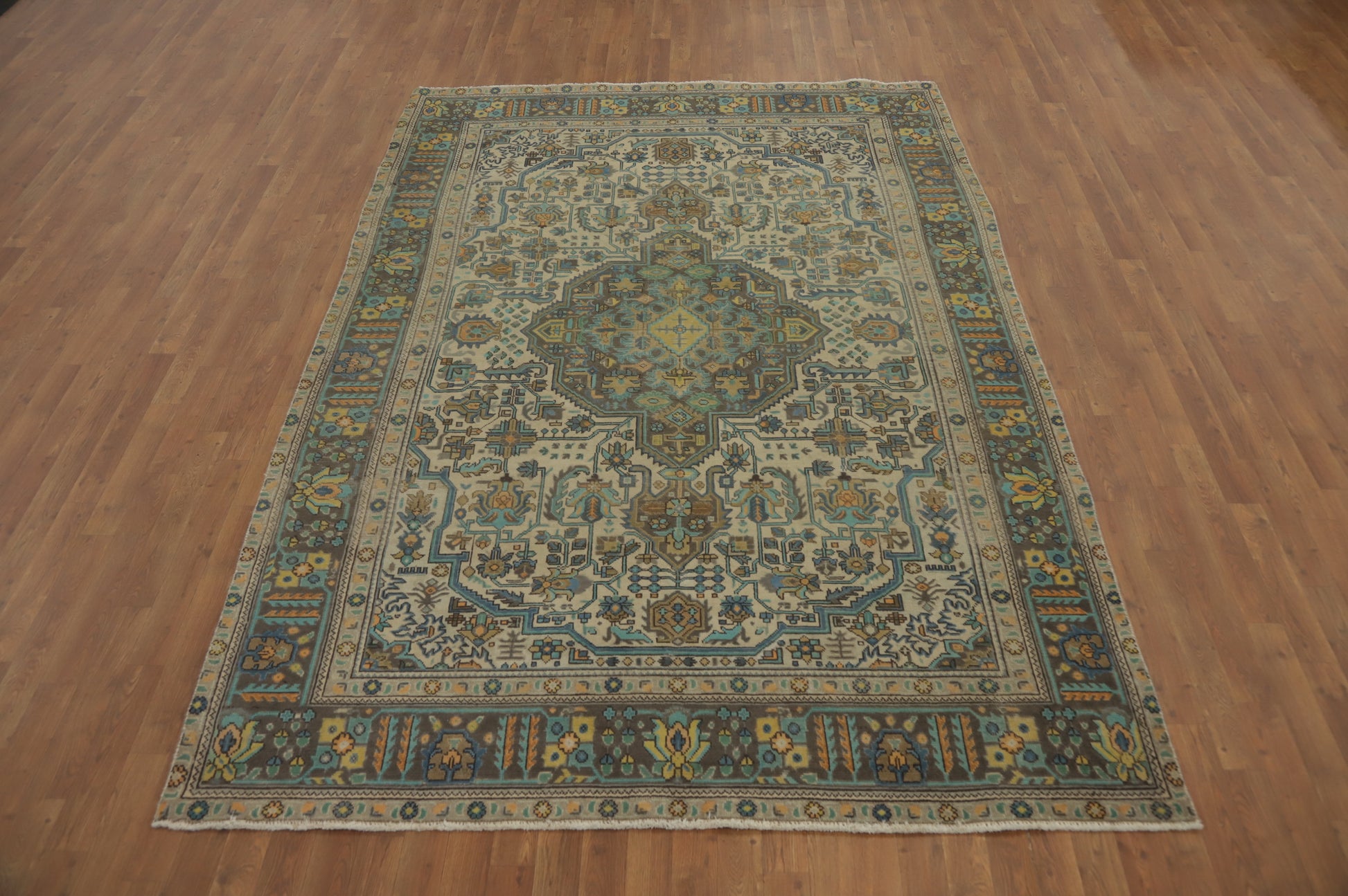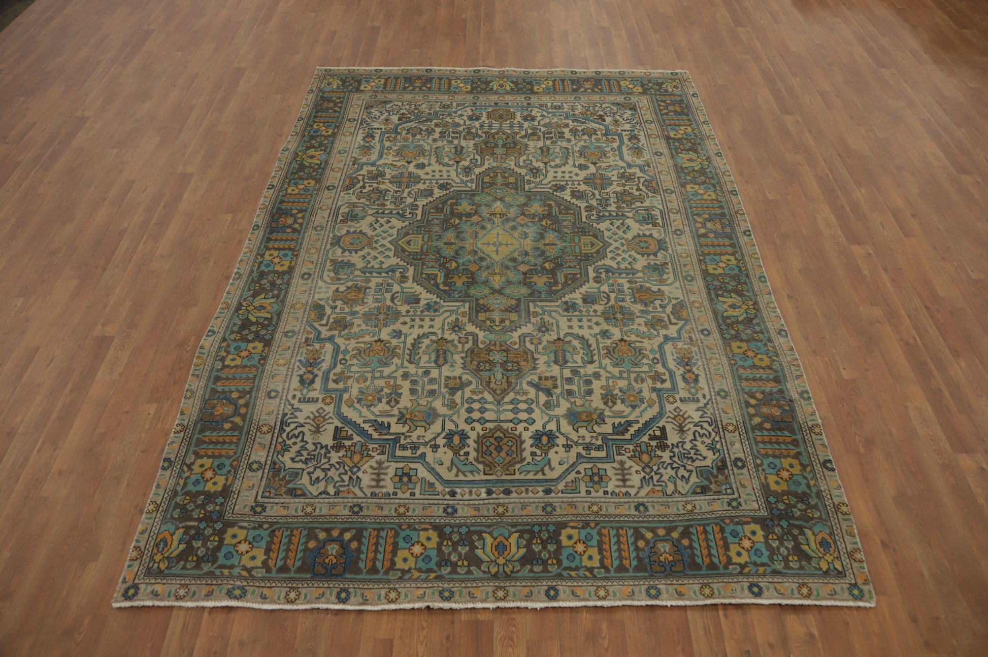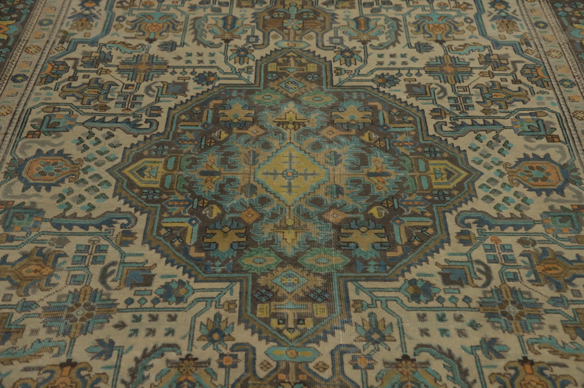 Vintage Wool Geometric Tabriz Persian Area Rug 7x10