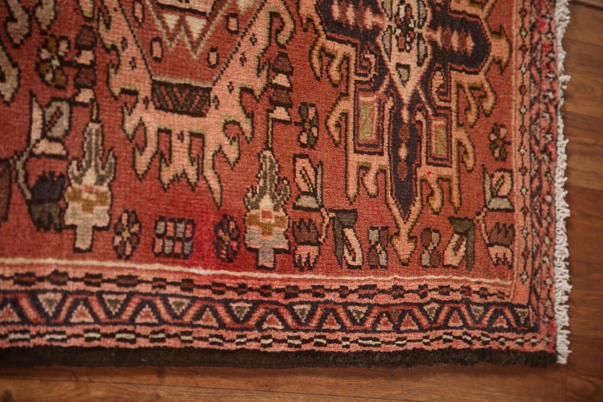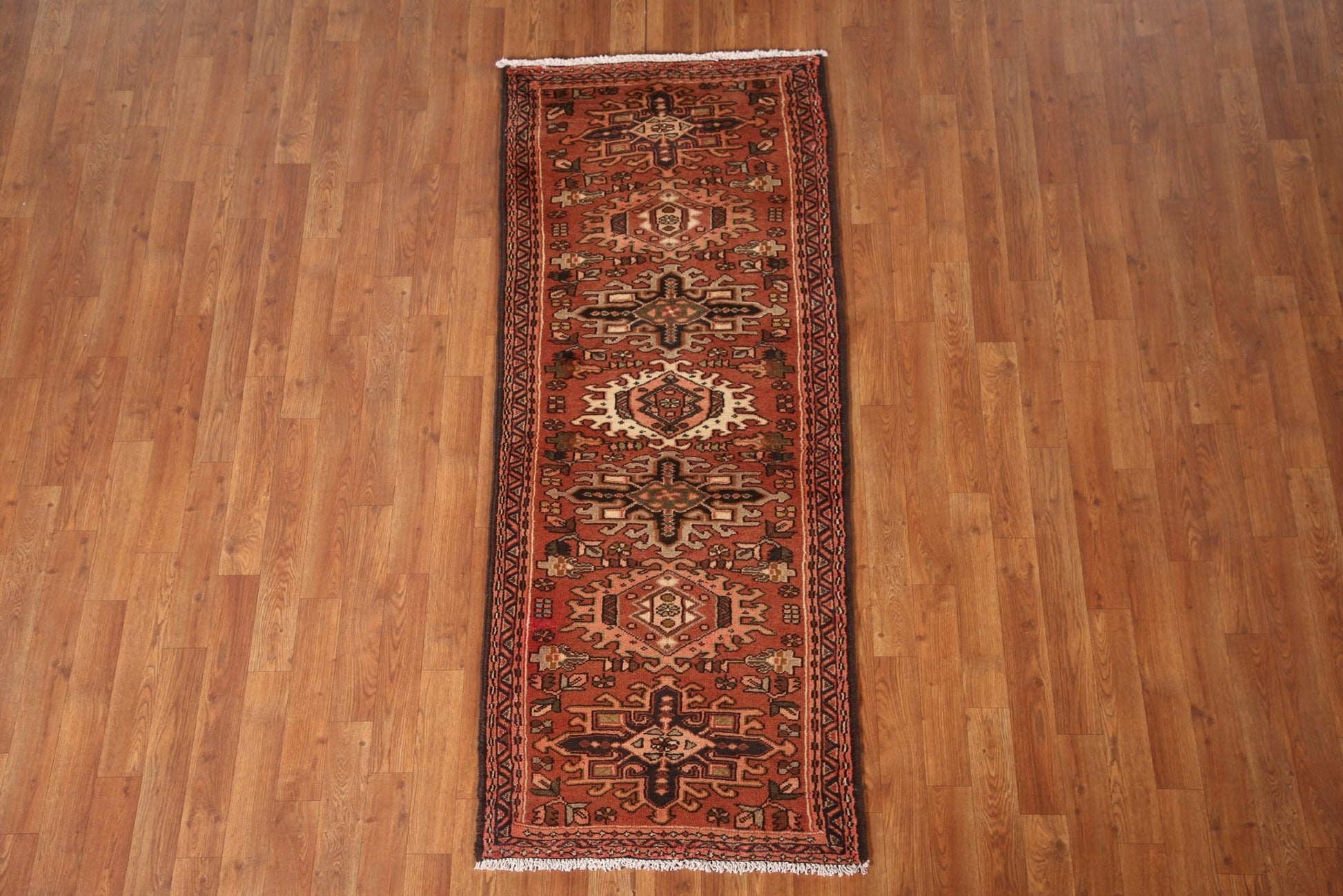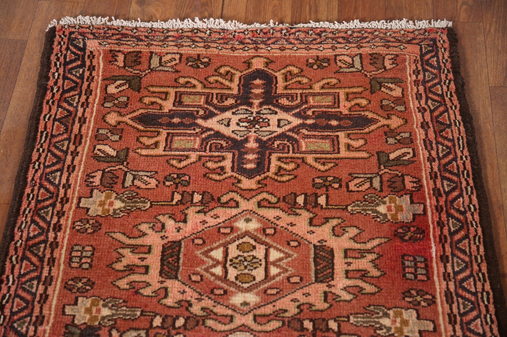 A Beautiful Genuine Persia ( Persia ) Gharajeh rug is Hand Knotted by skillful weavers in Persia ( Persia ) with 100% Wool Material. This rug is in Very Good condition. dimensions are 6' 1'' X 2' 6'' in foot and 185 X 76 in centimeter. the primary color is Oranges & Rust.