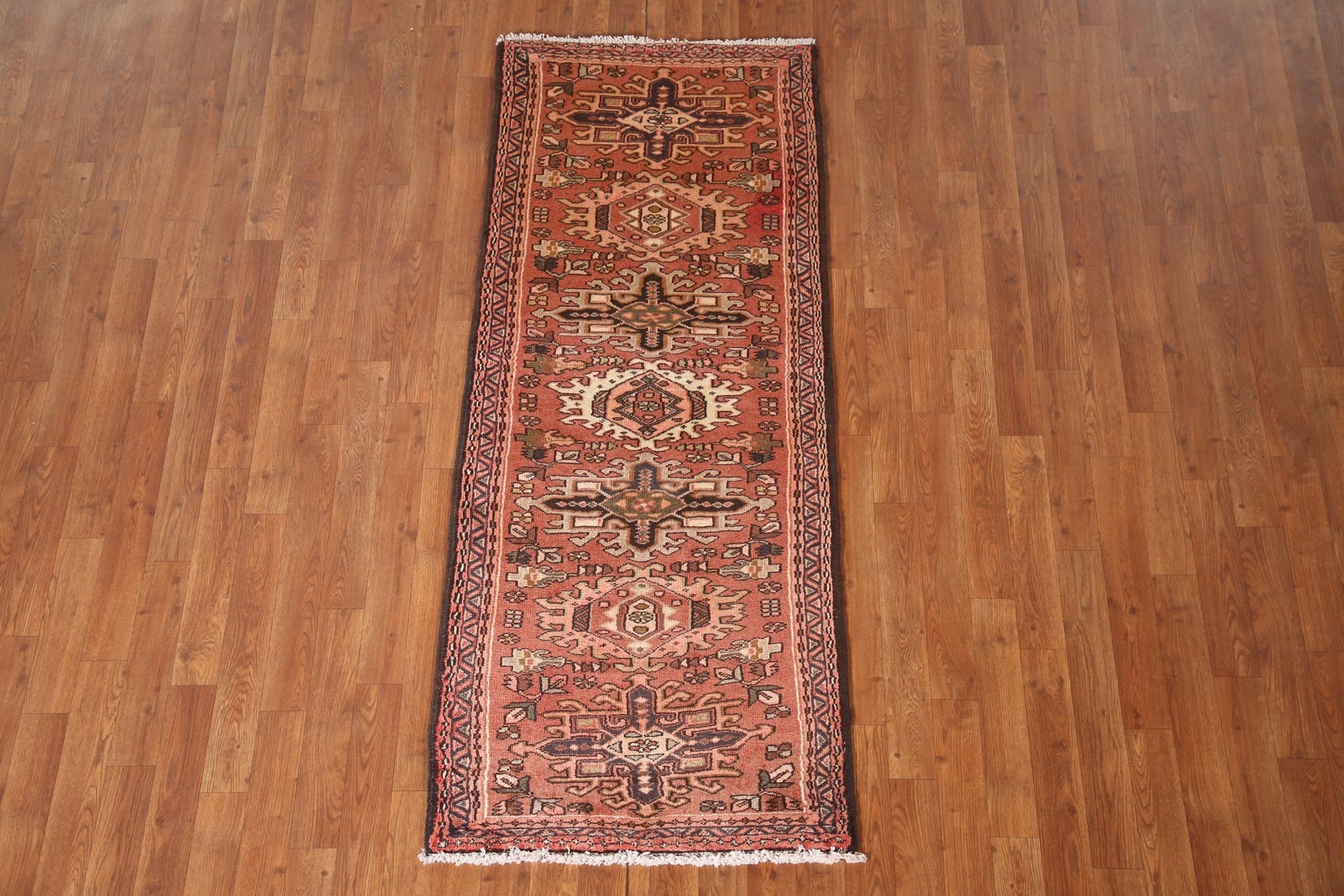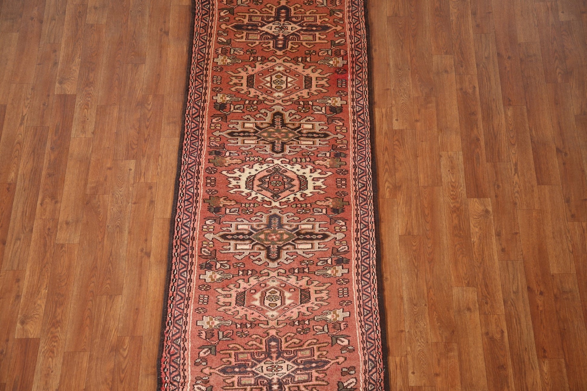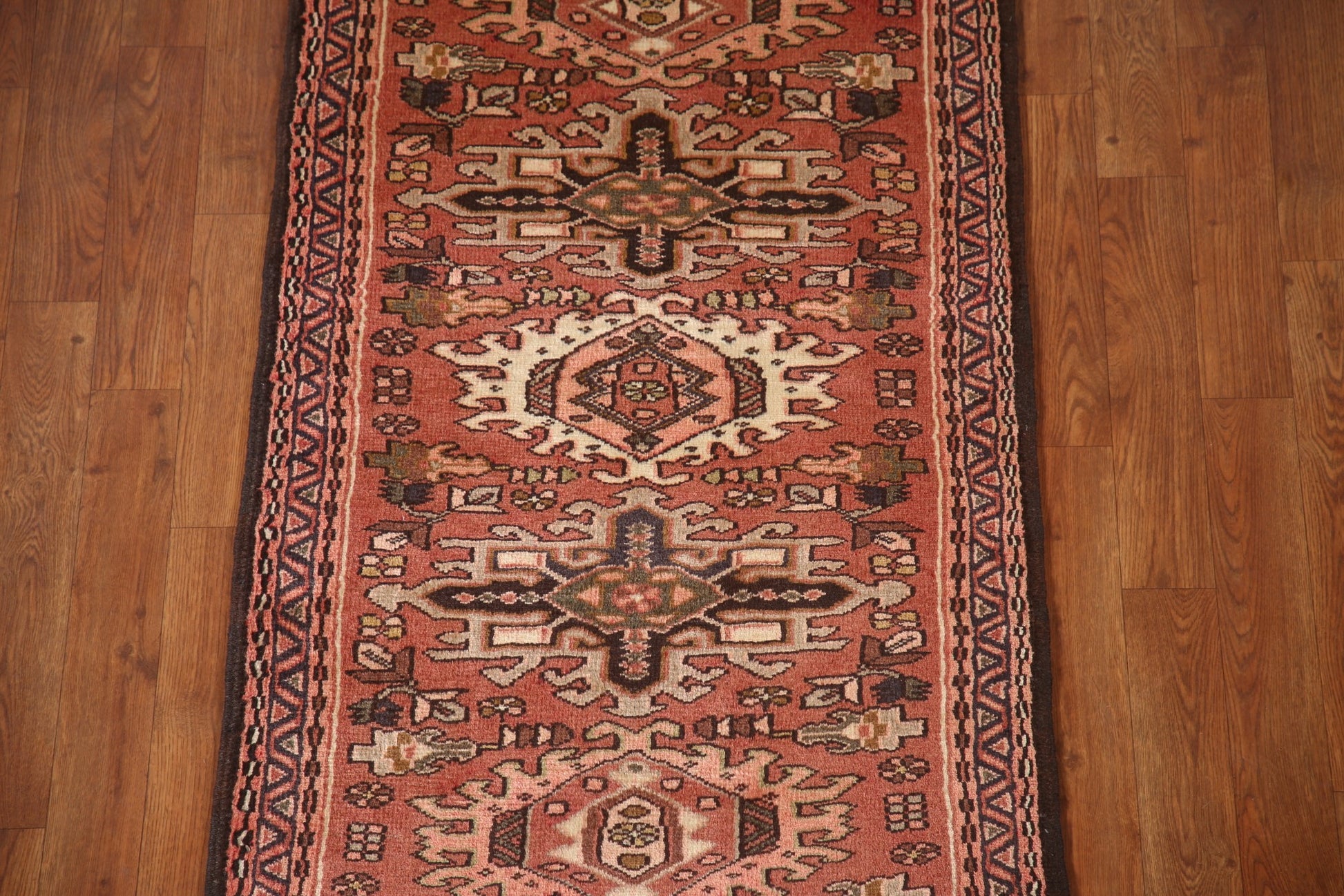 A Beautiful Genuine Persia ( Persia ) Gharajeh rug is Hand Knotted by skillful weavers in Persia ( Persia ) with 100% Wool Material. This rug is in Very Good condition. dimensions are 6' 1'' X 2' 6'' in foot and 185 X 76 in centimeter. the primary color is Oranges & Rust.