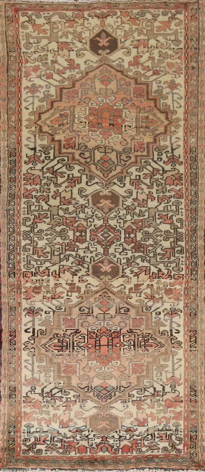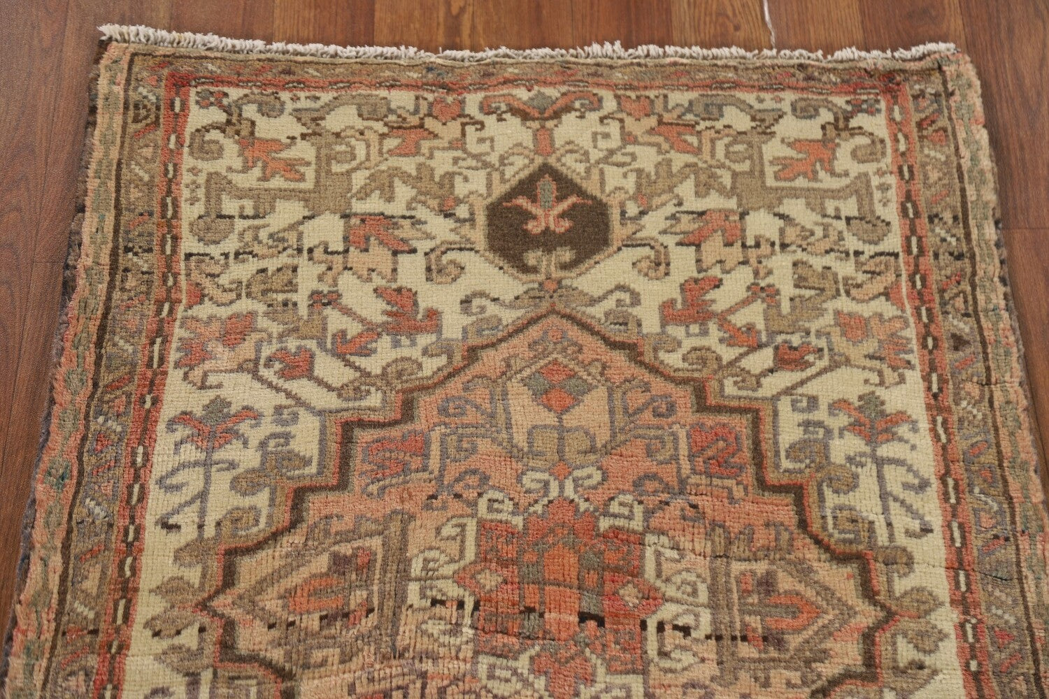 A Beautiful Genuine Persia ( Persia ) Gharajeh rug is Hand Knotted by skillful weavers in Persia ( Persia ) with 100% Wool Material. This rug is in Very Good (Faded Color) condition. dimensions are 6' 4'' X 2' 4'' in foot and 193 X 71 in centimeter. the primary color is Beige & Ivories.