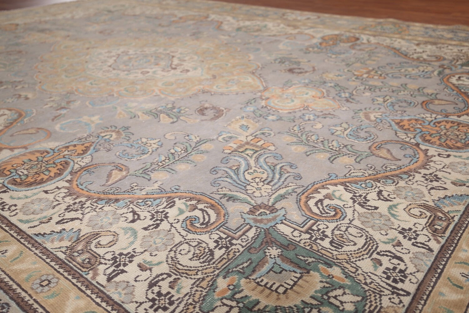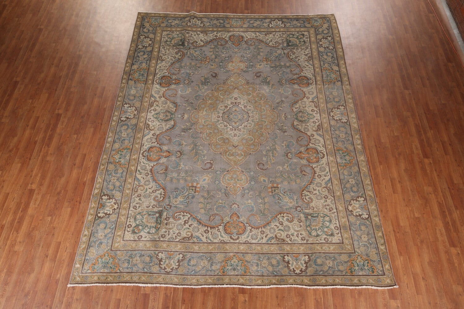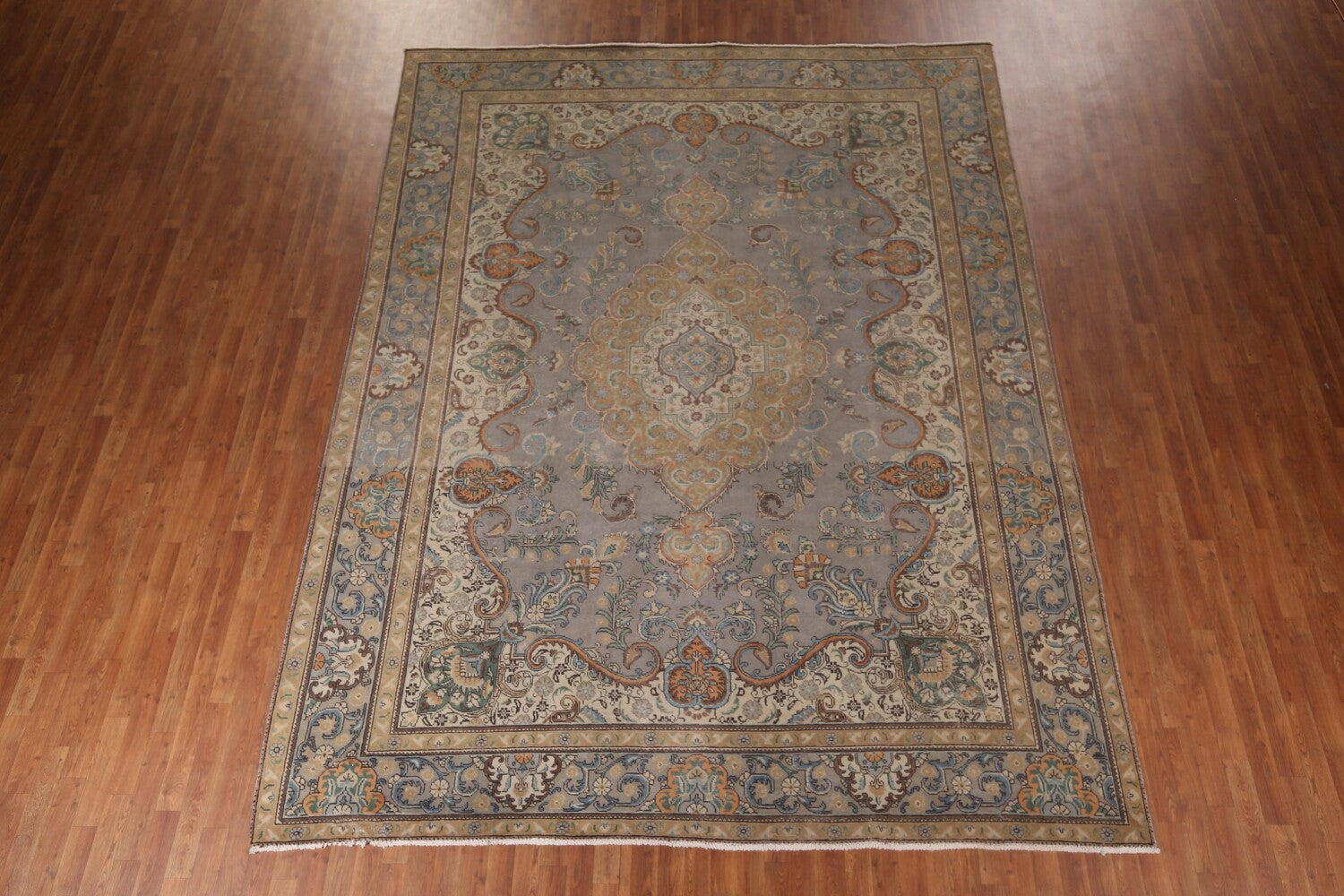 Vintage Wool Gray Tabriz Persian Area Rug 10x13