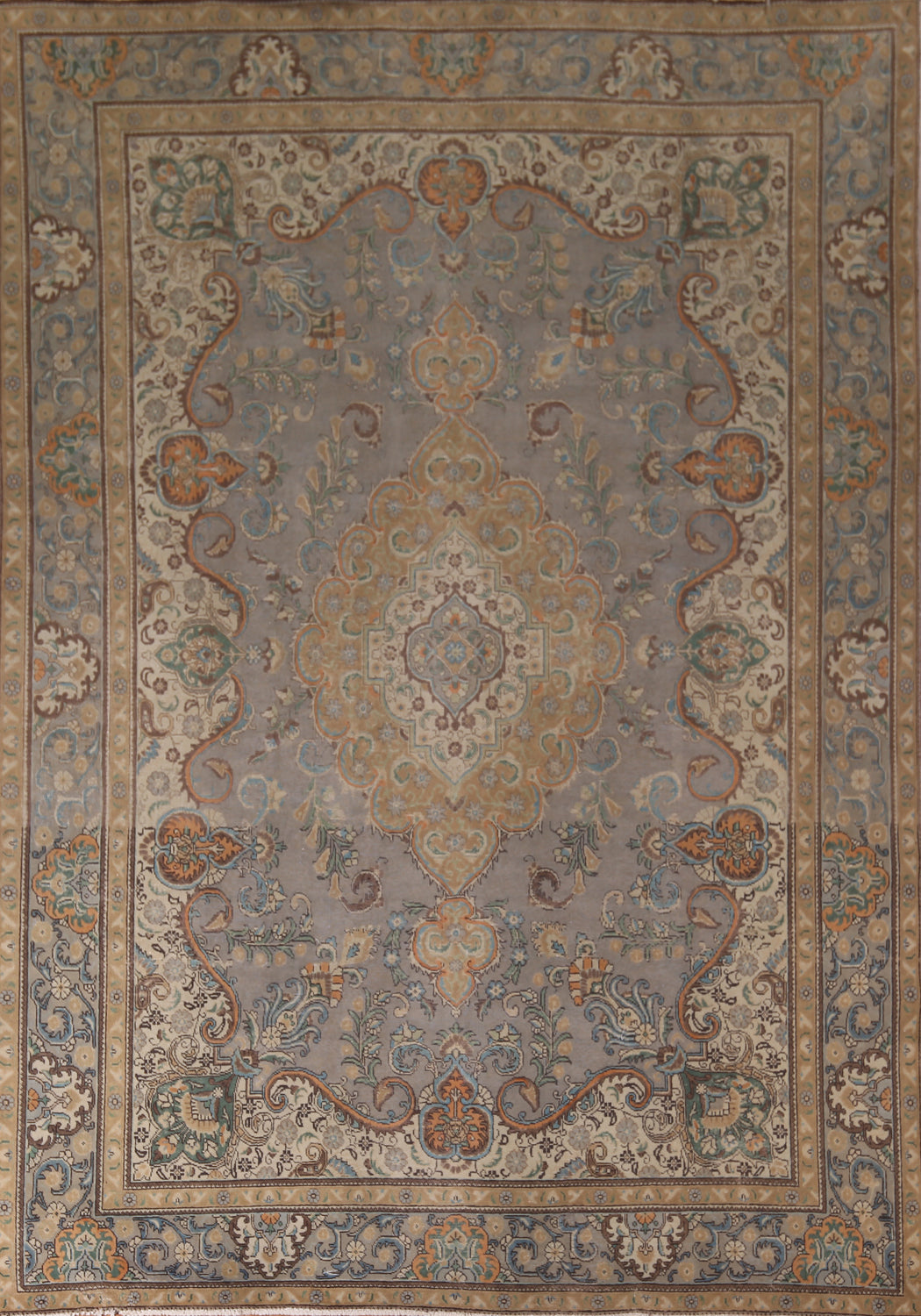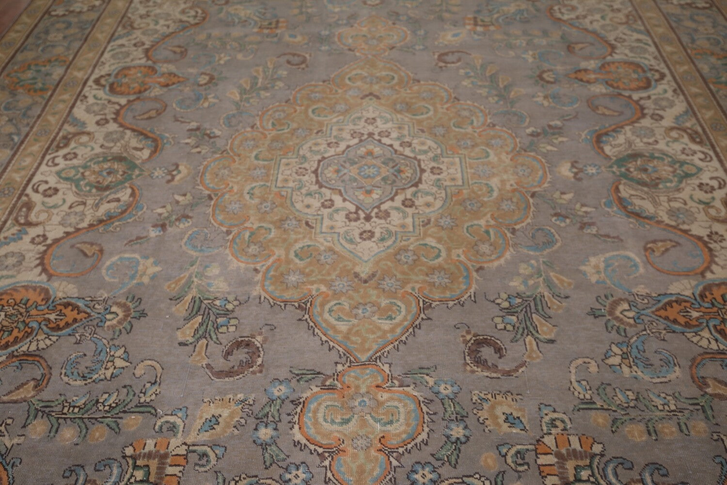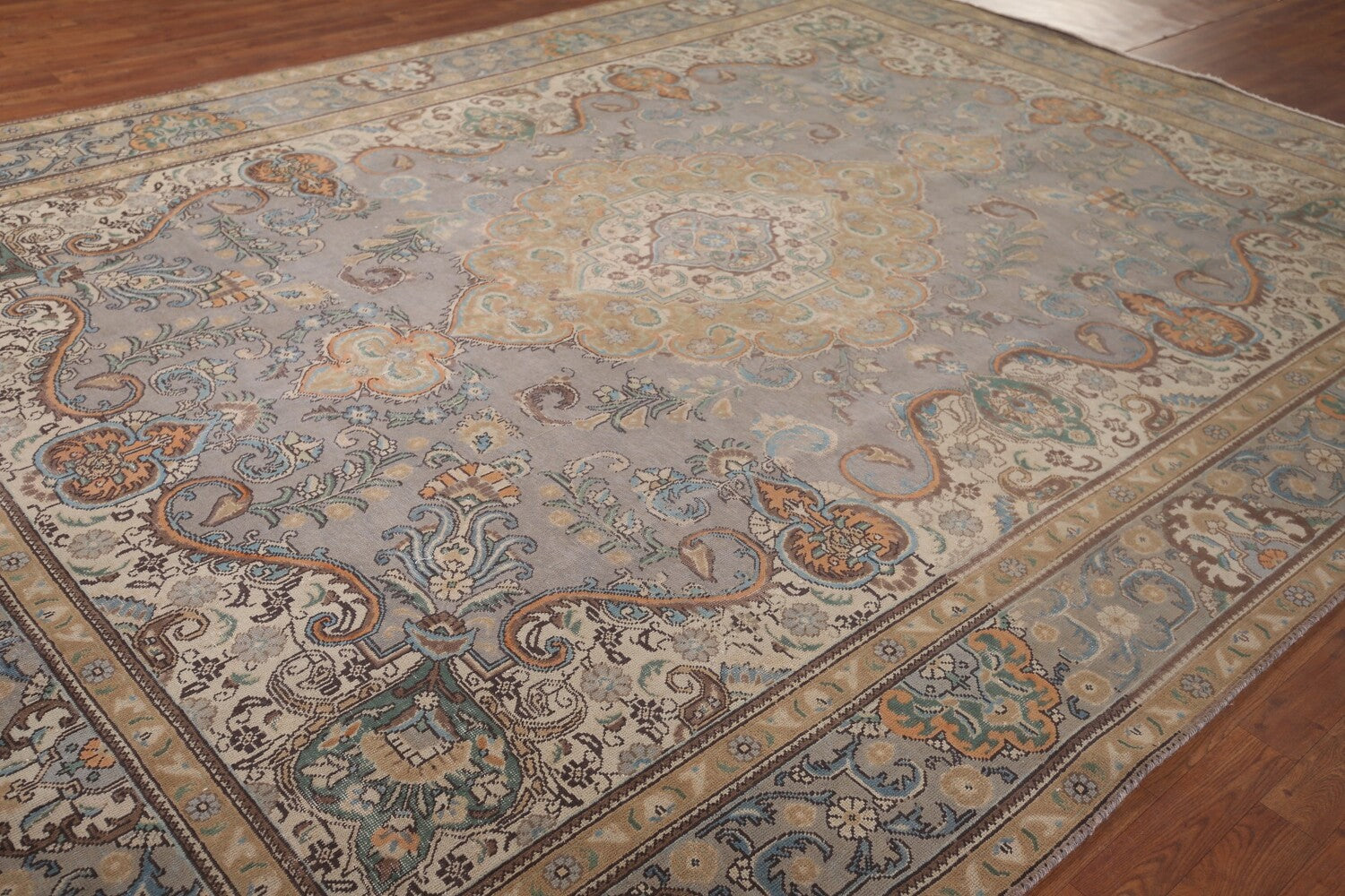 Vintage Wool Gray Tabriz Persian Area Rug 10x13