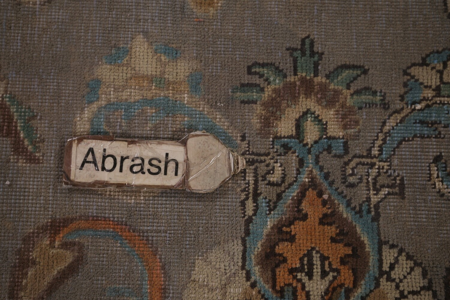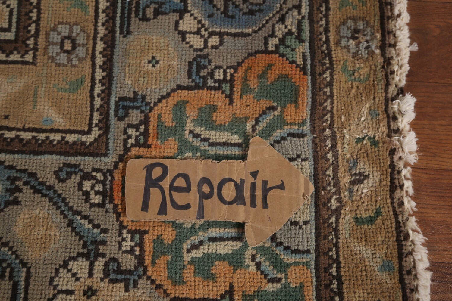 A Beautiful Genuine Persia ( Persia ) Tabriz rug is Hand Knotted by skillful weavers in Persia ( Persia ) with 100% Wool Material. This rug is in Very Good (Evenly Low Pile-Repair-Abrash) condition. dimensions are 12' 7'' X 9' 6'' in foot and 384 X 290 in centimeter. the primary color is Greys & Charcoal.