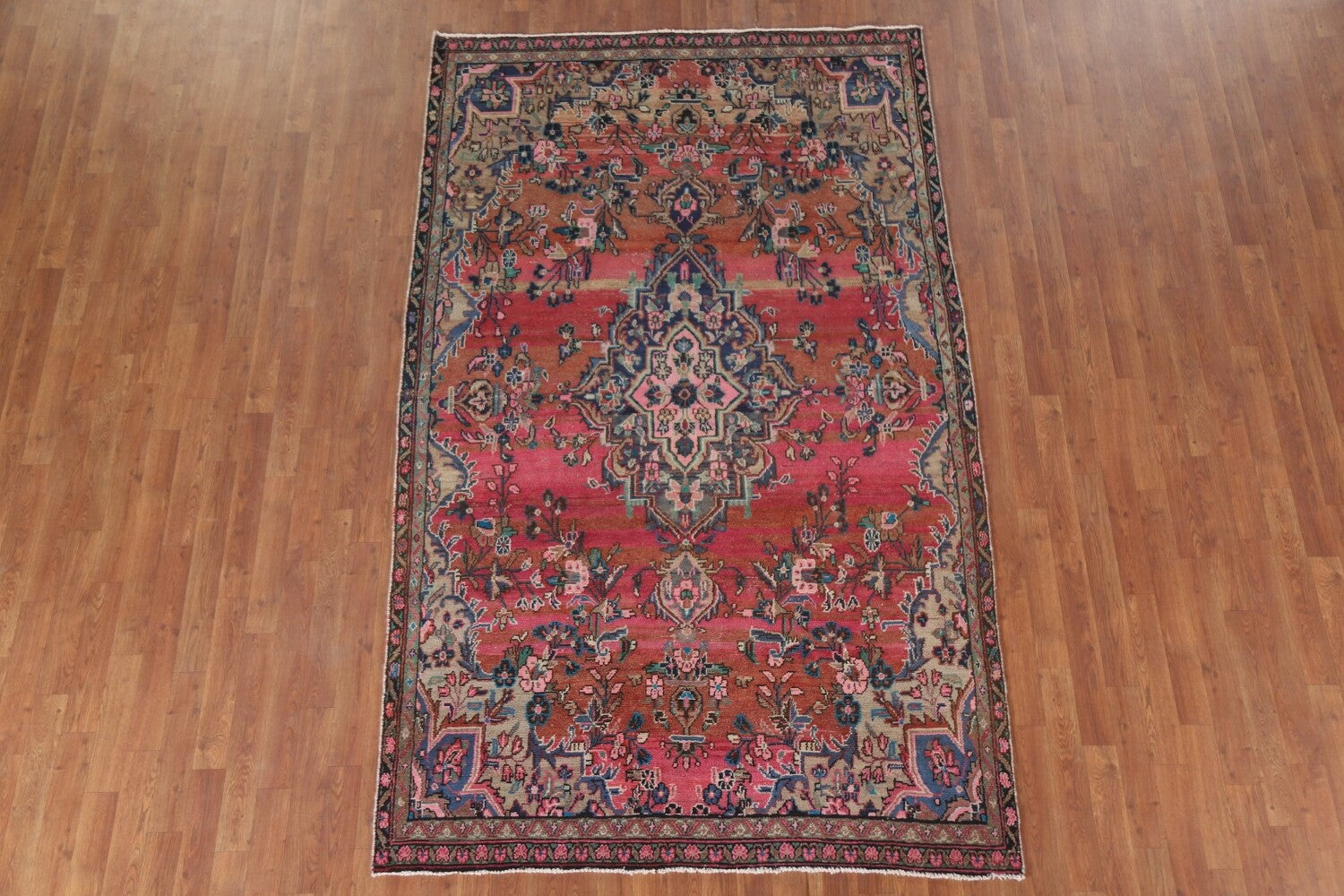 Vintage Wool Hamedan Persian Area Rug 5x9