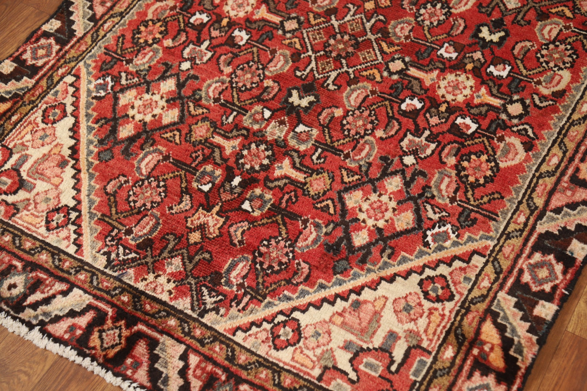 A Beautiful Genuine Persia ( Persia ) Hamedan rug is Hand Knotted by skillful weavers in Persia ( Persia ) with 100% Wool Material. This rug is in Very Good (Evenly Low Pile) condition. dimensions are 10' 3'' X 3' 4'' in foot and 312 X 102 in centimeter. the primary color is Red.