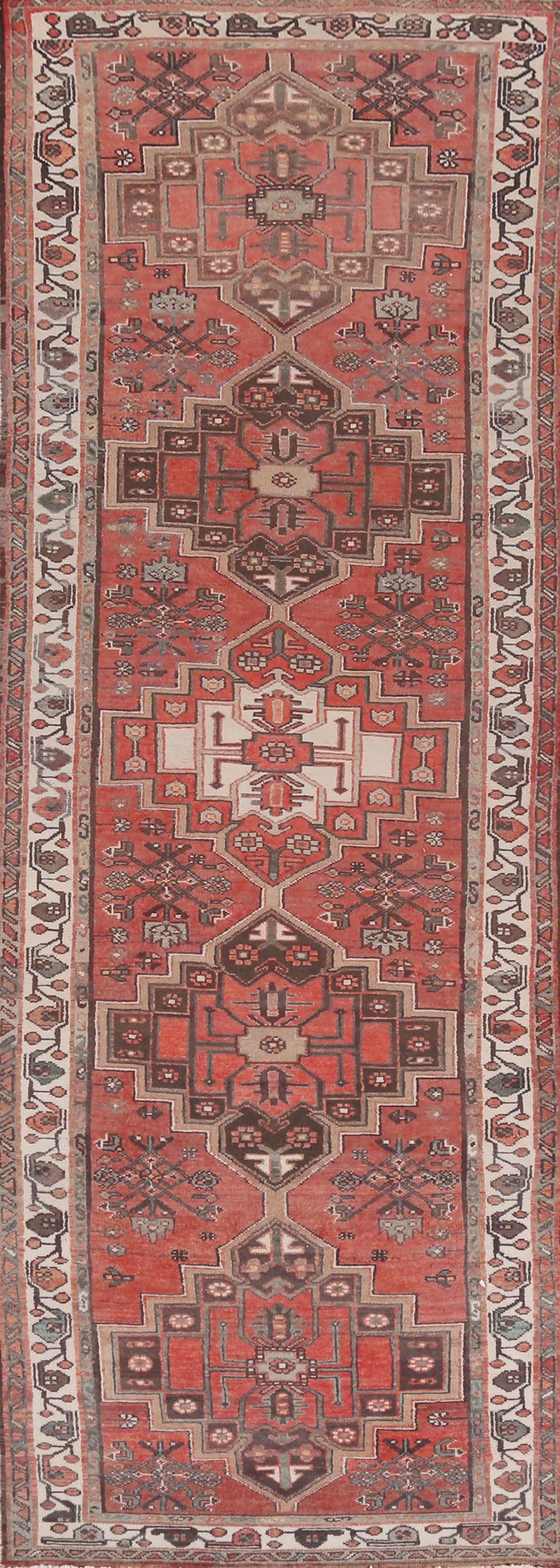 A Beautiful Genuine Persia ( Persia ) Hamedan rug is Hand Knotted by skillful weavers in Persia ( Persia ) with 100% Wool Material. This rug is in Very Good (Evenly Low Pile) condition. dimensions are 11' 2'' X 3' 3'' in foot and 340 X 99 in centimeter. the primary color is Oranges & Rust.