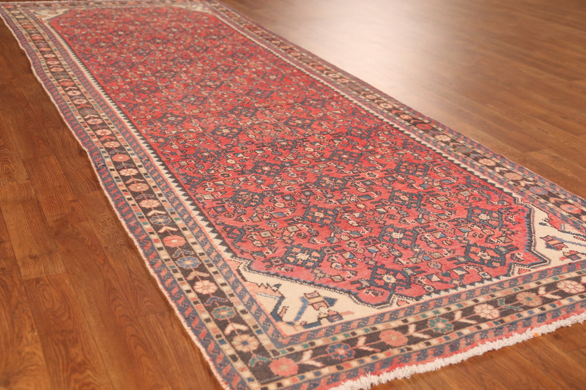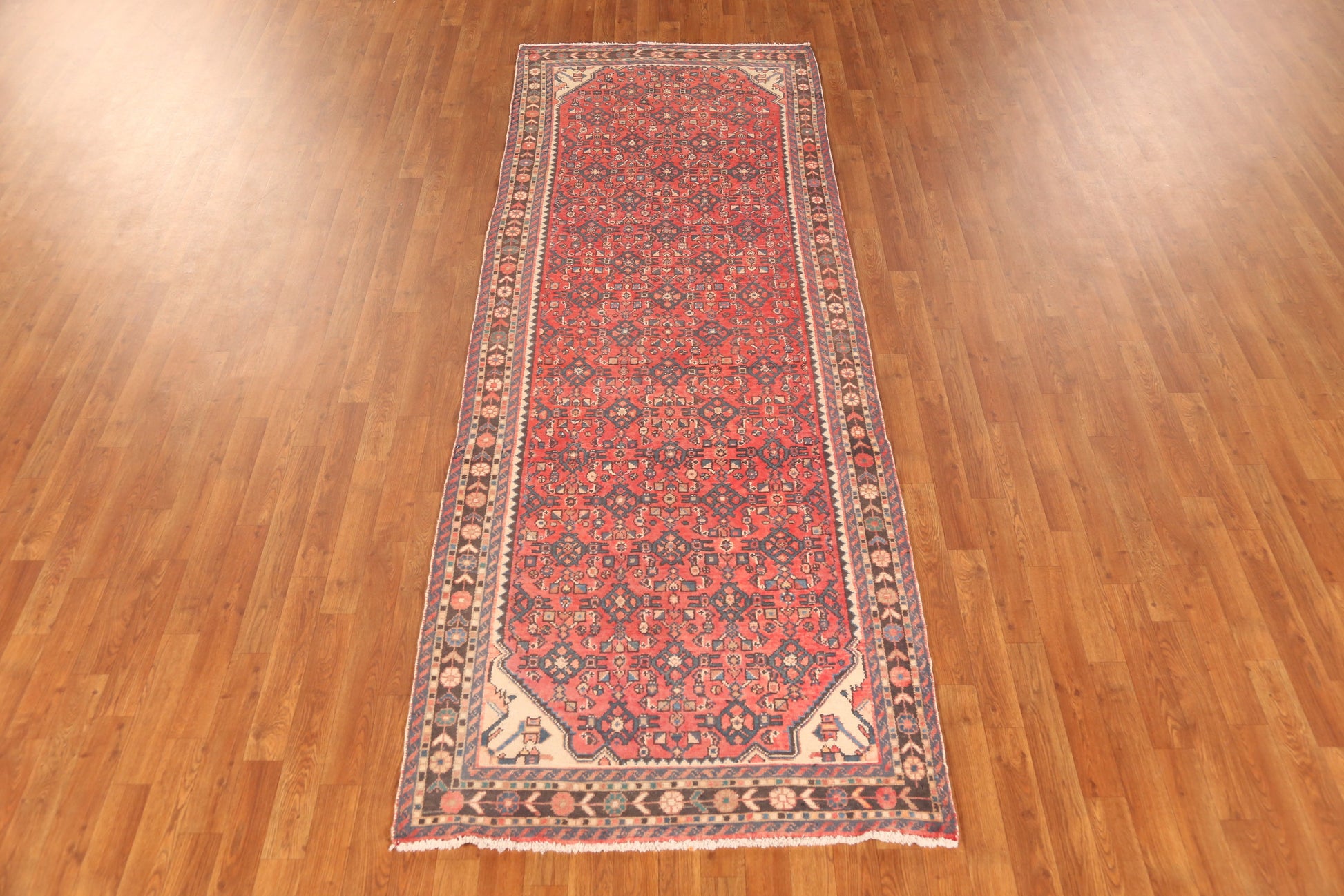 Vintage Wool Hamedan Persian Runner Rug 4x10