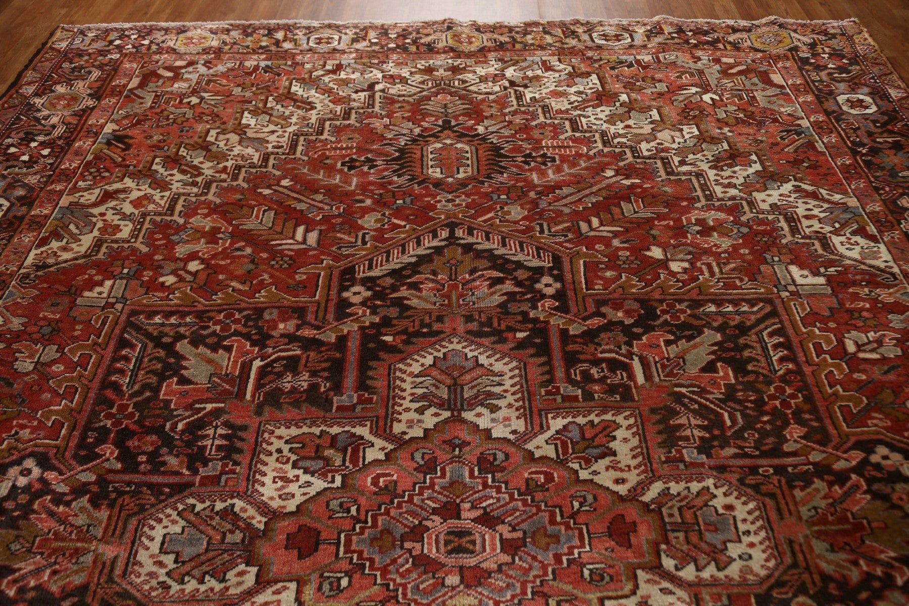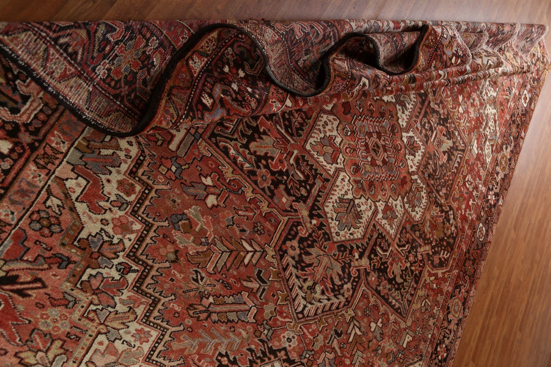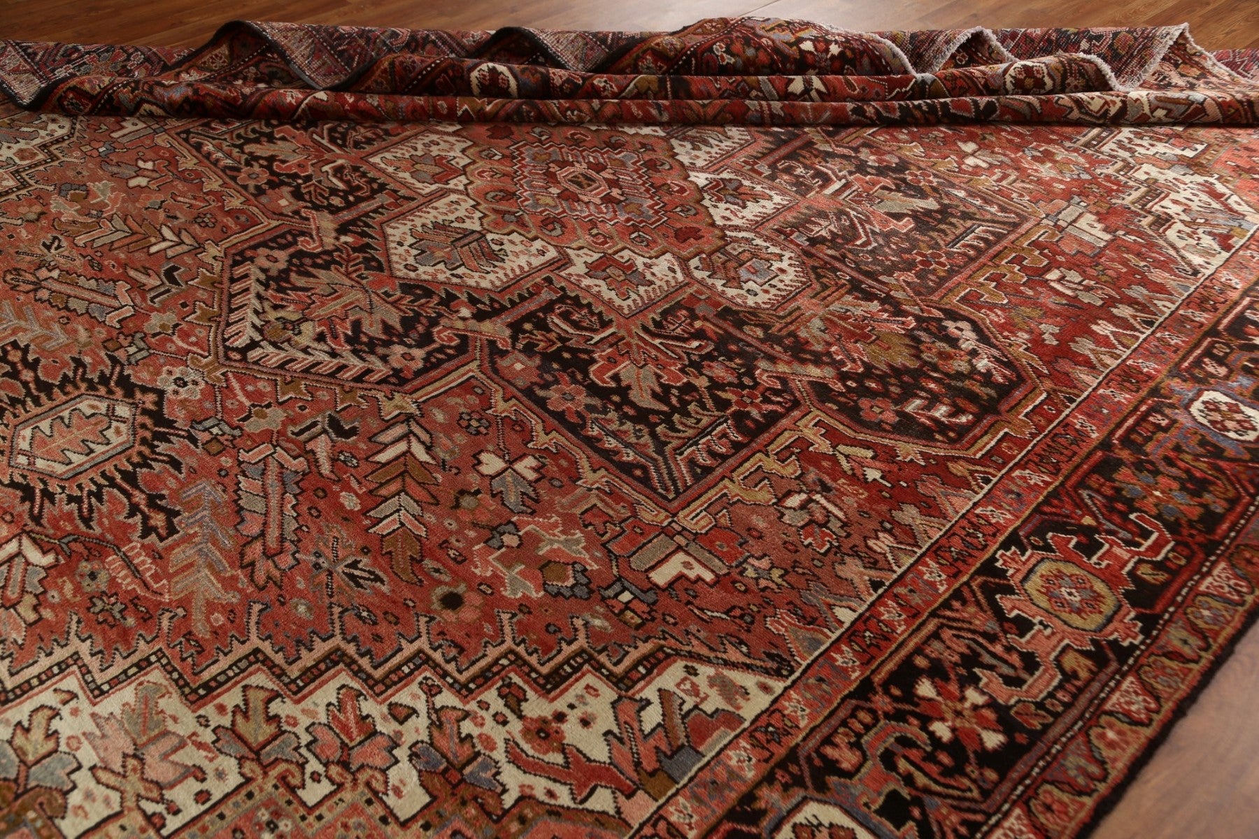 A Beautiful Genuine Persia ( Persia ) Heriz rug is Hand Knotted by skillful weavers in Persia ( Persia ) with 100% Wool Material. This rug is in Very Good condition. dimensions are 12' 9'' X 9' 8'' in foot and 389 X 295 in centimeter. the primary color is Red.