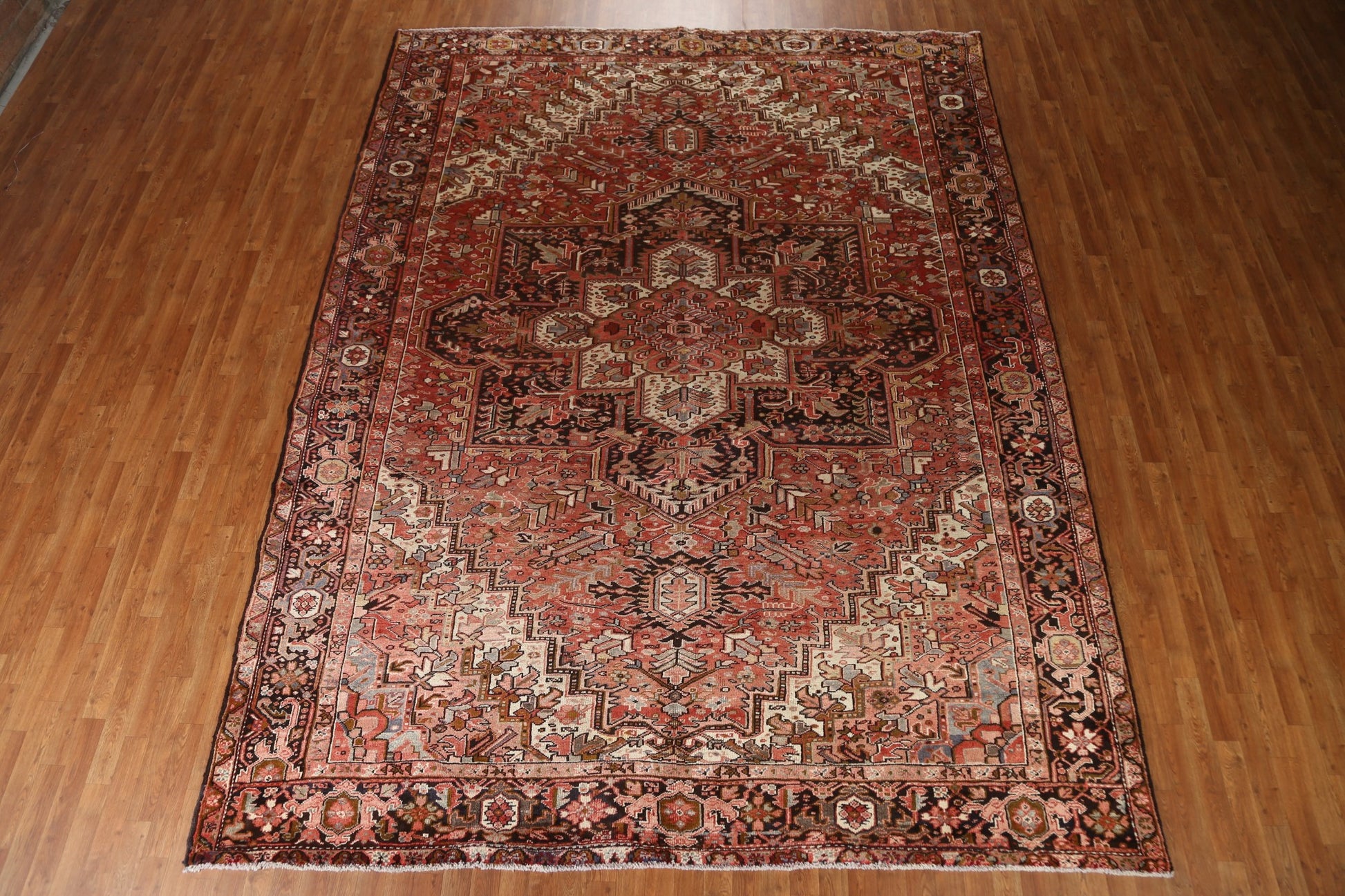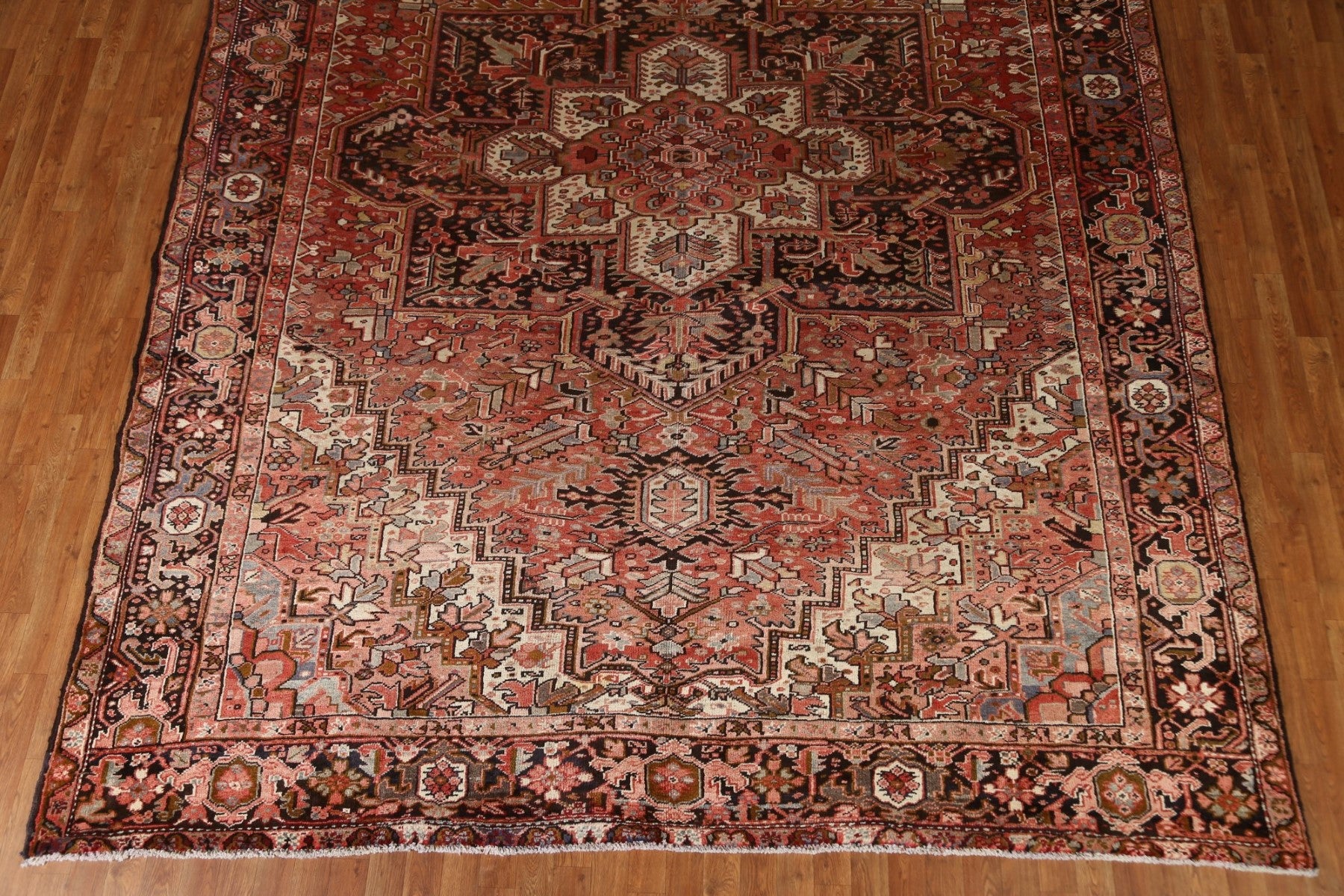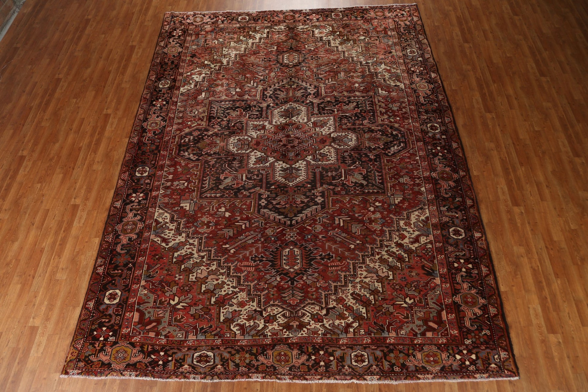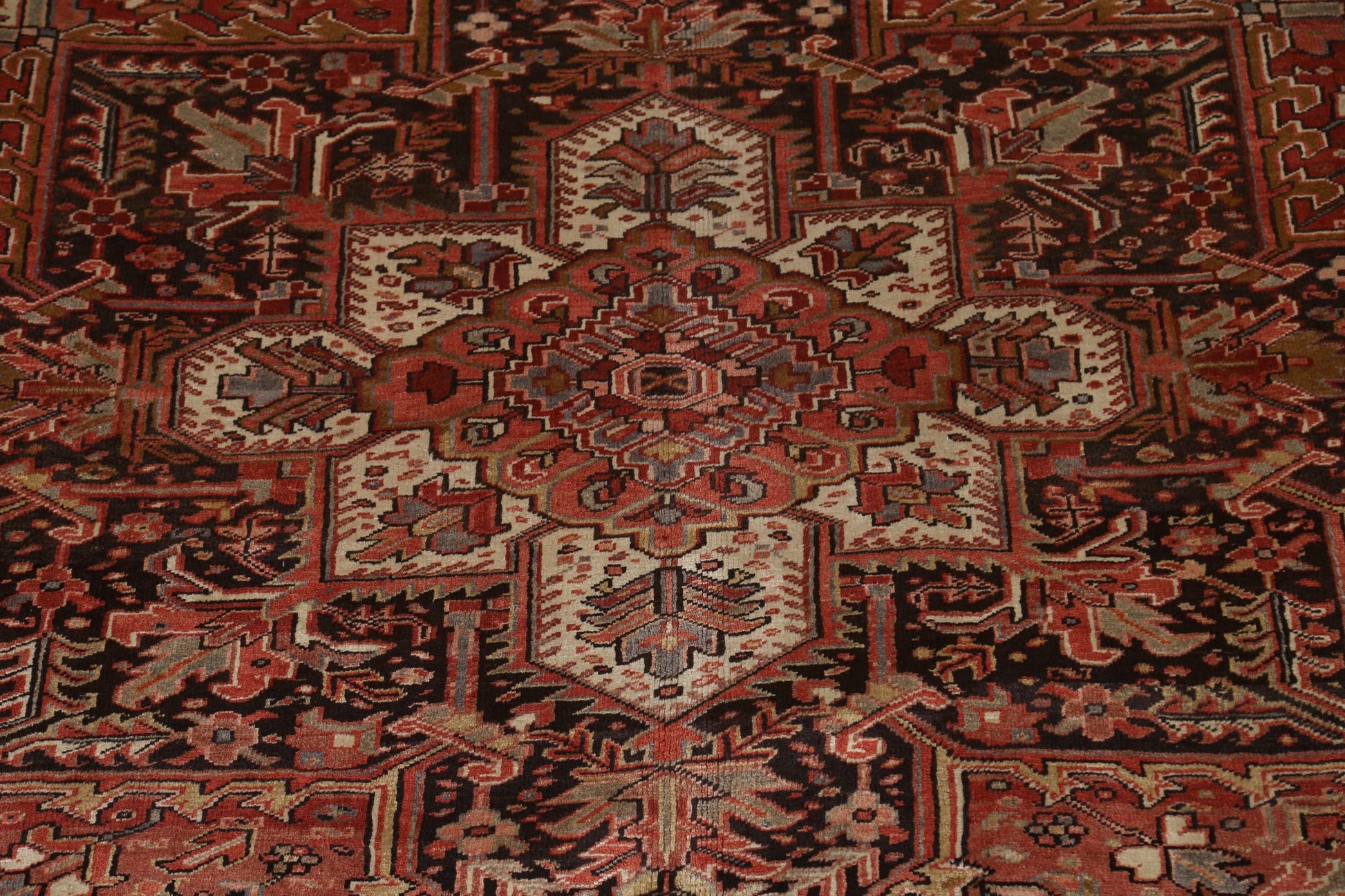 A Beautiful Genuine Persia ( Persia ) Heriz rug is Hand Knotted by skillful weavers in Persia ( Persia ) with 100% Wool Material. This rug is in Very Good condition. dimensions are 12' 9'' X 9' 8'' in foot and 389 X 295 in centimeter. the primary color is Red.