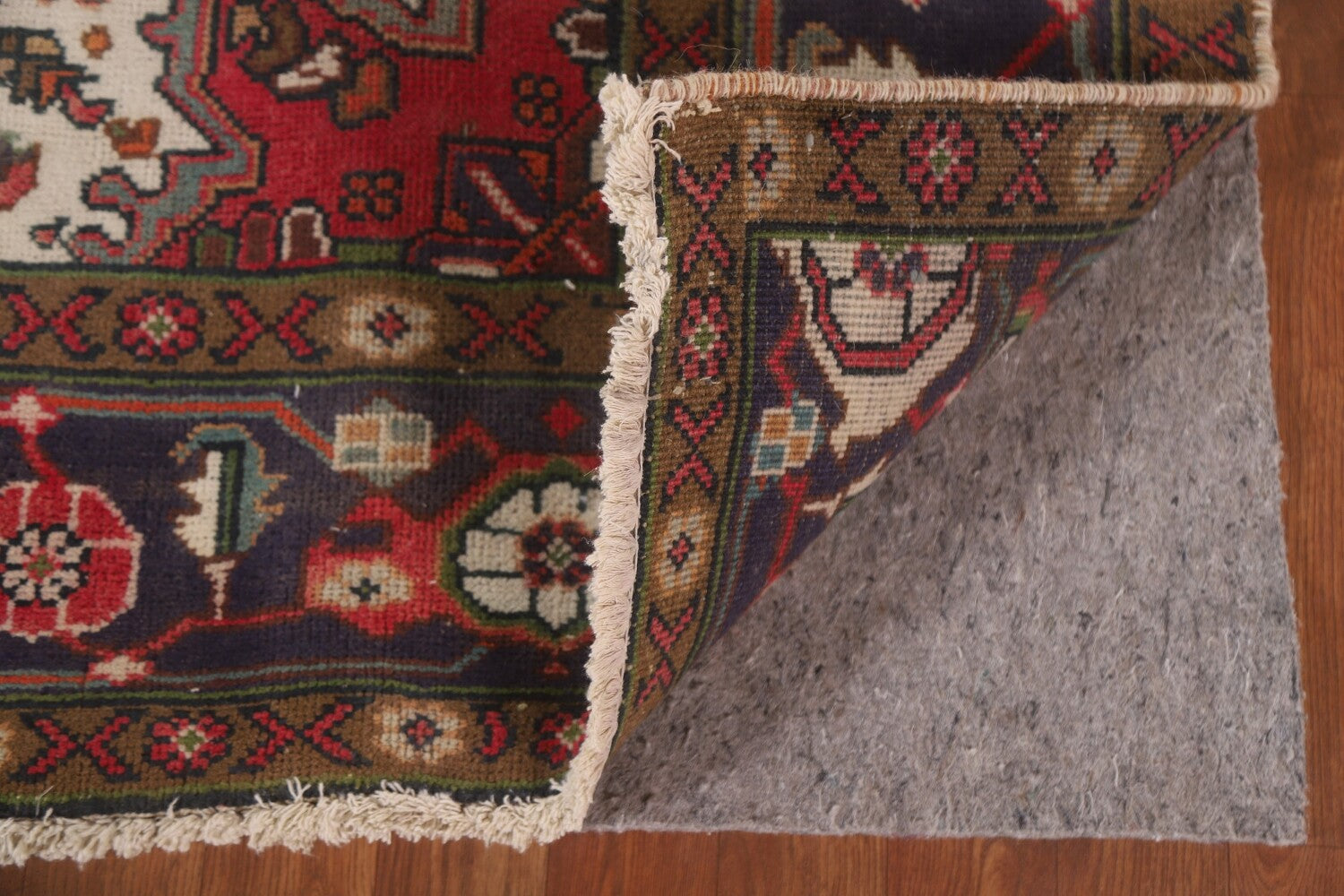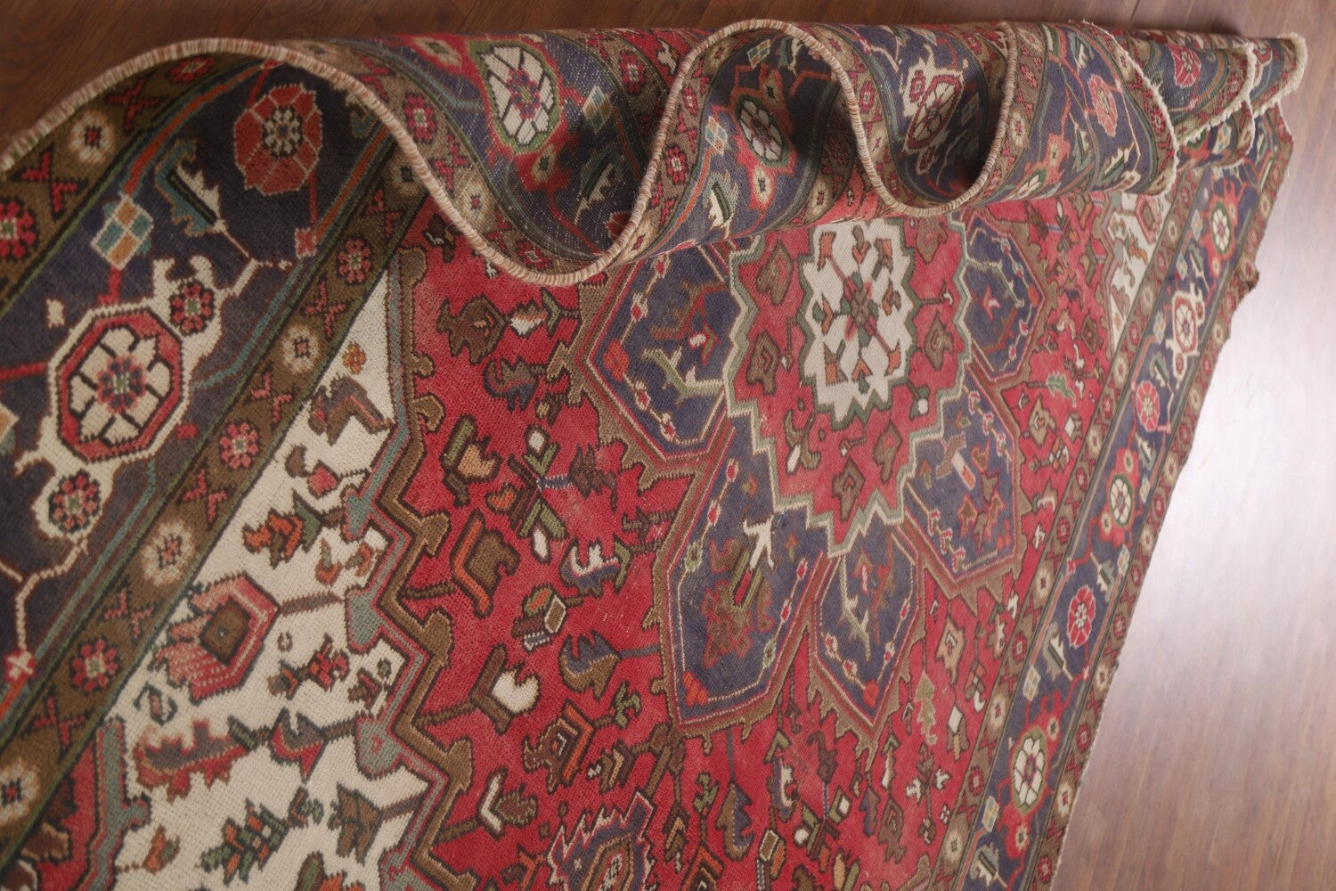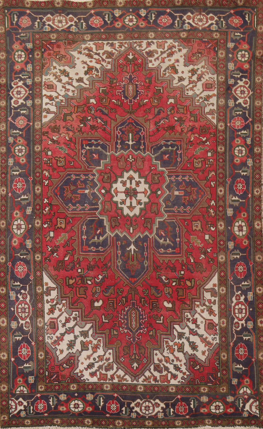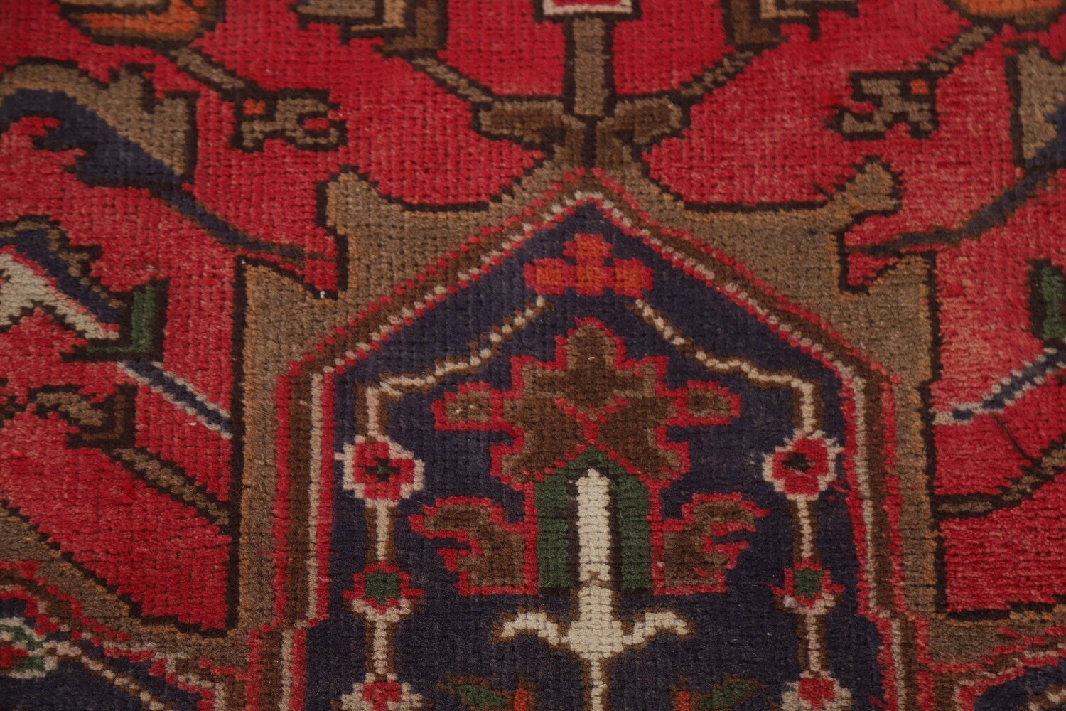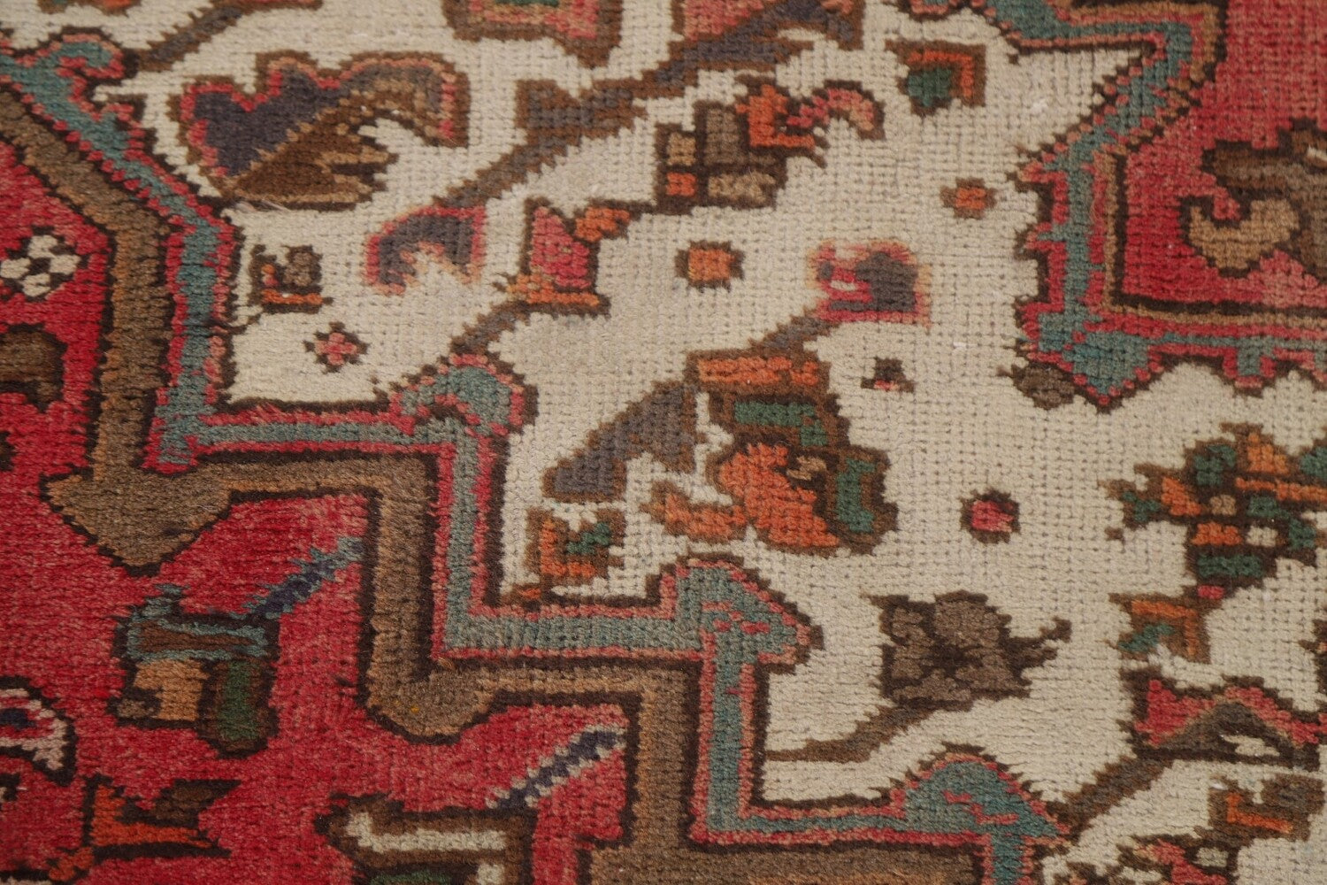 A Beautiful Genuine Persia ( Persia ) Heriz rug is Hand Knotted by skillful weavers in Persia ( Persia ) with 100% Wool Material. This rug is in Very Good (Evenly Low Pile) condition. dimensions are 9' 6'' X 6' 3'' in foot and 290 X 191 in centimeter. the primary color is Red.