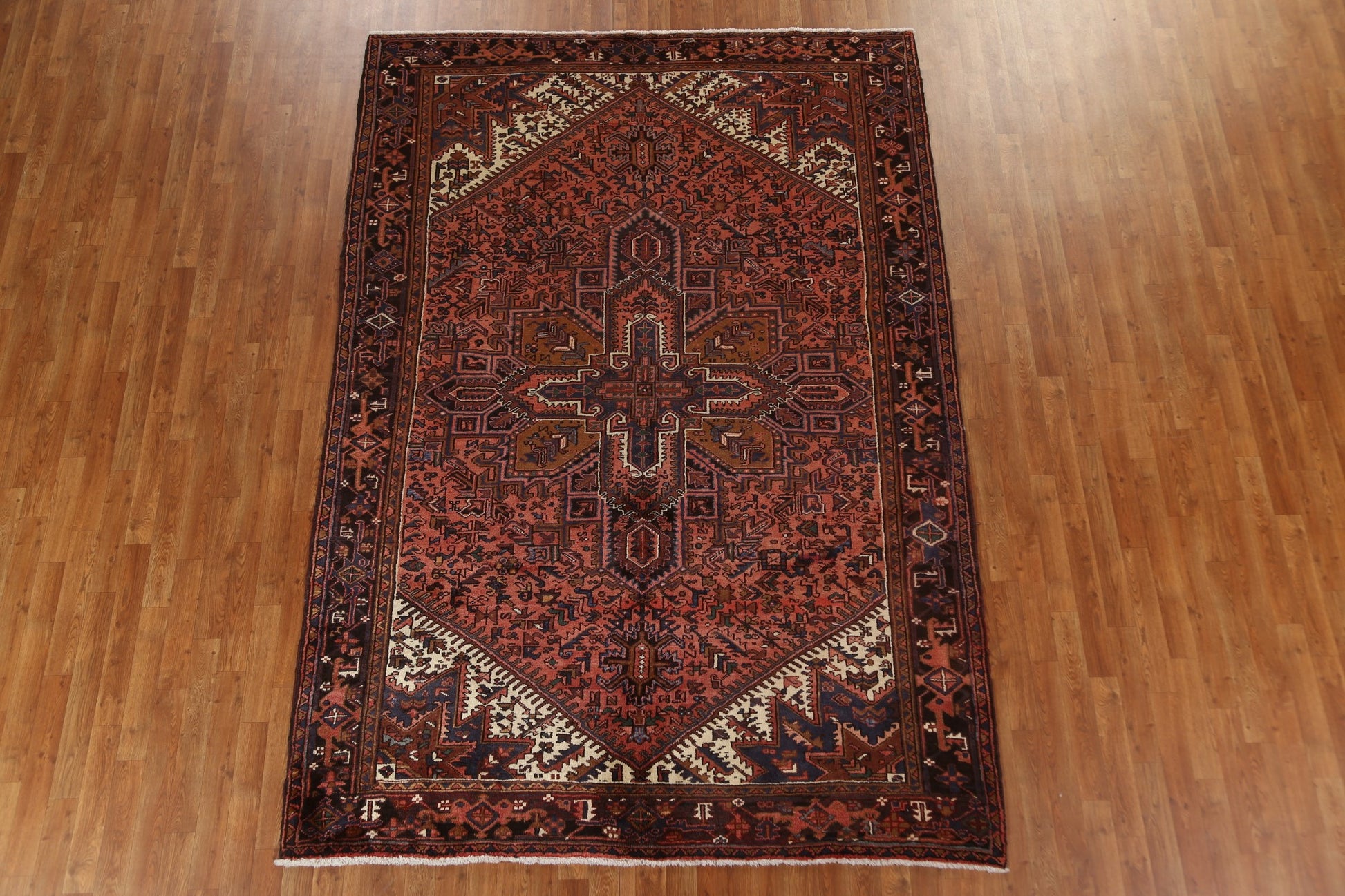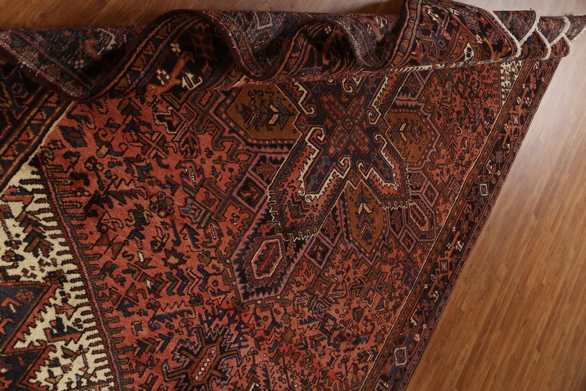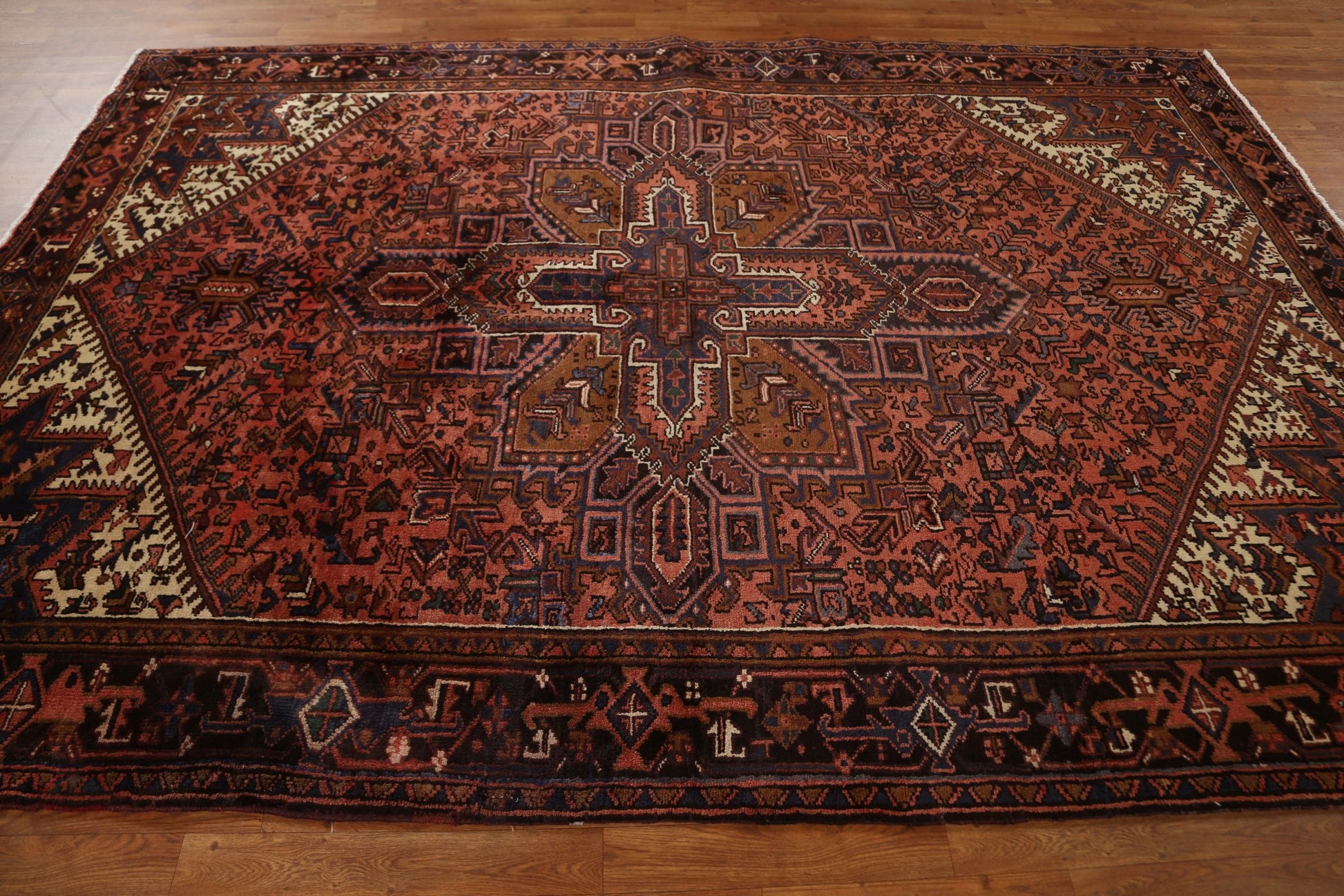 A Beautiful Genuine Persia ( Persia ) Heriz rug is Hand Knotted by skillful weavers in Persia ( Persia ) with 100% Wool Material. This rug is in Very Good condition. dimensions are 9' 9'' X 6' 9'' in foot and 297 X 206 in centimeter. the primary color is Coral.