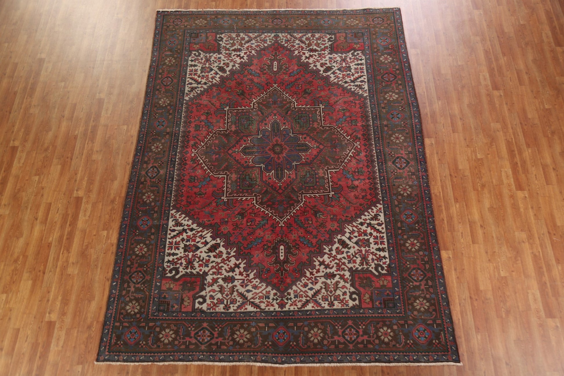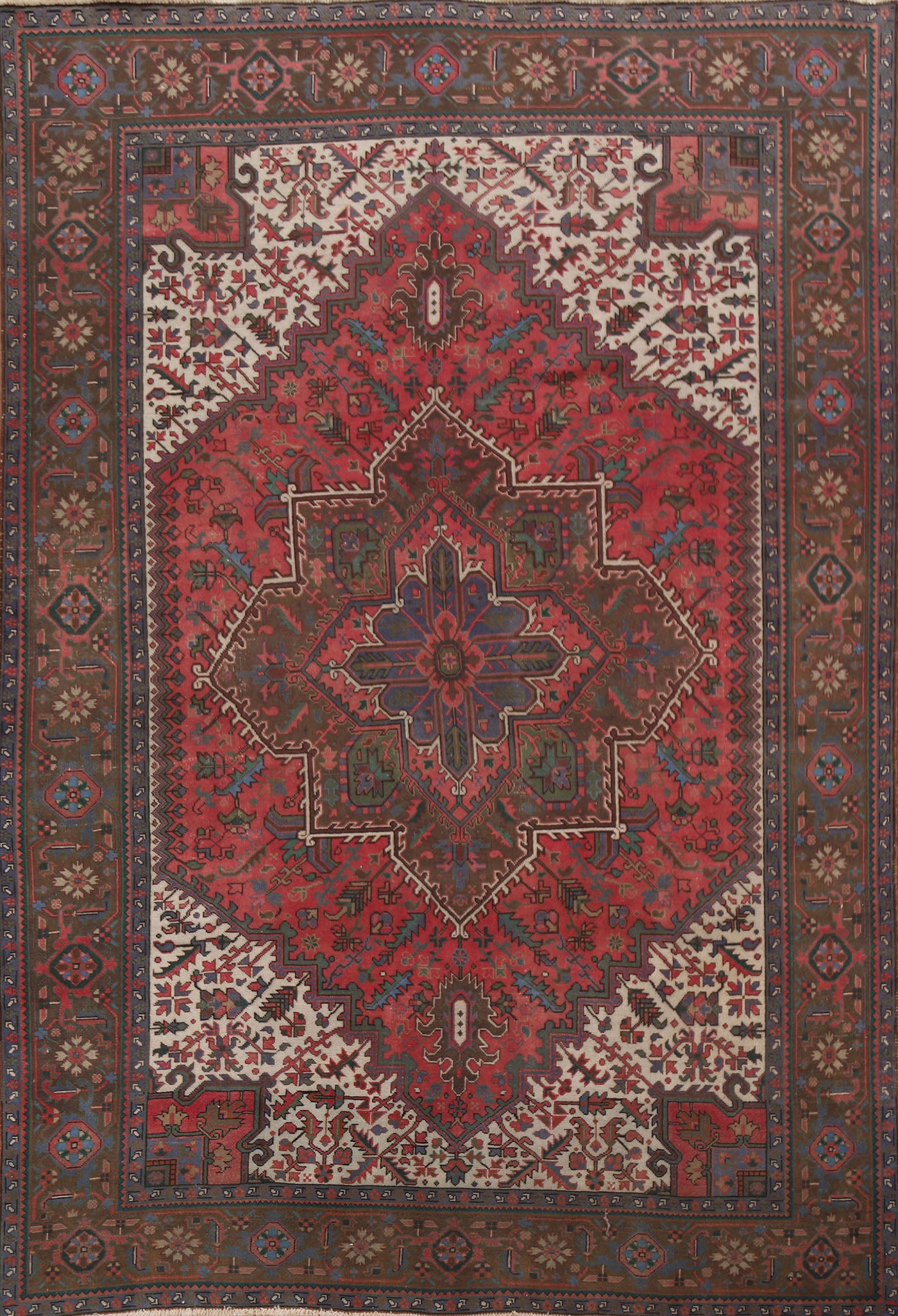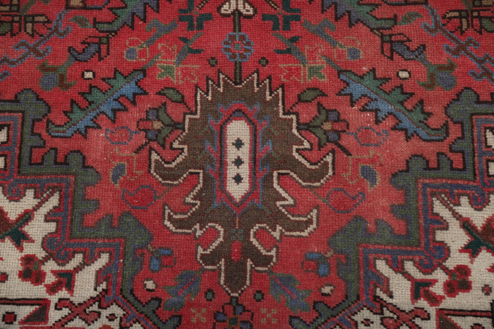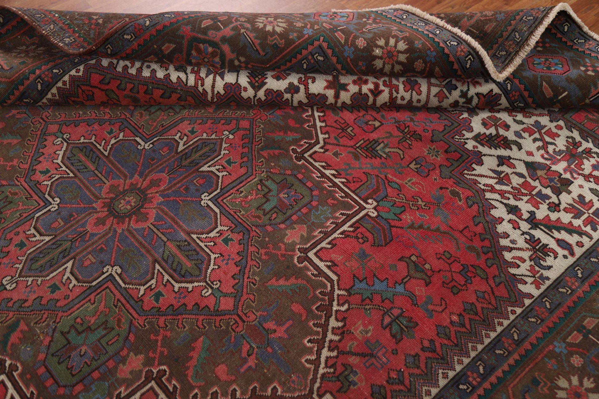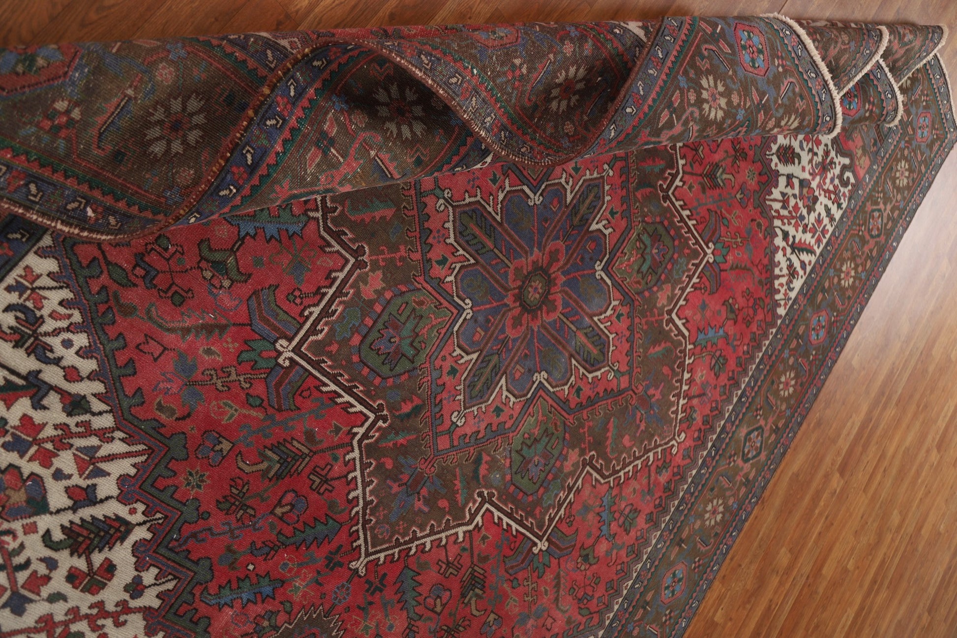 A Beautiful Genuine Persia ( Persia ) Heriz rug is Hand Knotted by skillful weavers in Persia ( Persia ) with 100% Wool Material. This rug is in Very Good ( Low Pile ) condition. dimensions are 11' 0'' X 8' 0'' in foot and 335 X 244 in centimeter. the primary color is Pink.