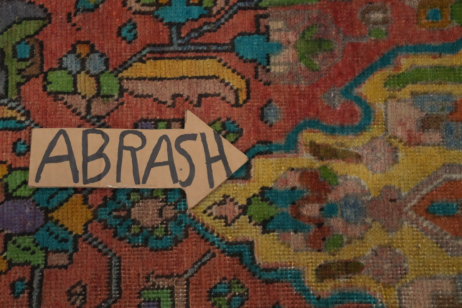 A Beautiful Genuine Persia ( Persia ) Heriz rug is Hand Knotted by skillful weavers in Persia ( Persia ) with 100% Wool Material. This rug is in Very Good (Evenly Low Pile-Abrash-Small Repair) condition. dimensions are 12' 5'' X 3' 4'' in foot and 378 X 102 in centimeter. the primary color is Oranges & Rust.