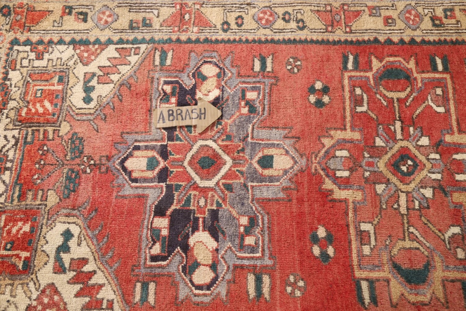 A Beautiful Genuine Persia ( Persia ) Heriz rug is Hand Knotted by skillful weavers in Persia ( Persia ) with 100% Wool Material. This rug is in Very Good (Abrash) condition. dimensions are 10' 2'' X 3' 6'' in foot and 310 X 107 in centimeter. the primary color is Red.