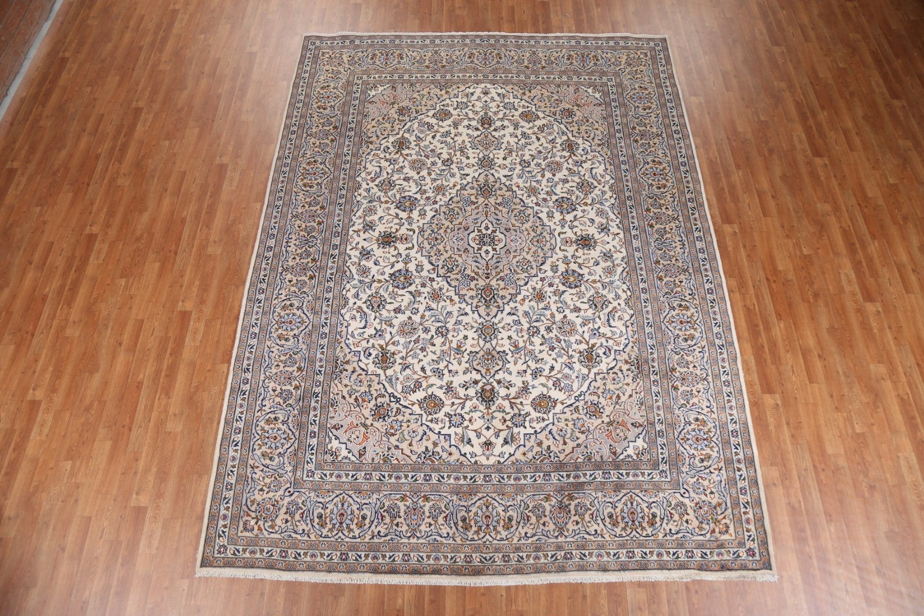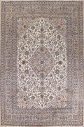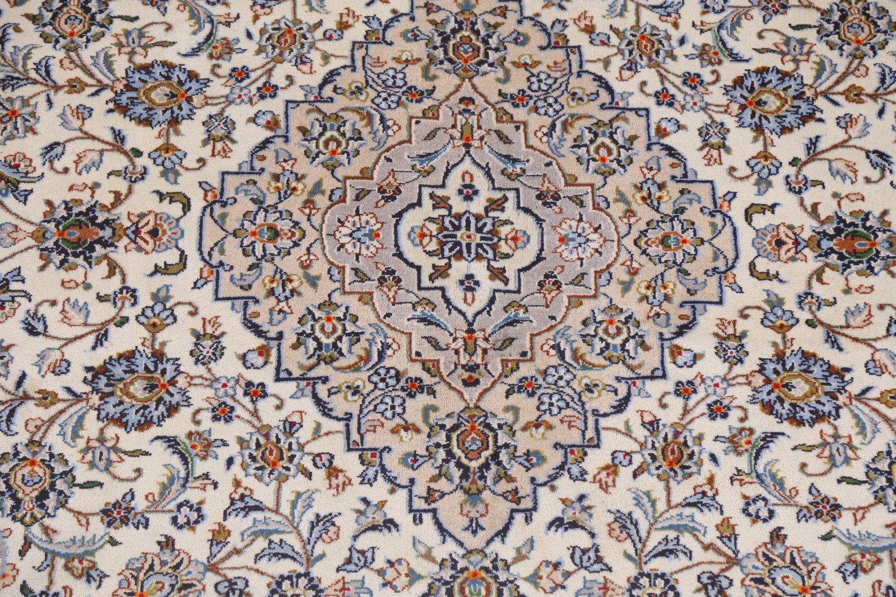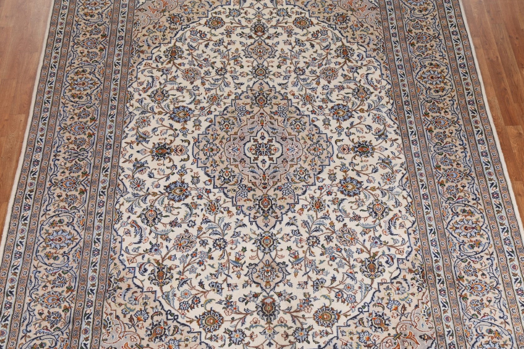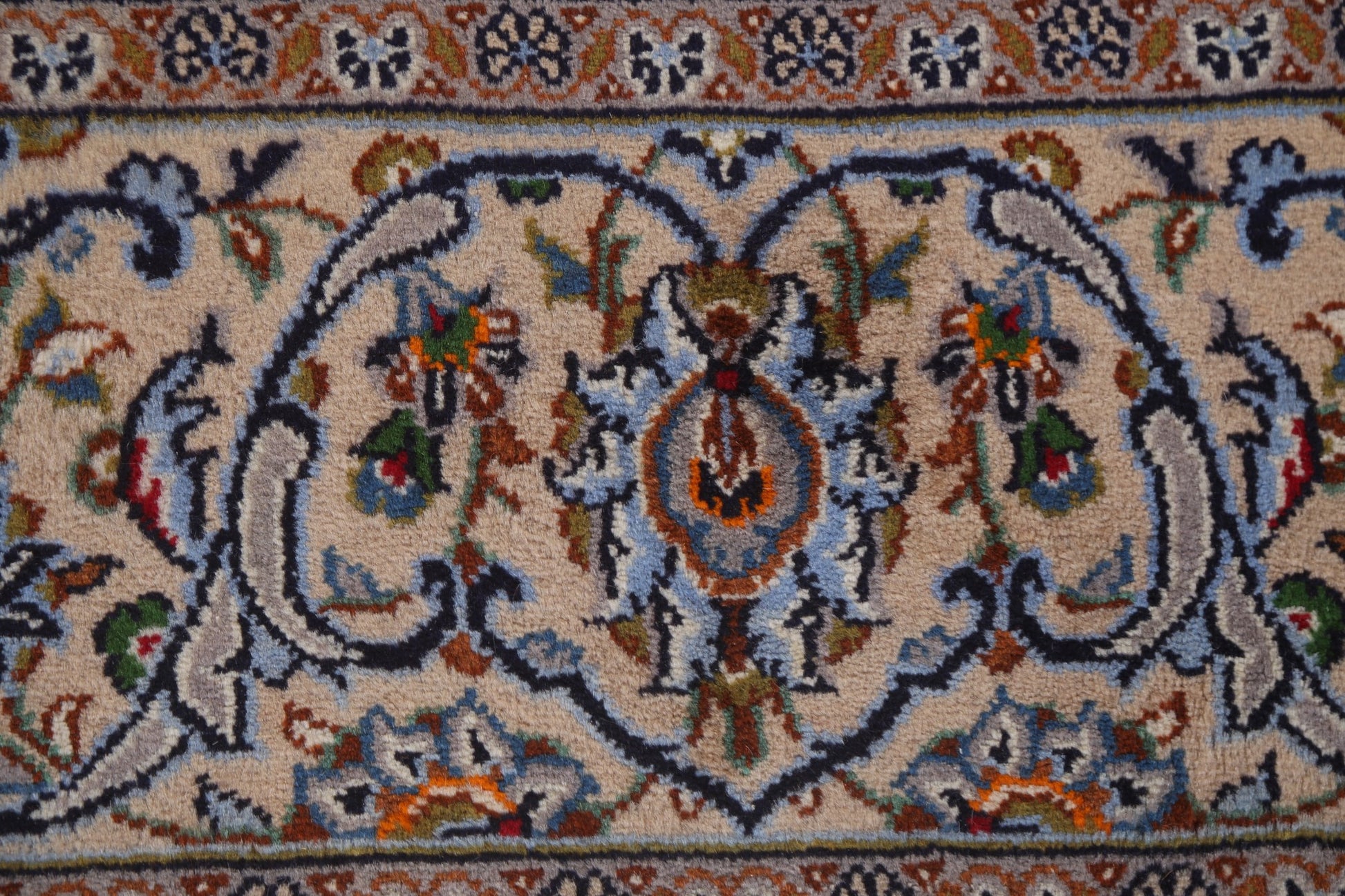 A Beautiful Genuine Persia ( Persia ) Kashan rug is Hand Knotted by skillful weavers in Persia ( Persia ) with 100% Wool Material. This rug is in Very Good condition. dimensions are 11' 2'' X 8' 3'' in foot and 340 X 251 in centimeter. the primary color is Beige & Ivories.