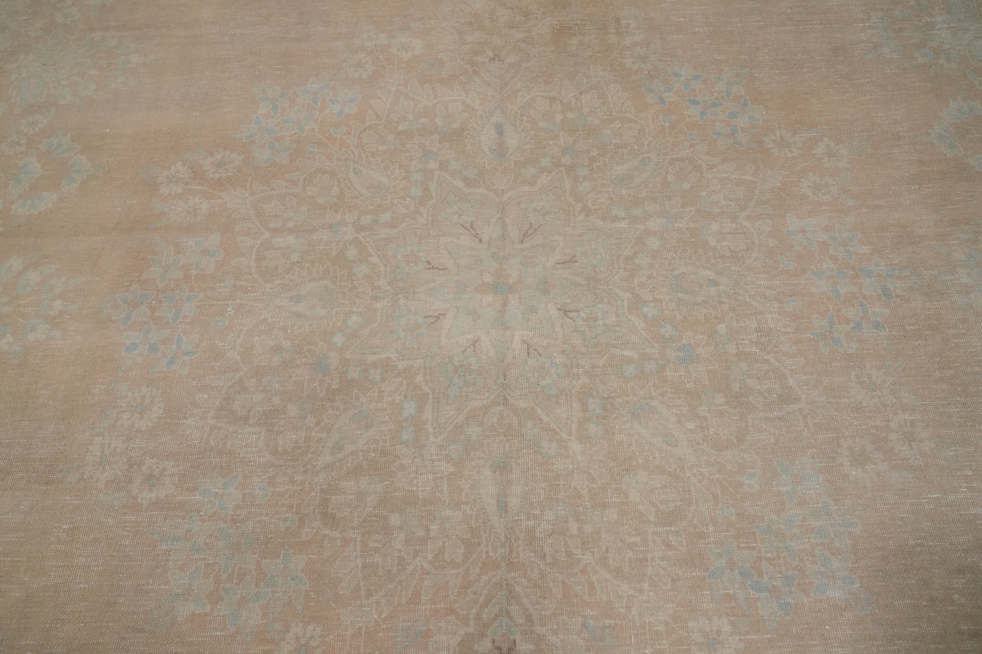 A Beautiful Genuine Persia ( Persia ) Kerman rug is Hand Knotted by skillful weavers in Persia ( Persia ) with 100% Wool Material. This rug is in Very Good (Evenly Low Pile) condition. dimensions are 12' 7'' X 9' 8'' in foot and 384 X 295 in centimeter. the primary color is Peach.