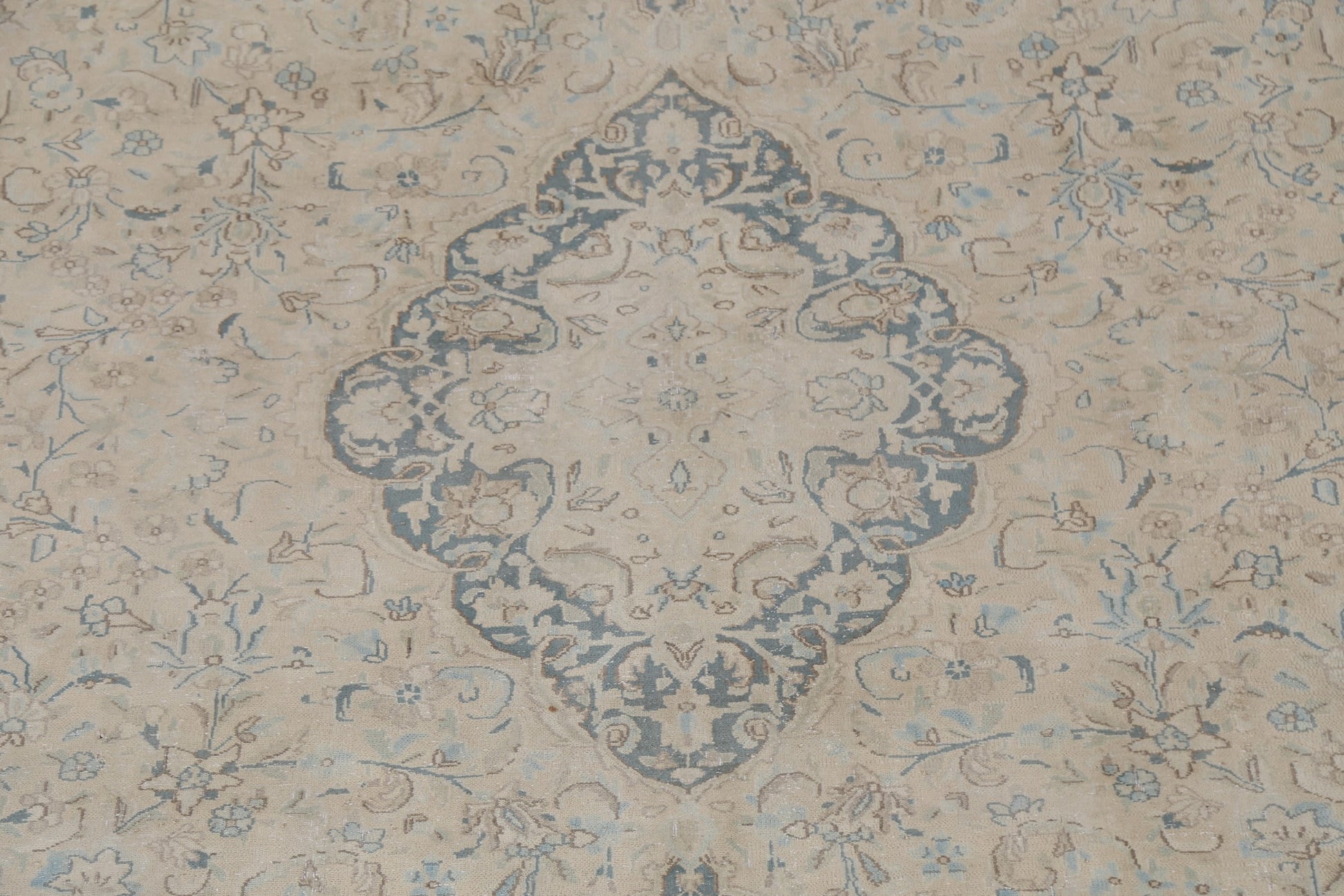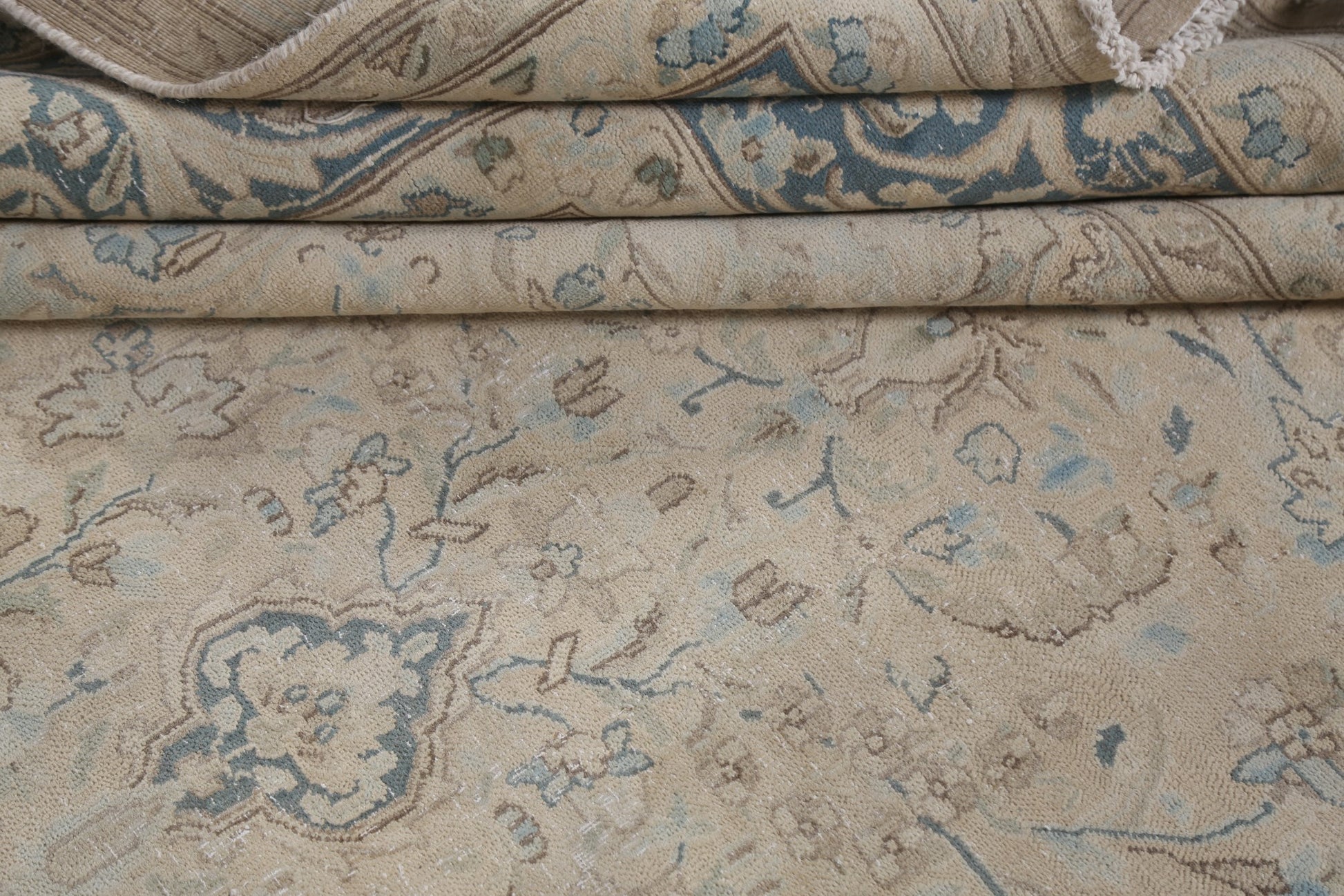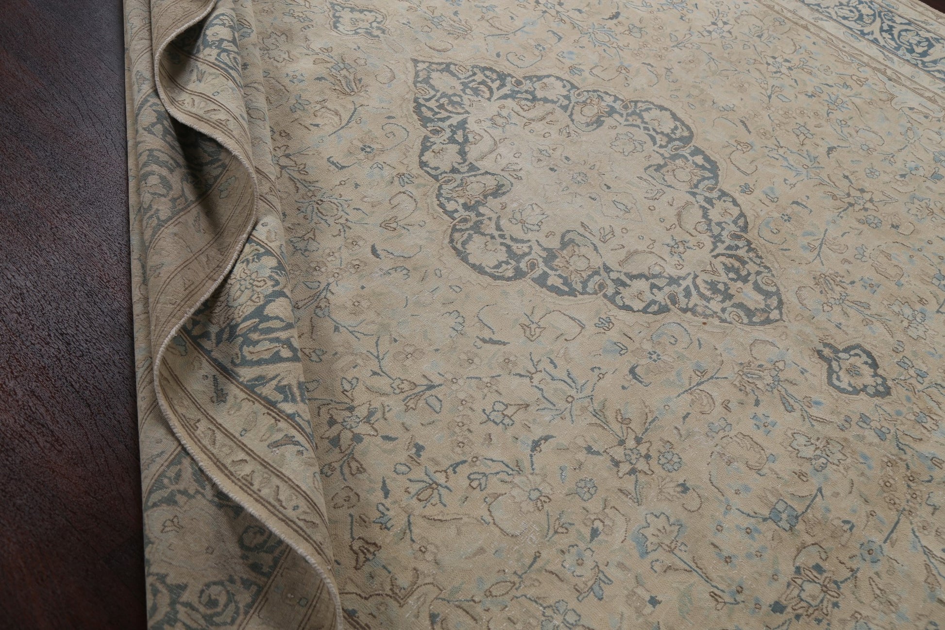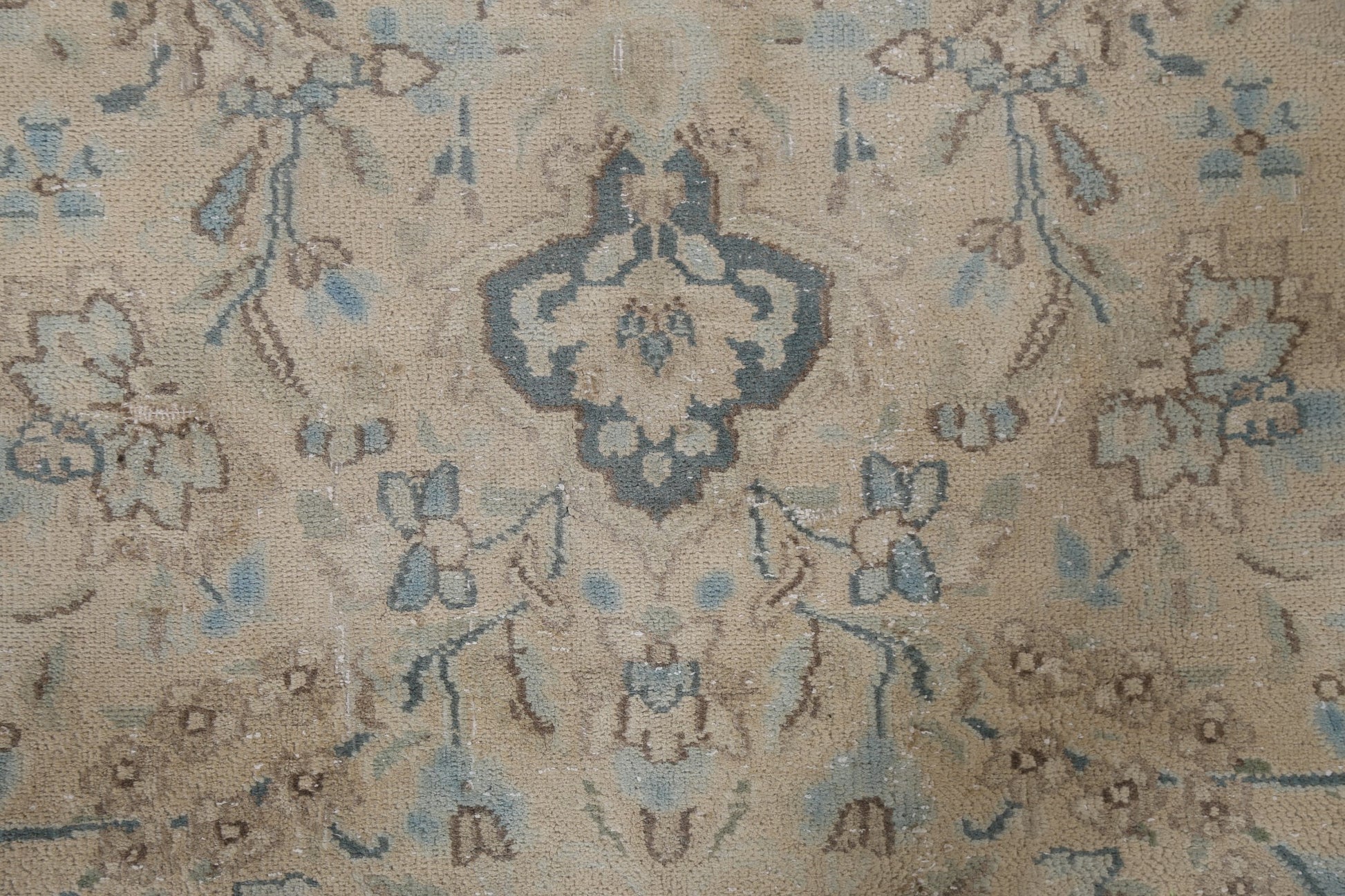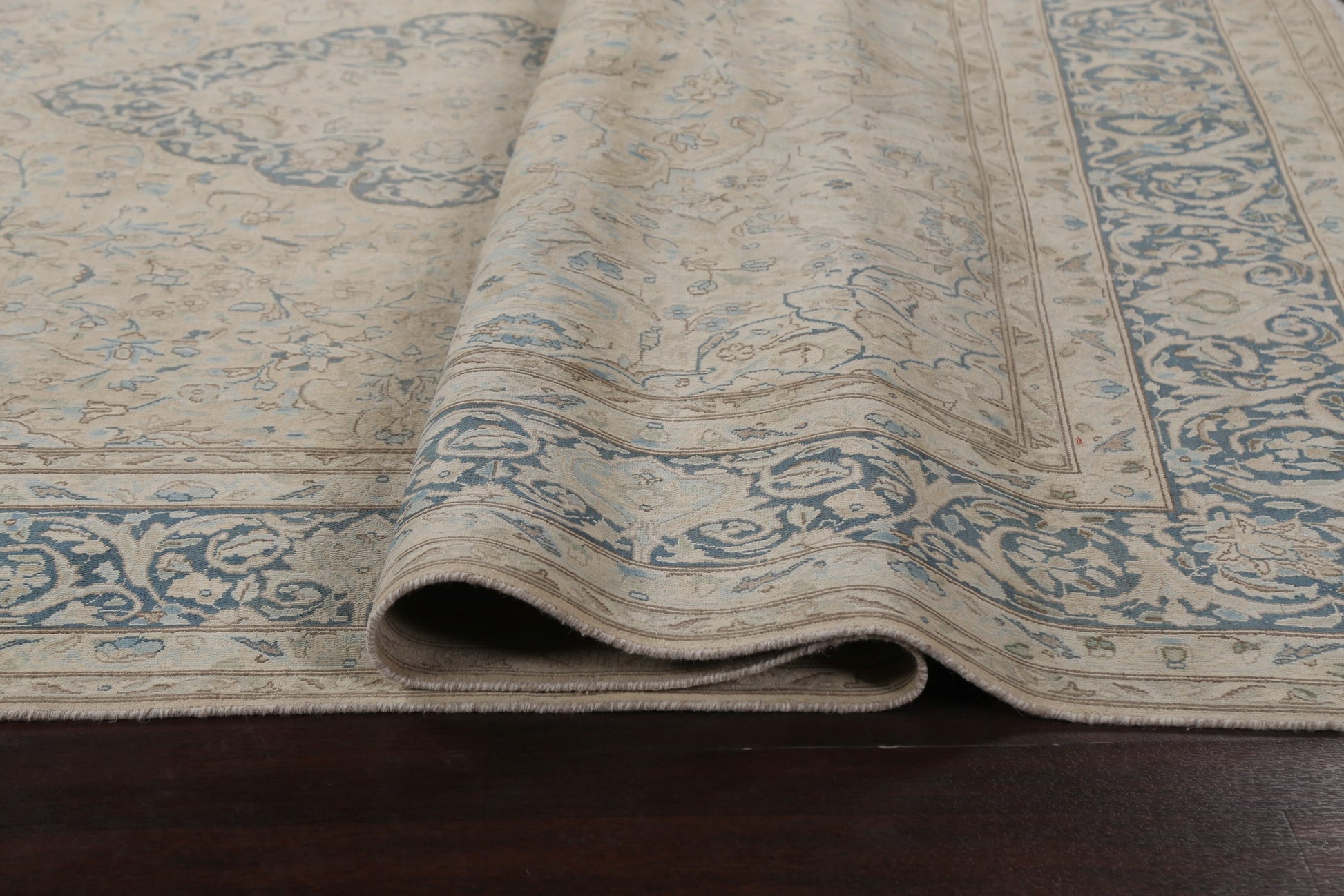 A Beautiful Genuine Persia ( Persia ) Kerman rug is Hand Knotted by skillful weavers in Persia ( Persia ) with 100% Wool Material. This rug is in Very Good (Evenly Low Pile) condition. dimensions are 12' 9'' X 9' 7'' in foot and 389 X 292 in centimeter. the primary color is Beige & Ivories.