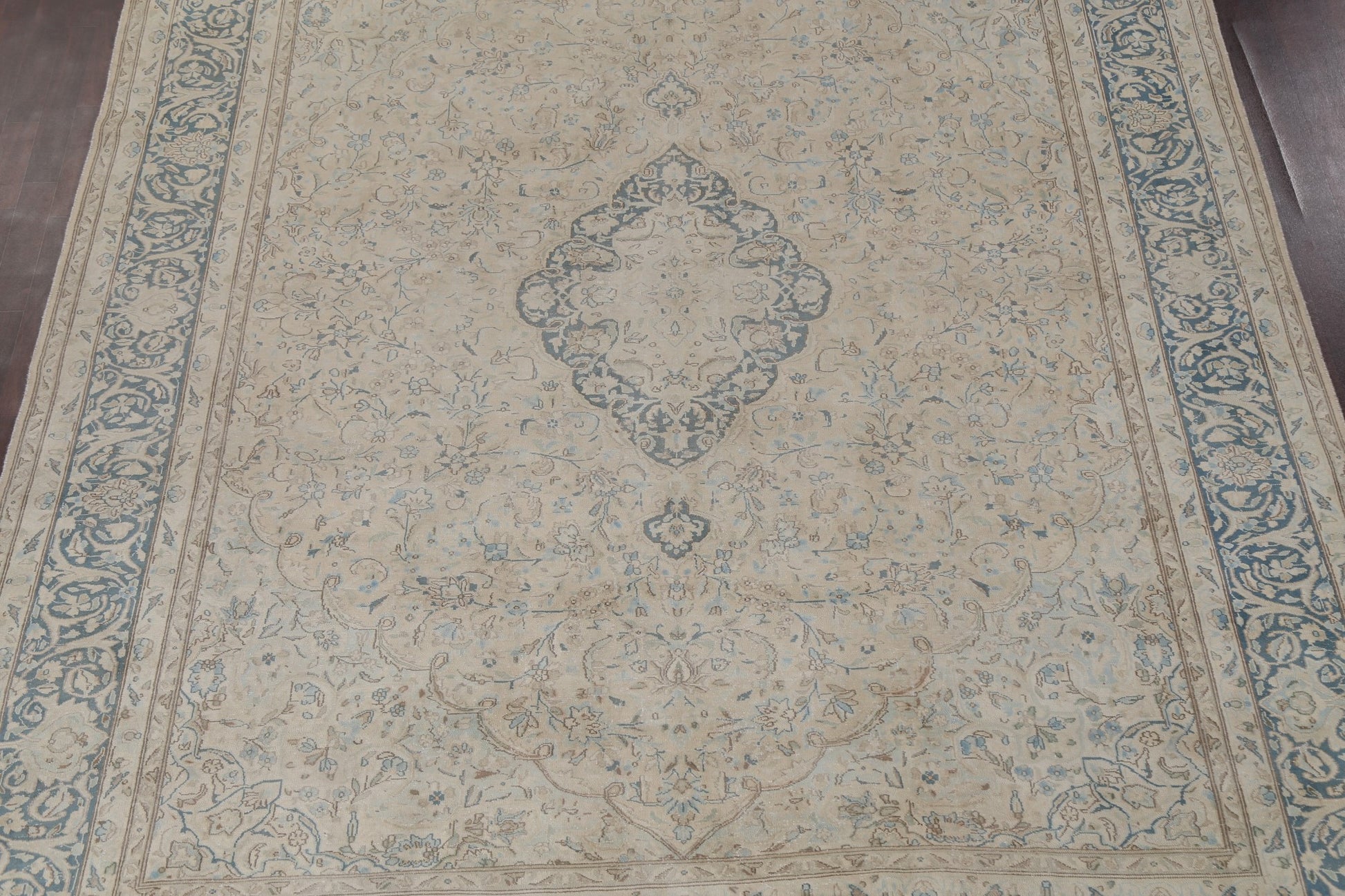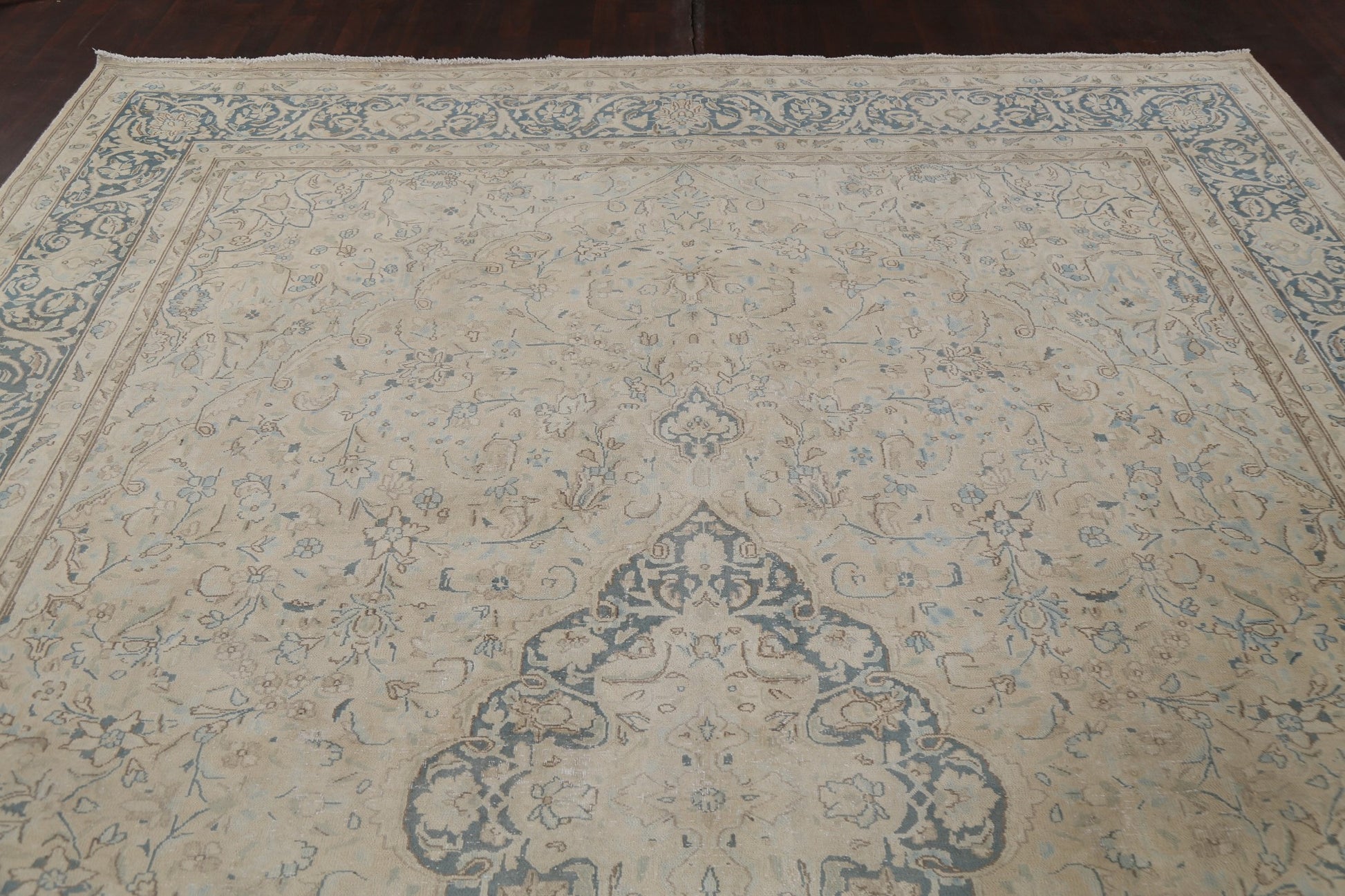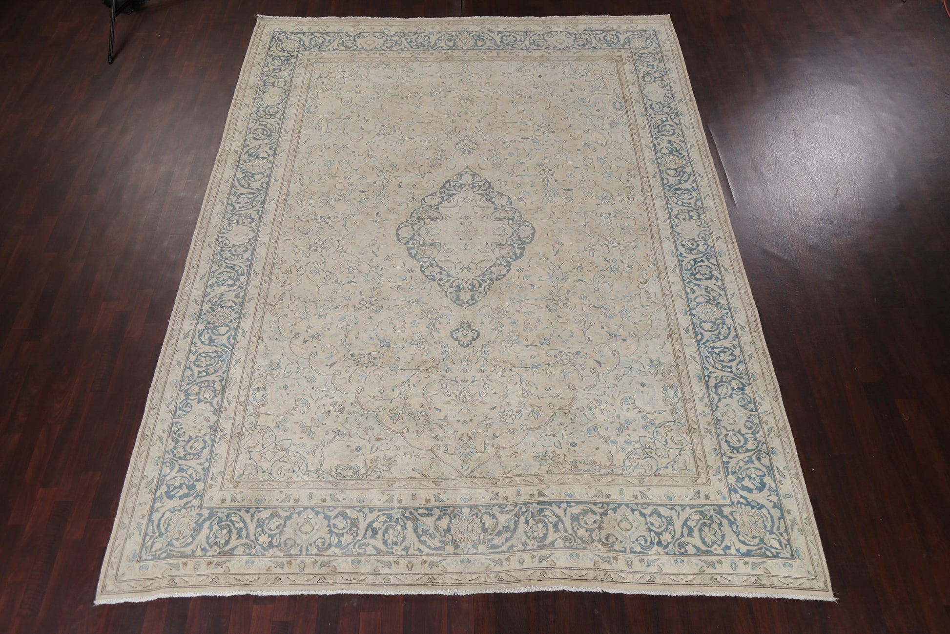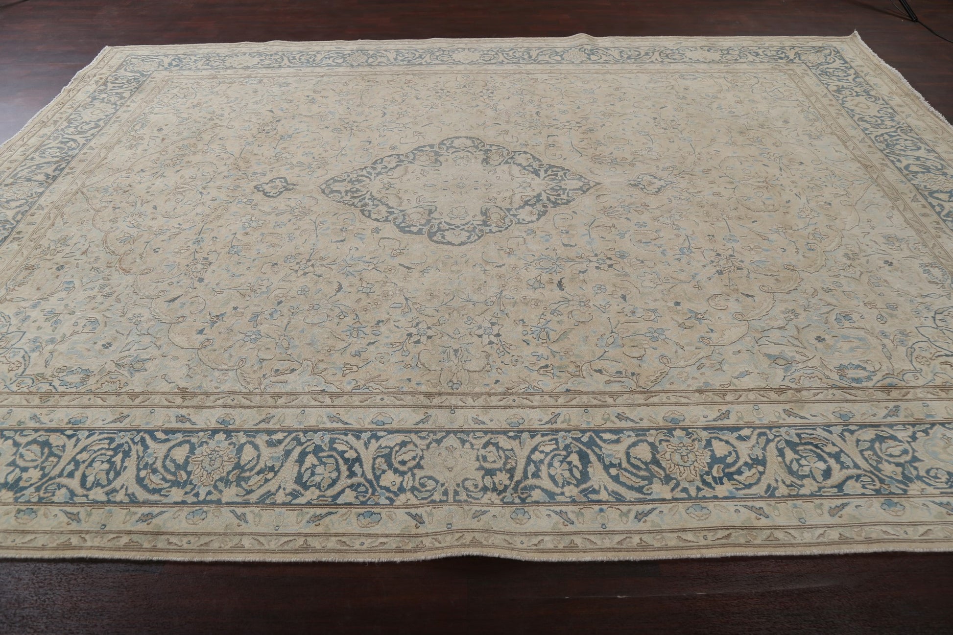 A Beautiful Genuine Persia ( Persia ) Kerman rug is Hand Knotted by skillful weavers in Persia ( Persia ) with 100% Wool Material. This rug is in Very Good (Evenly Low Pile) condition. dimensions are 12' 9'' X 9' 7'' in foot and 389 X 292 in centimeter. the primary color is Beige & Ivories.