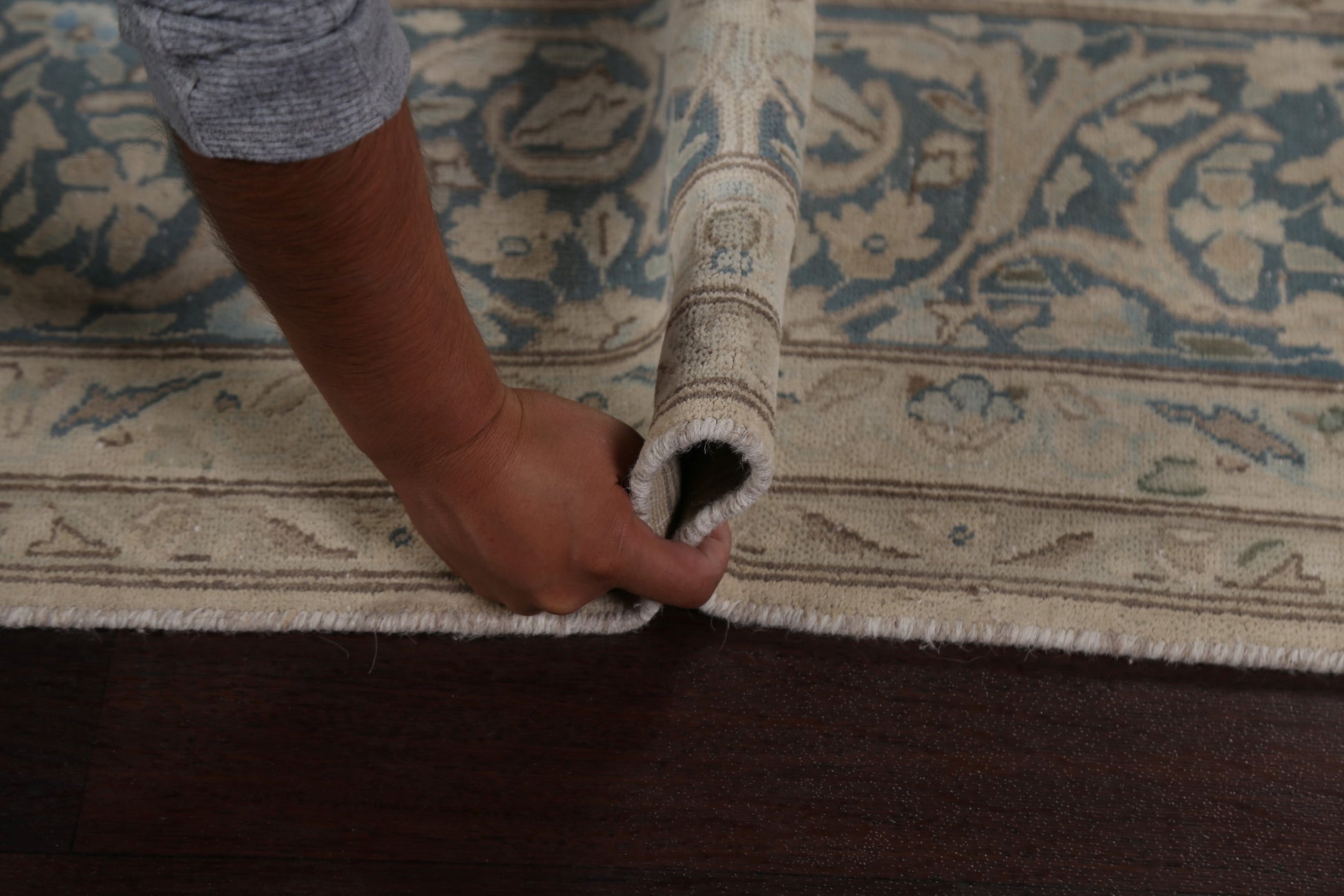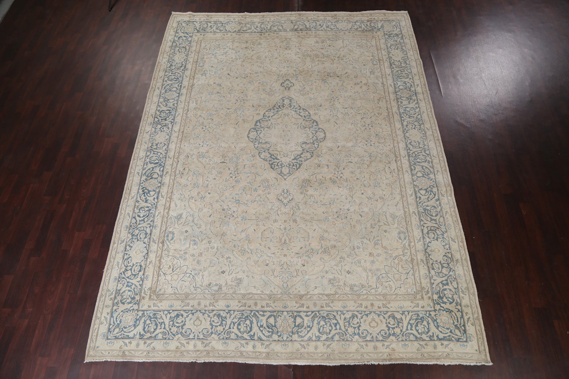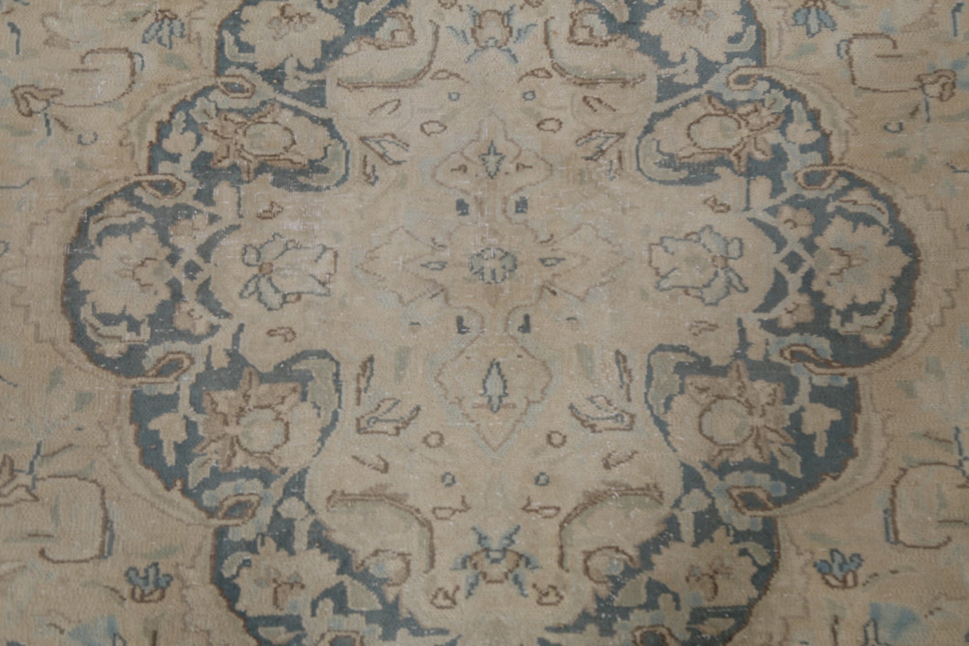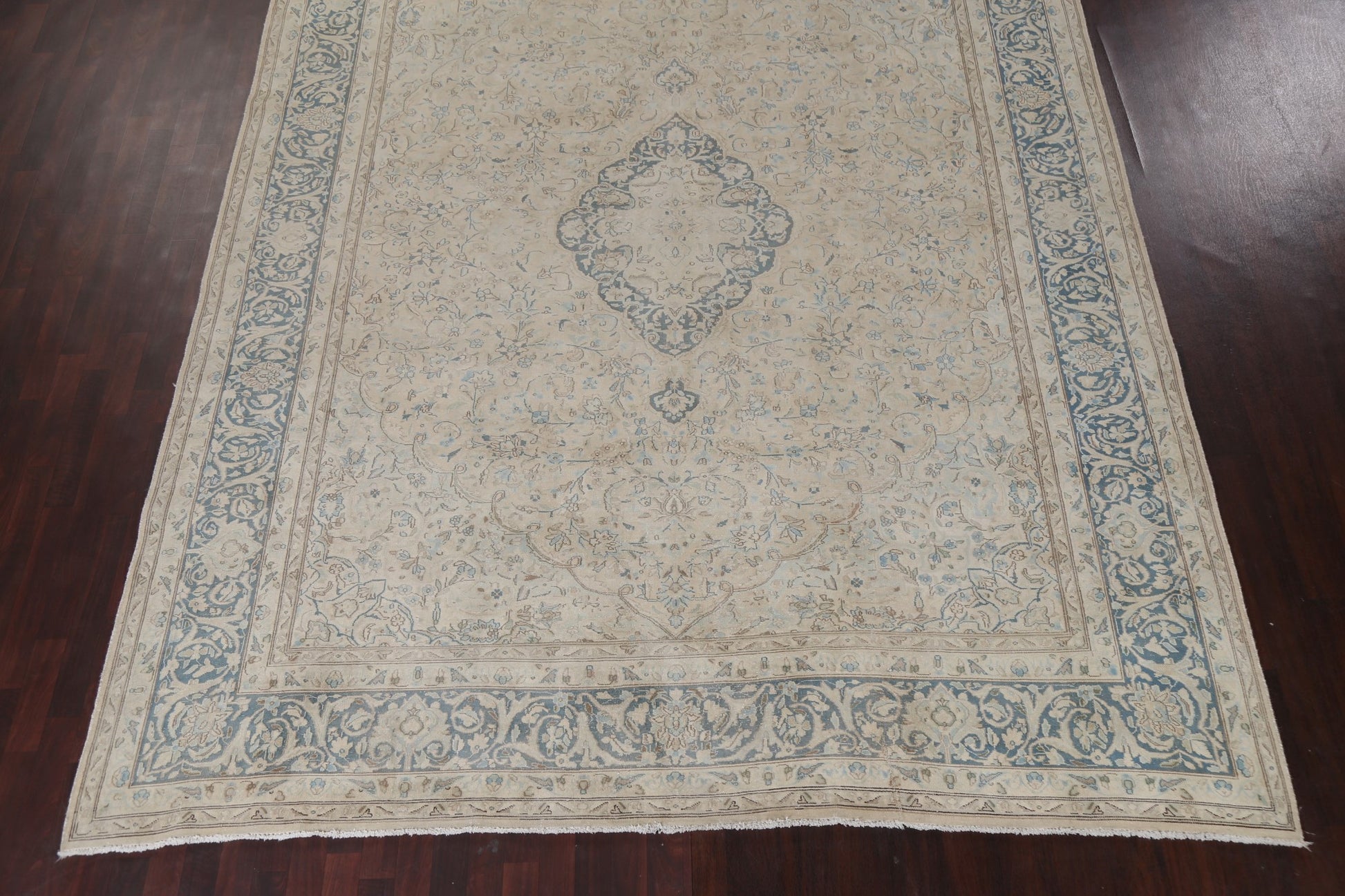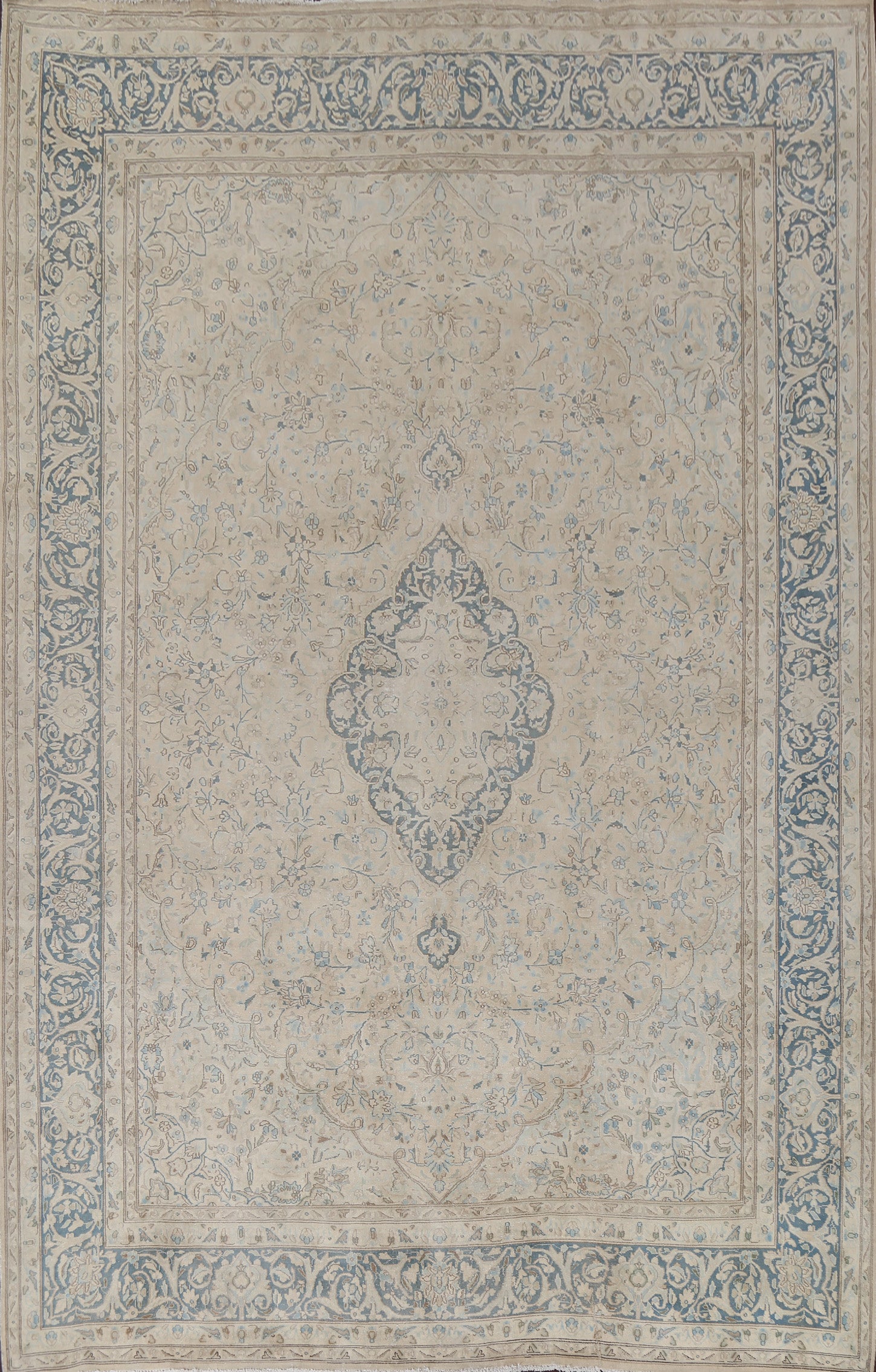 A Beautiful Genuine Persia ( Persia ) Kerman rug is Hand Knotted by skillful weavers in Persia ( Persia ) with 100% Wool Material. This rug is in Very Good (Evenly Low Pile) condition. dimensions are 12' 9'' X 9' 7'' in foot and 389 X 292 in centimeter. the primary color is Beige & Ivories.