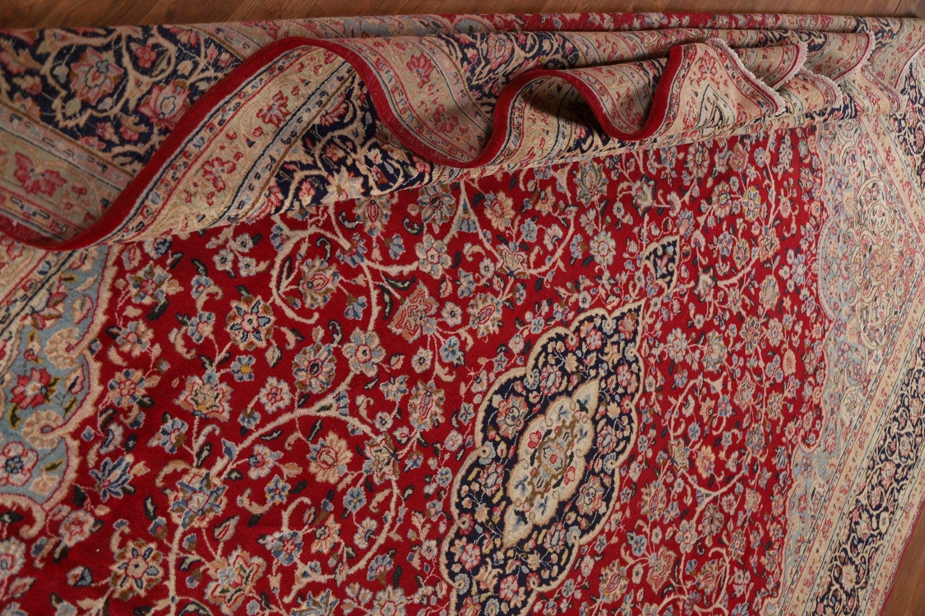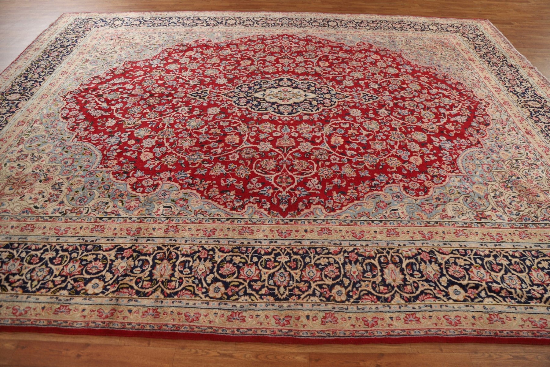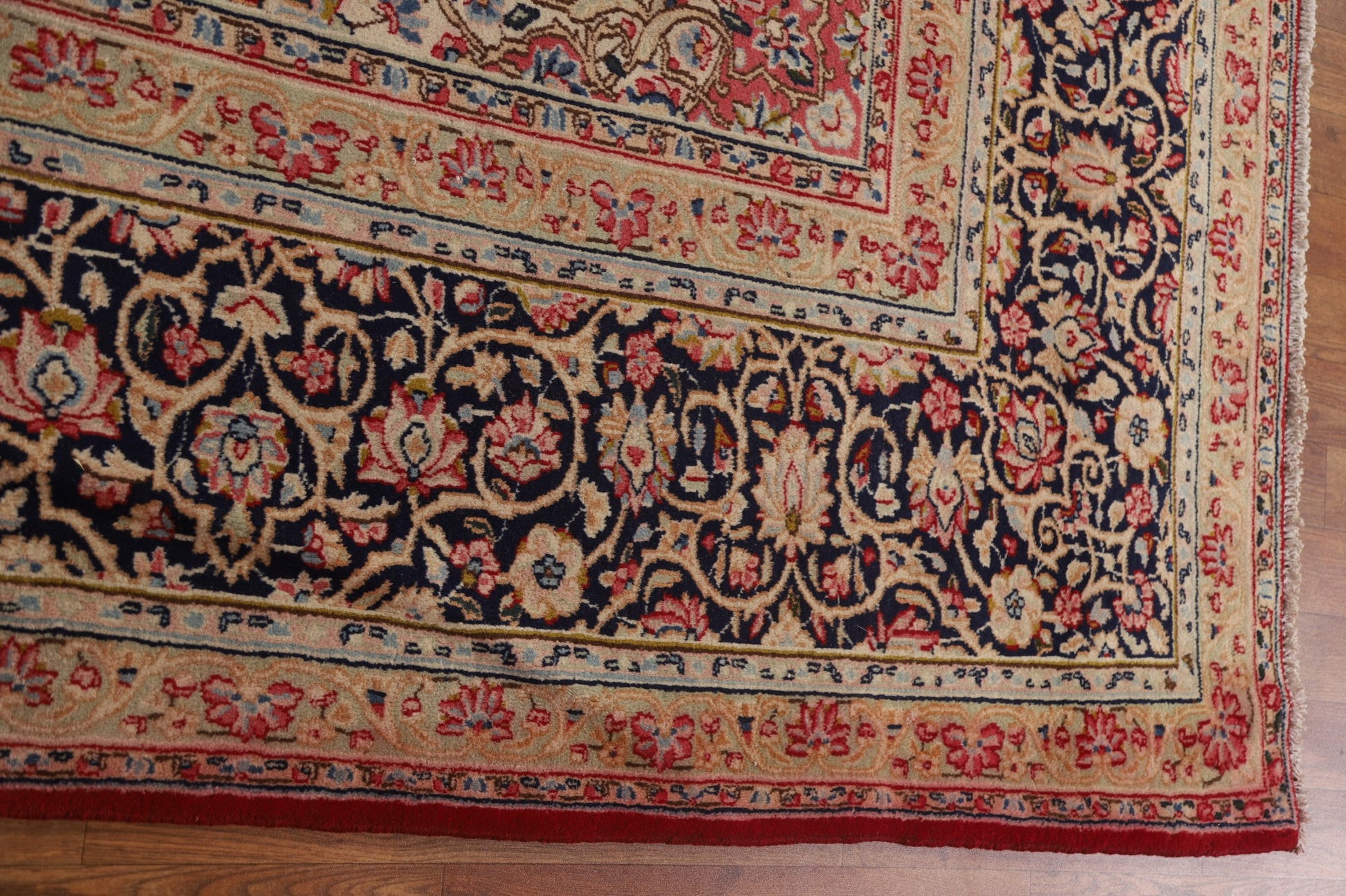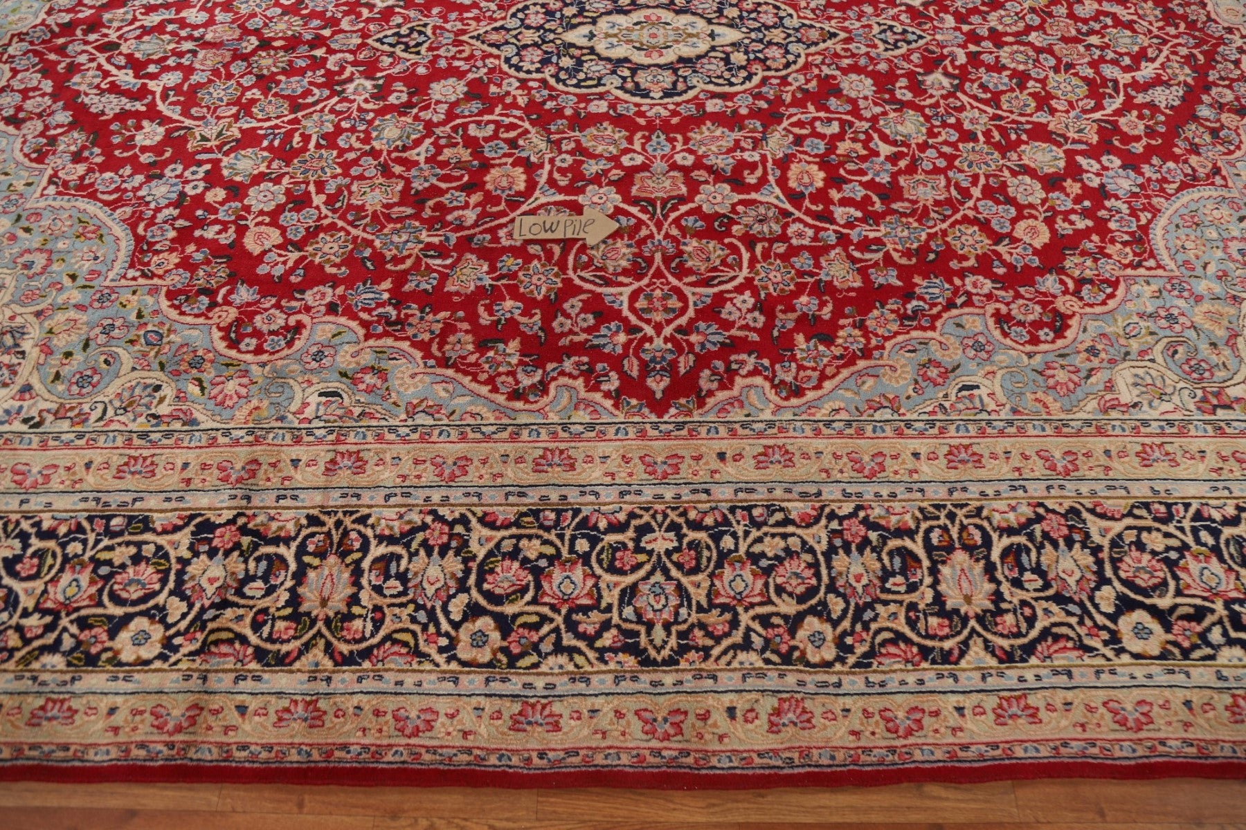 A Beautiful Genuine Persia ( Persia ) Kerman rug is Hand Knotted by skillful weavers in Persia ( Persia ) with 100% Wool Material. This rug is in Very Good ( Low Pile ) condition. dimensions are 13' 0'' X 9' 11'' in foot and 396 X 302 in centimeter. the primary color is Red.