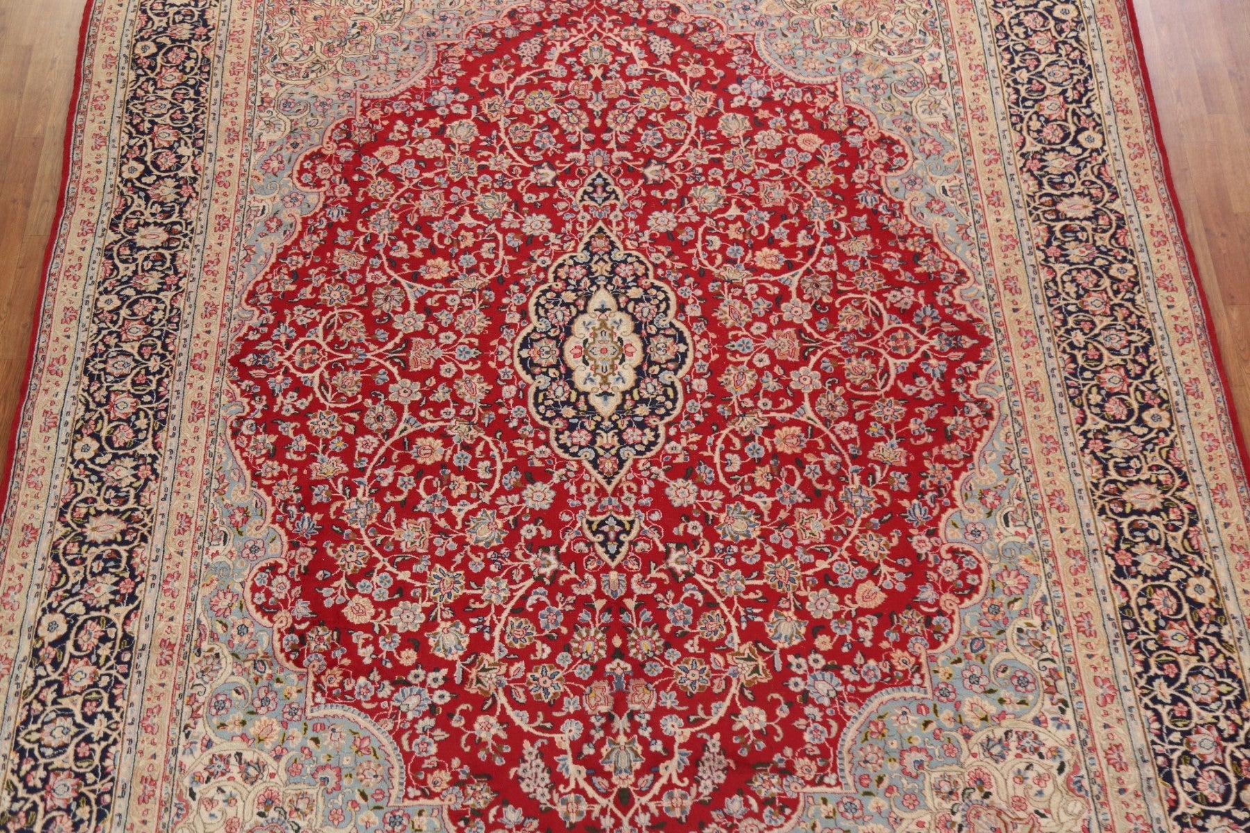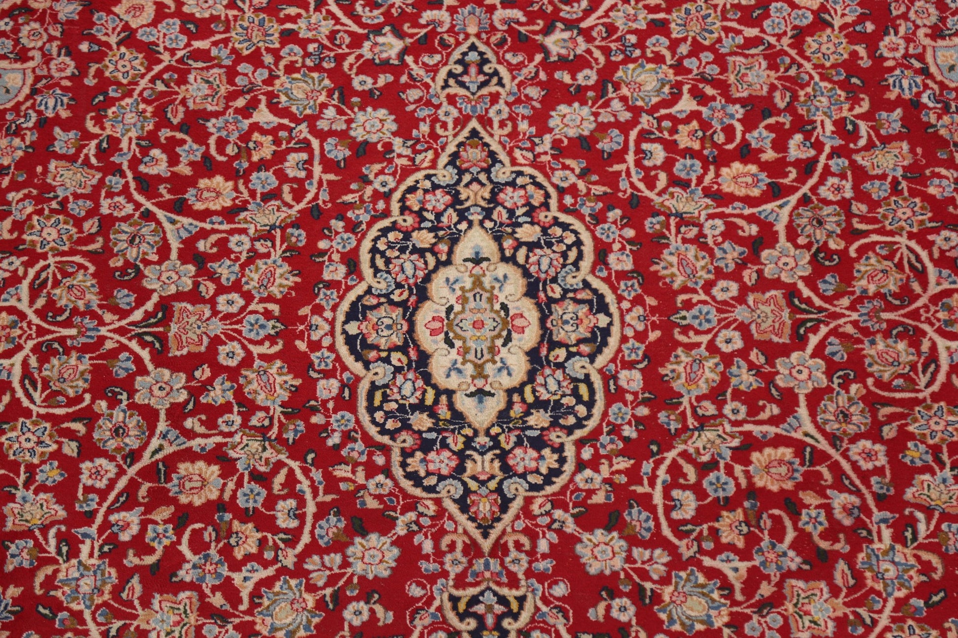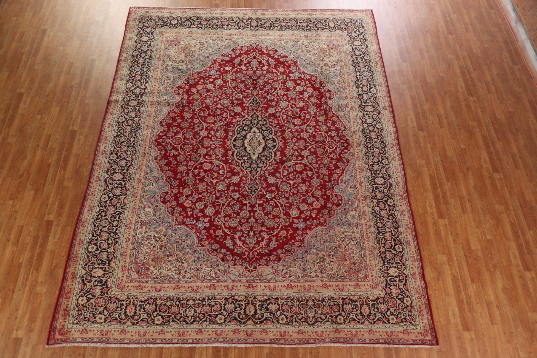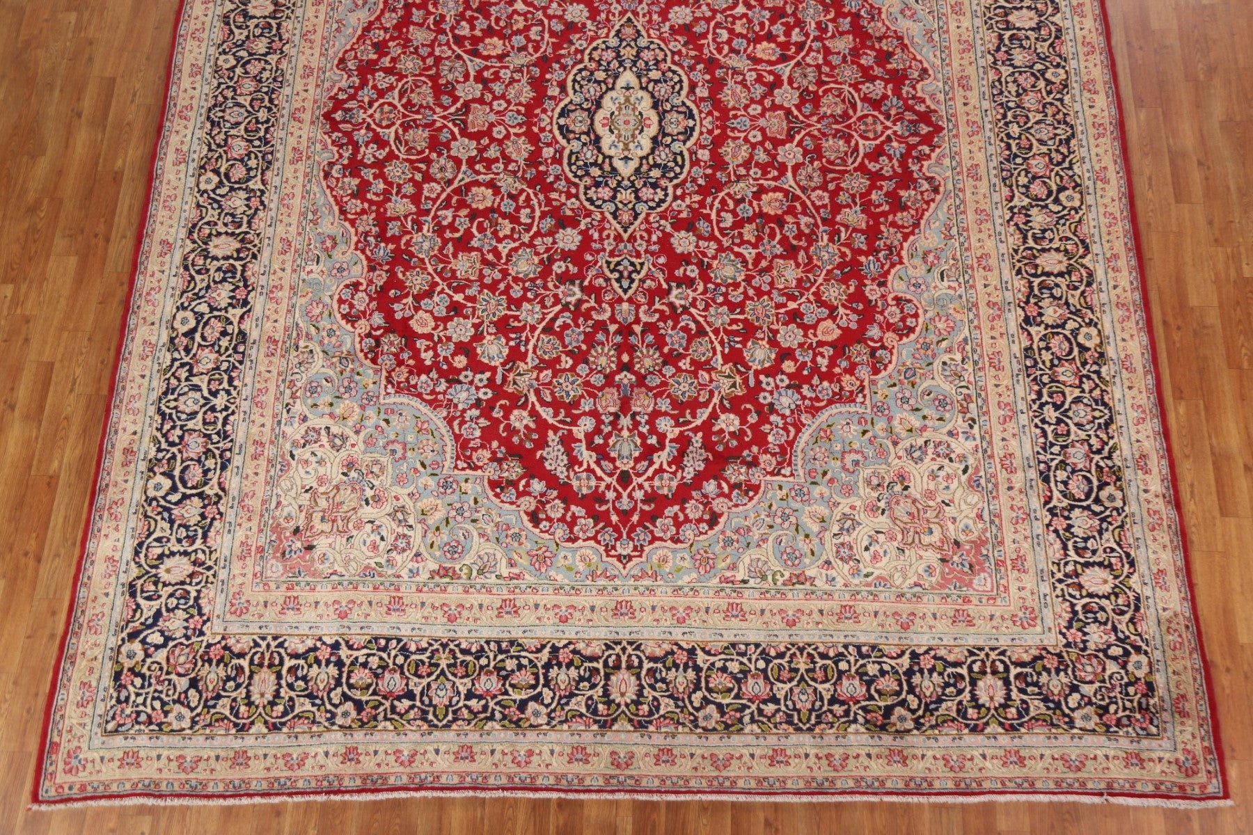 A Beautiful Genuine Persia ( Persia ) Kerman rug is Hand Knotted by skillful weavers in Persia ( Persia ) with 100% Wool Material. This rug is in Very Good ( Low Pile ) condition. dimensions are 13' 0'' X 9' 11'' in foot and 396 X 302 in centimeter. the primary color is Red.