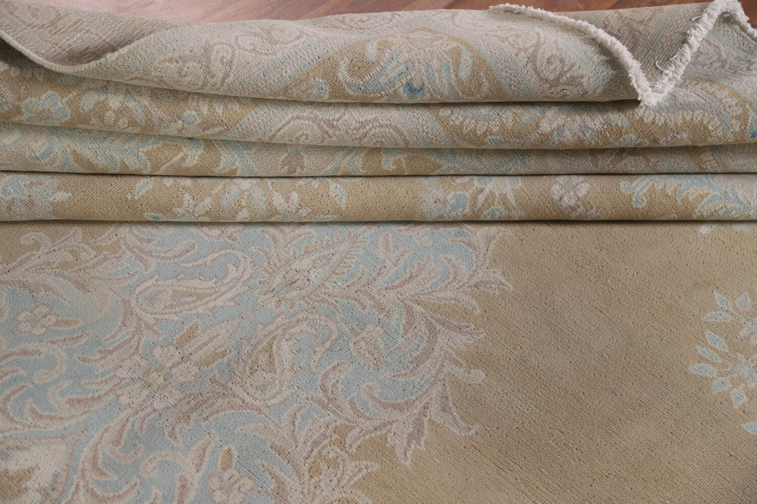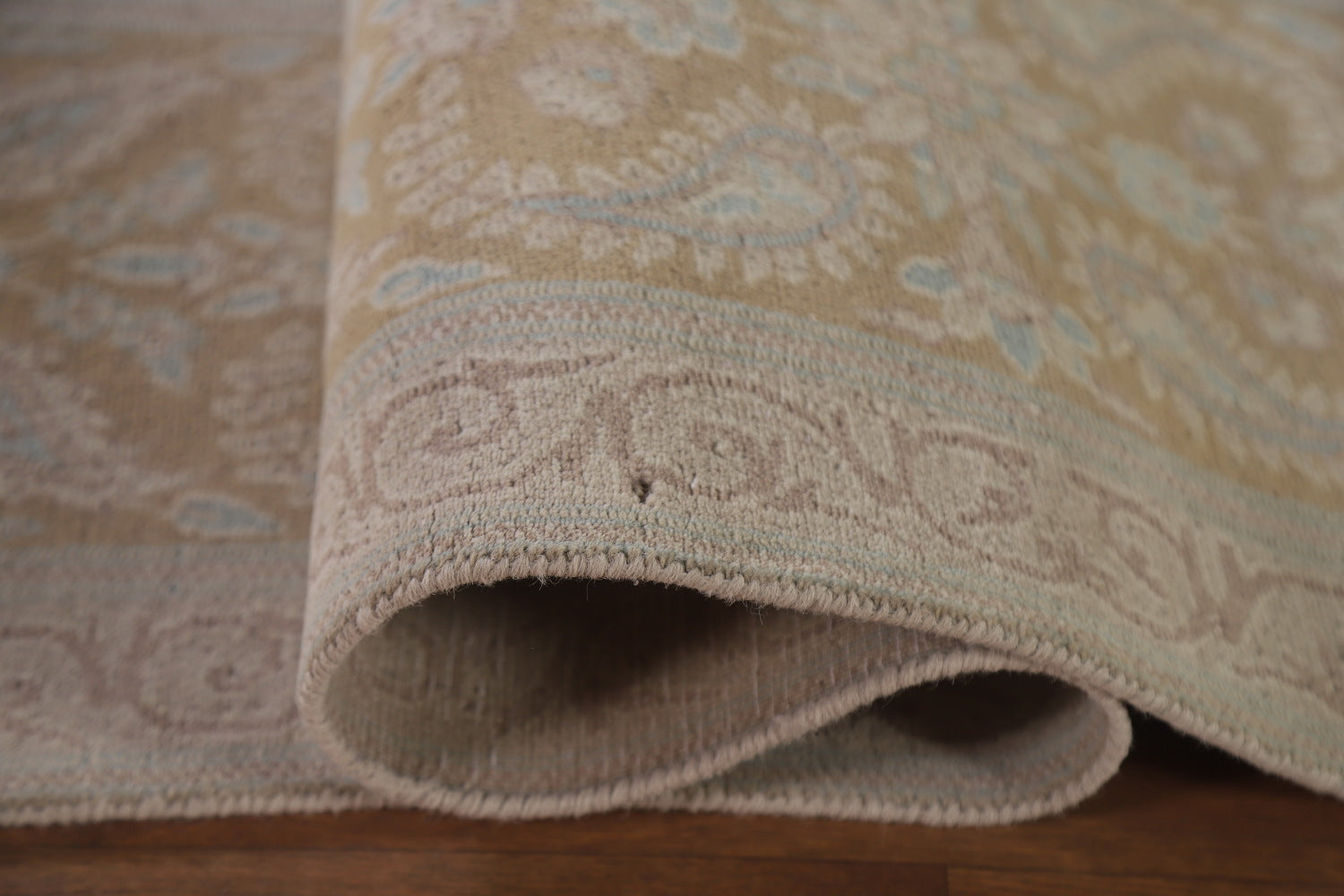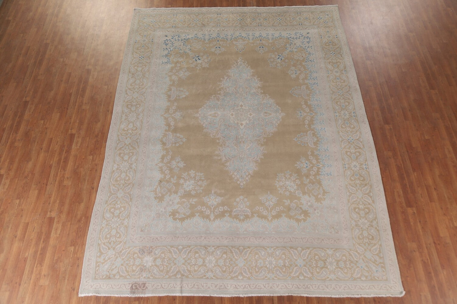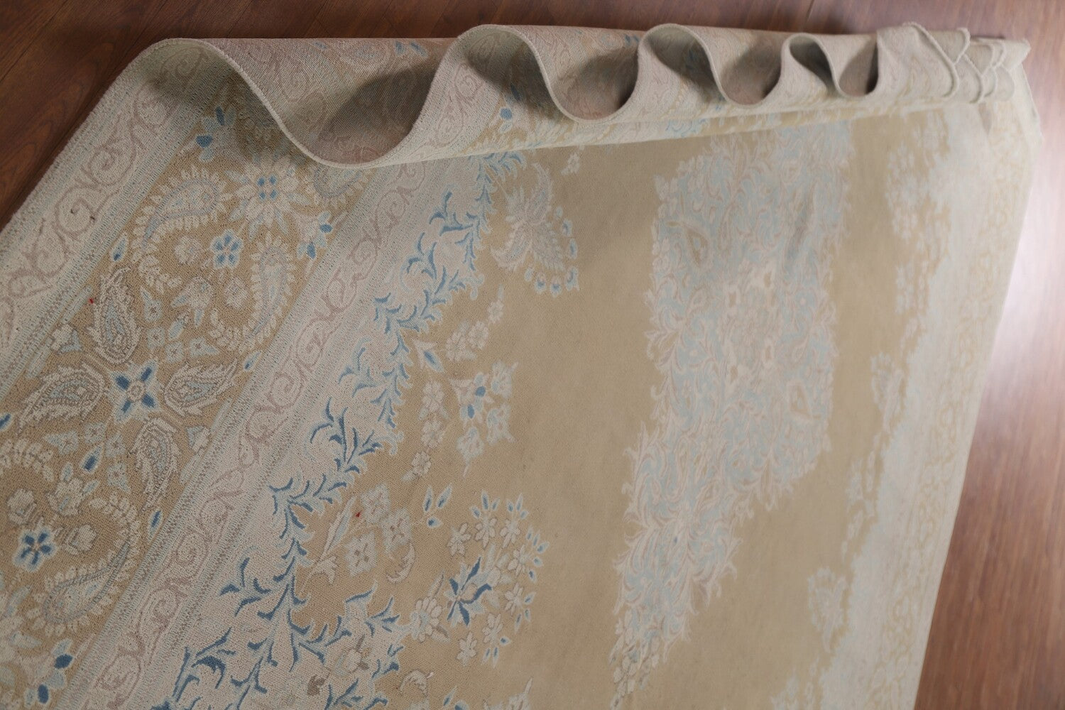 A Beautiful Genuine Persia ( Persia ) Kerman rug is Hand Knotted by skillful weavers in Persia ( Persia ) with 100% Wool Material. This rug is in Very Good (Evenly Low Pile) condition. dimensions are 12' 8'' X 9' 7'' in foot and 386 X 292 in centimeter. the primary color is Yellow & Gold.